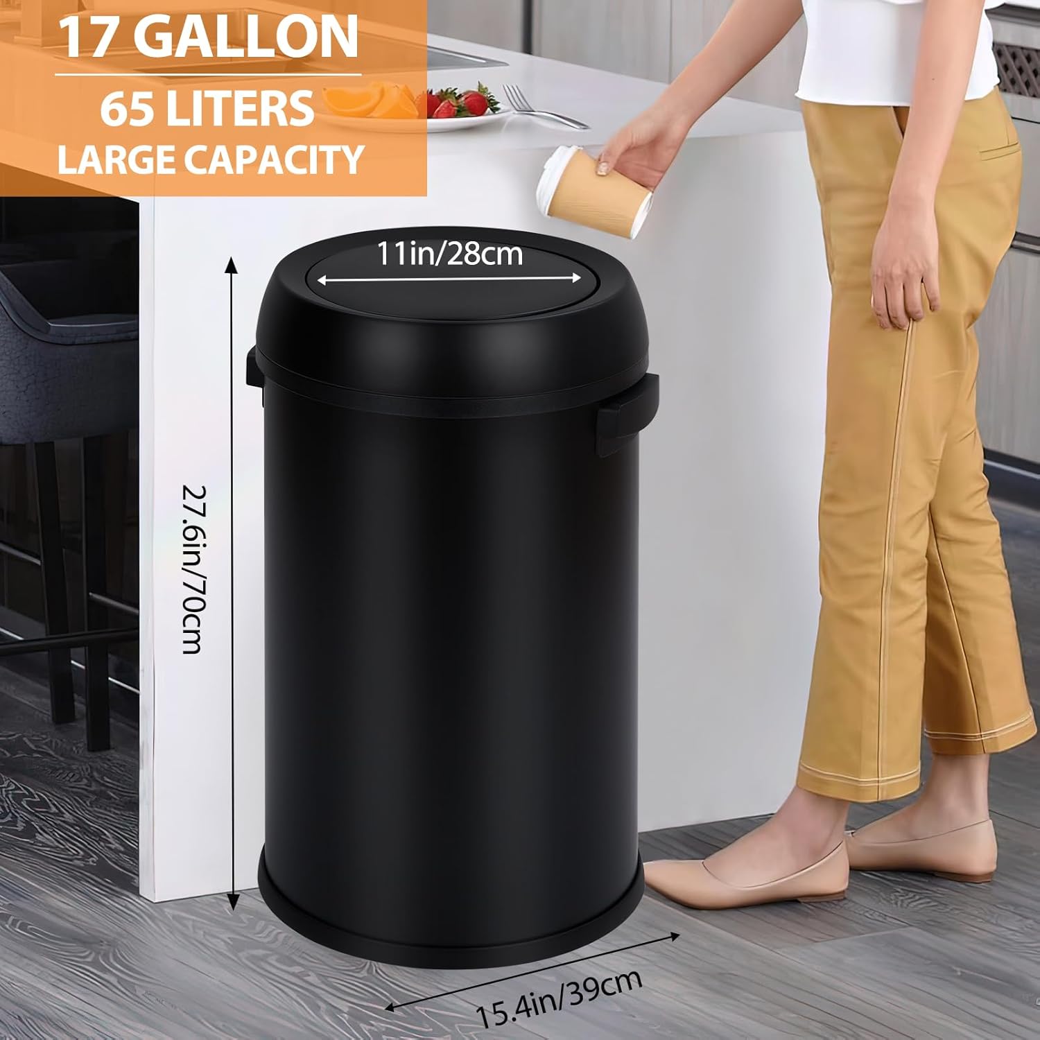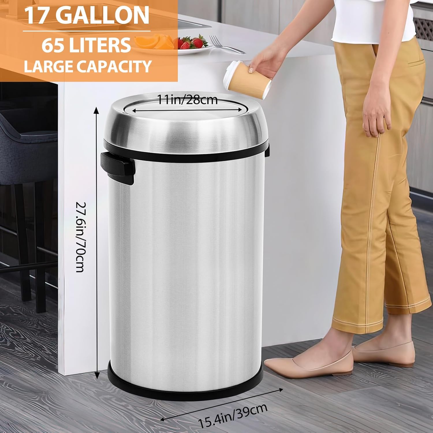 GarveeHome 18.5 gal Stainless Steel Trash Can, 70 L Kitchen Garbage Can with Flipping Lid & Removable Inner Bucket, Large Rubbish Bin Waste Container for Office, Hotel, Silver