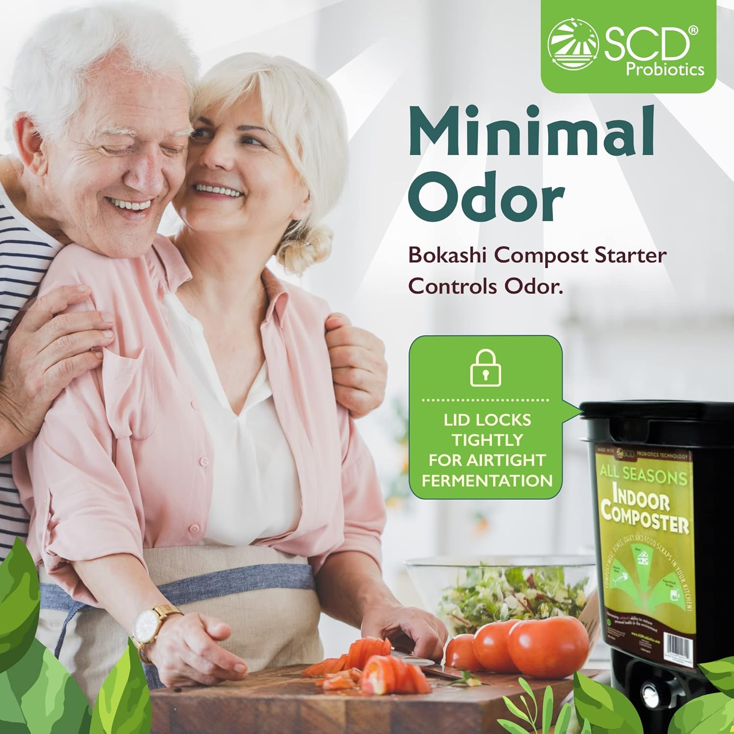 All Seasons Indoor Composter Starter Kit - Two Family-Sized Composting Bins for Kitchen Countertop and Bokashi Bran Starter 5 lb (2 gallons), Easily Compost Food After Every Meal, Odor Free