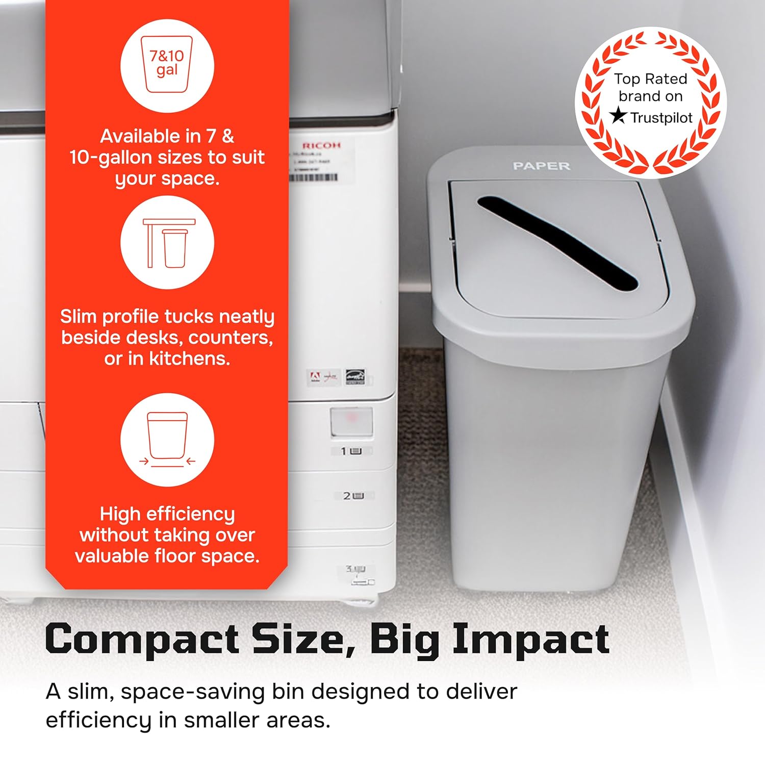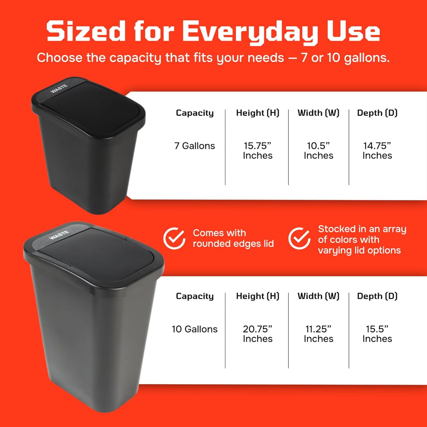 SPARTA Bronco Waste Container Trash Container, Round Trash Bin for Disposal, 10 Gallons, Orange, (Pack of 6)