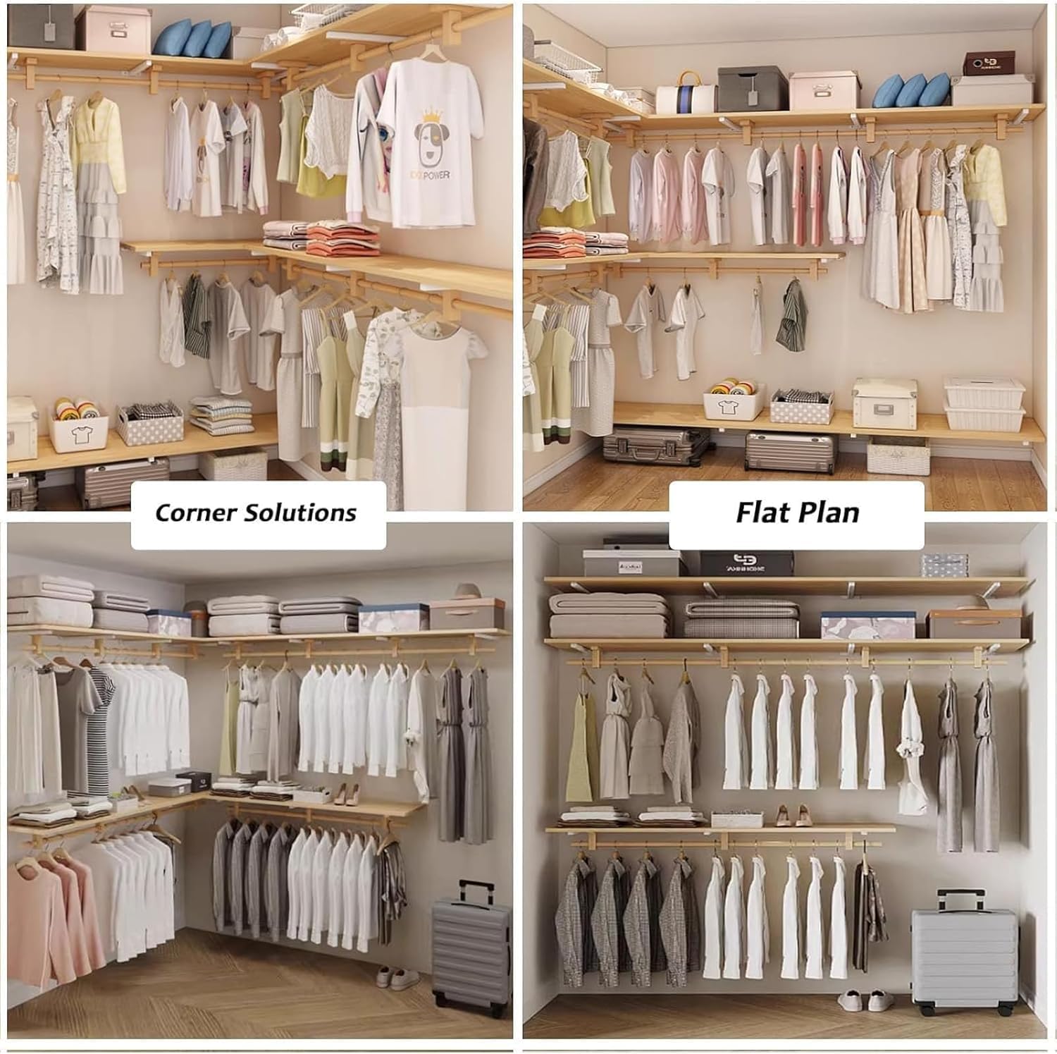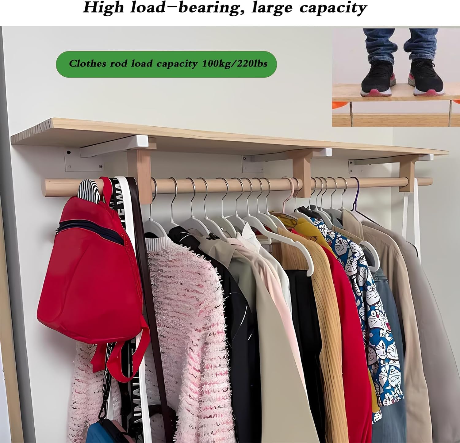 Mounted Closet Systems with Shelves, Closet Organizer System with Hanging Rods, Wall Mount Bedroom Wardrobe Walk-in Closet, Solid Wood Garment Rack (Wood color, 120cm/47.2in)