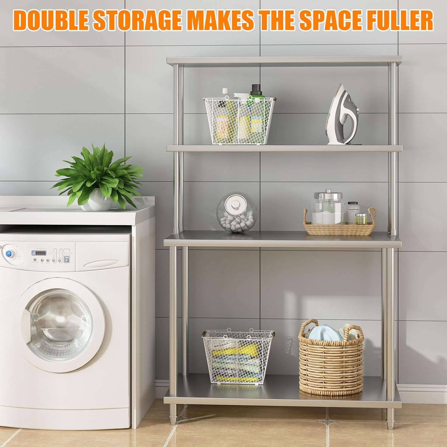 Garvee 12 in x48 in Stainless Steel Overshelf for Prep & Work Table, 360 LB Capacity Commercial 2 Tier Worktable Shelf, Adjustable Double Overshelf for Restaurant, Kitchen, Garage, Workshop