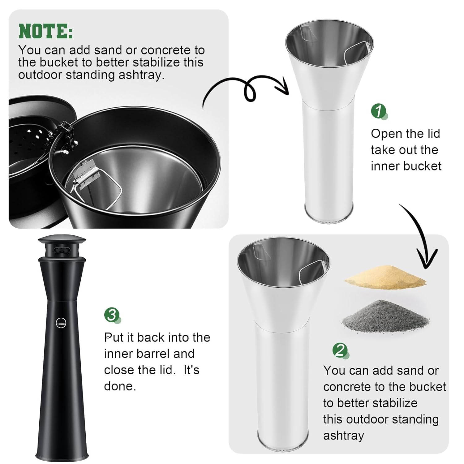 Steel Outdoor Trash Can Receptacle, Standing Trash Bin with Removable Inner Bucket Vertical Waste Collector Container for Outside Home Backyard Patio Office Hotel(Tower Type)