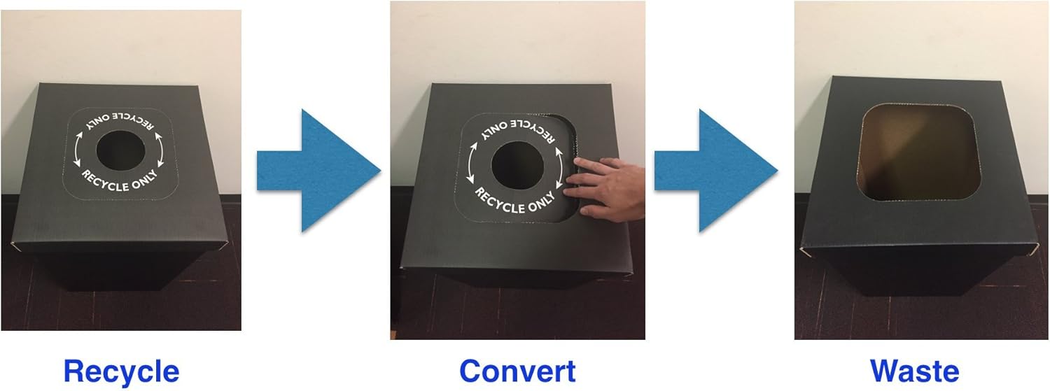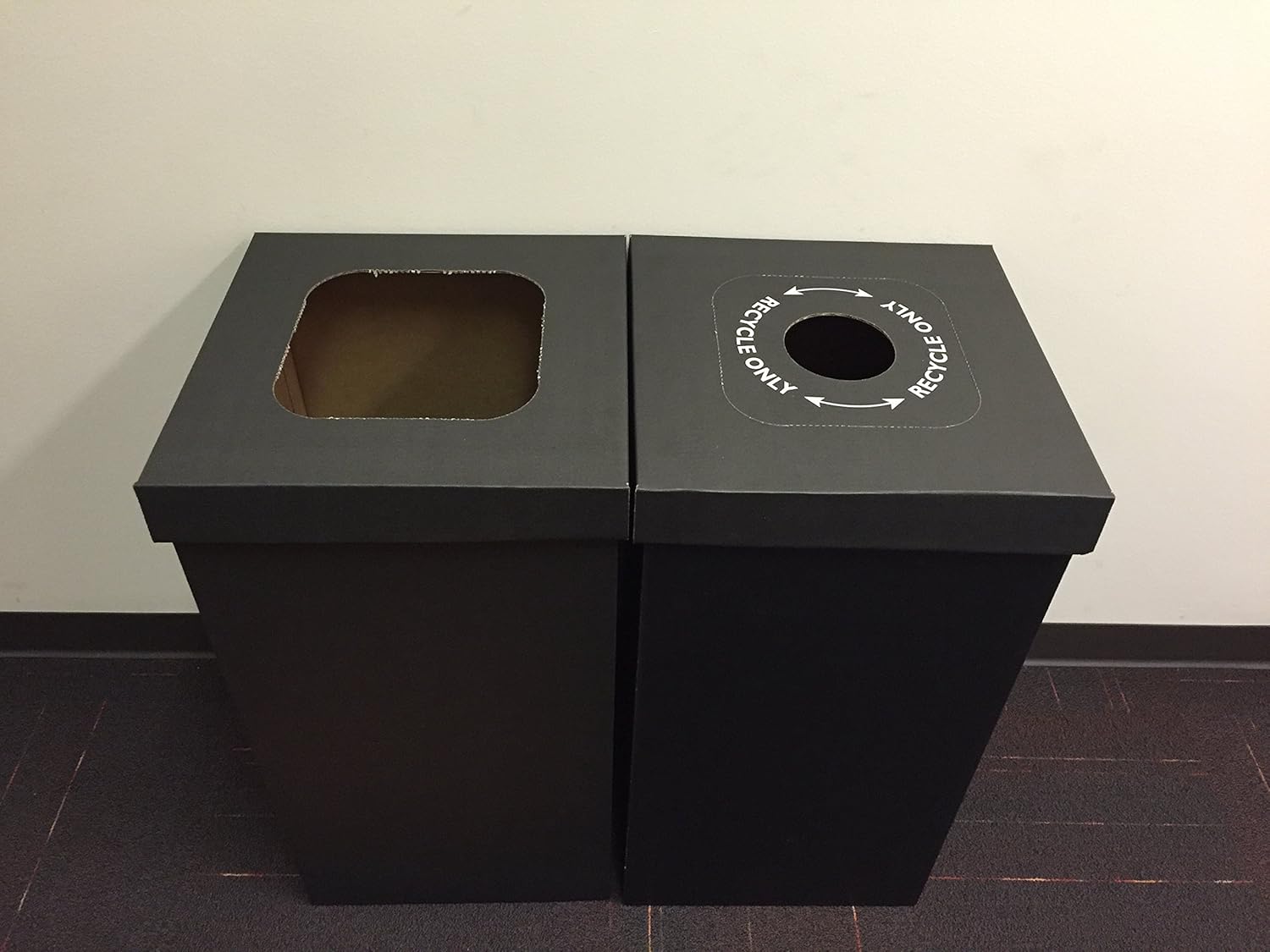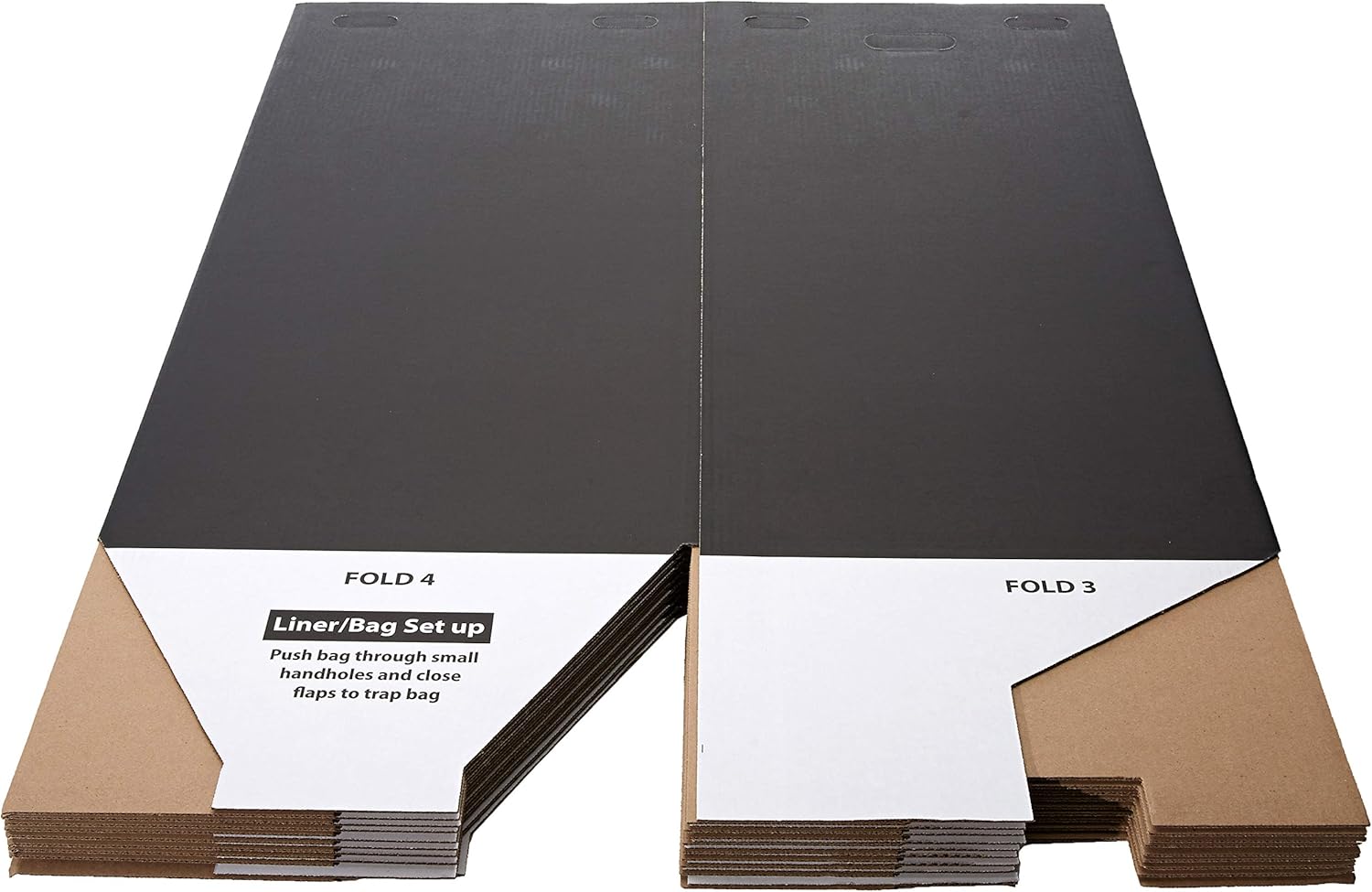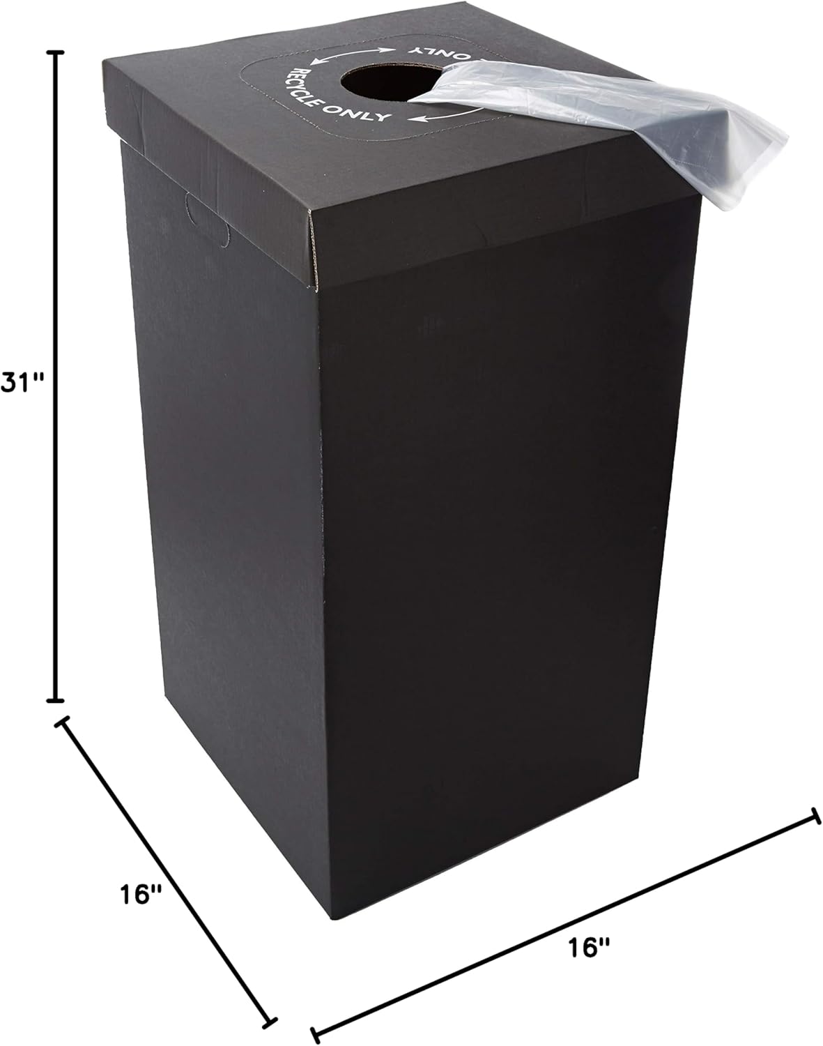 One Earth Disposable and Reusable Corrugated Cardboard Trash and Recycling Boxes: Bin + Lid + Trash Bag- Black (Qty. 10 Sets)