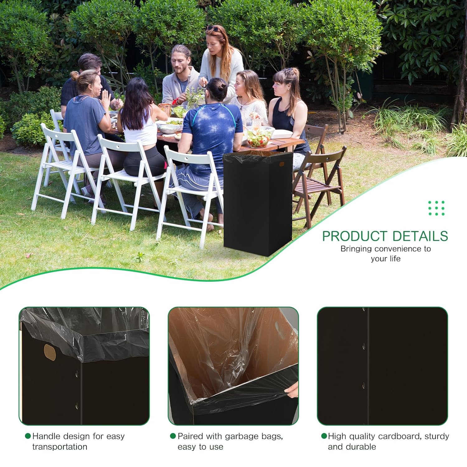 Nosiny 10 Pcs Disposable and Reusable Corrugated Cardboard Trash Cans for Events, Recycling Bins Bulk with Trash Bags,Cardboard Garbage Boxes for Parties (50 Gallon,Black)