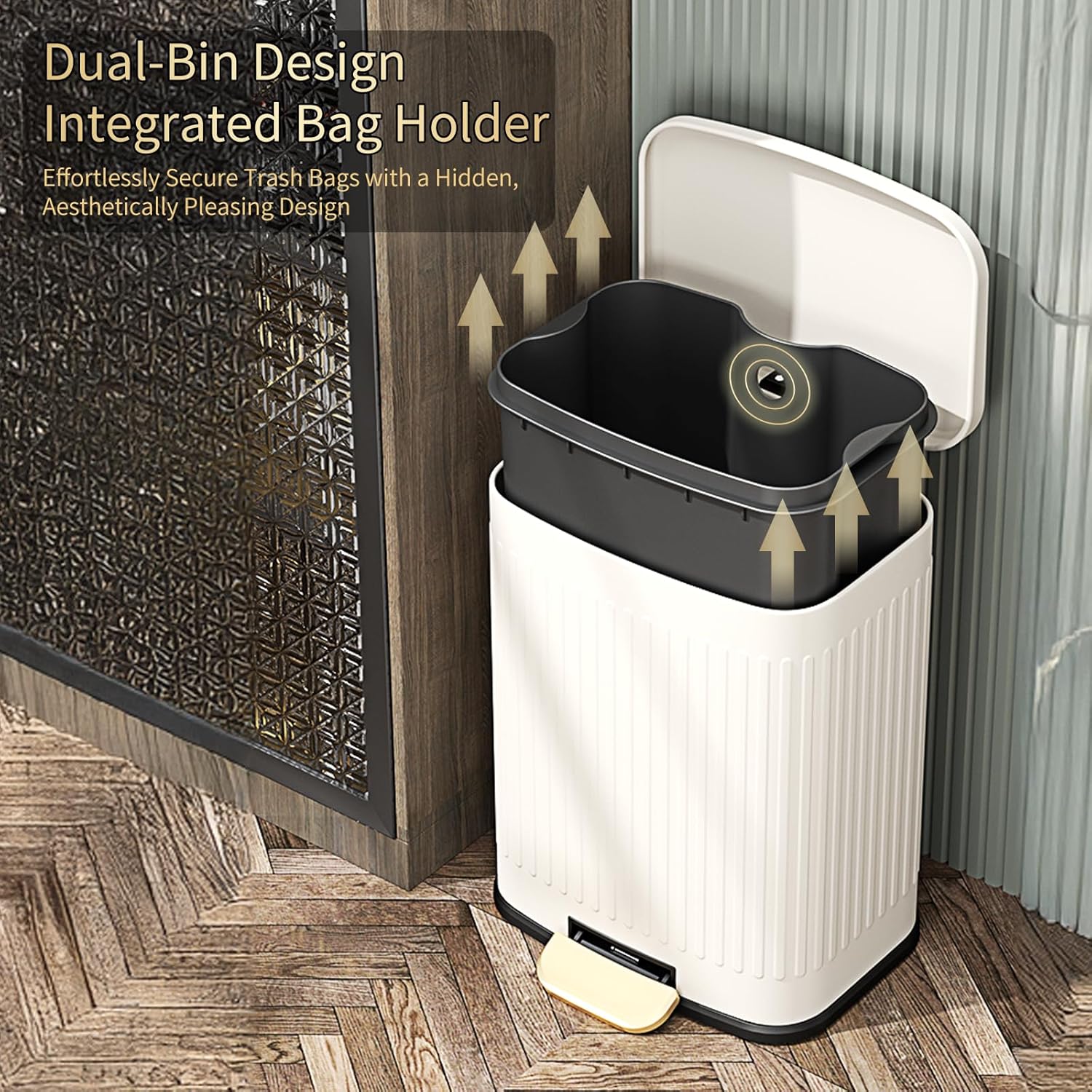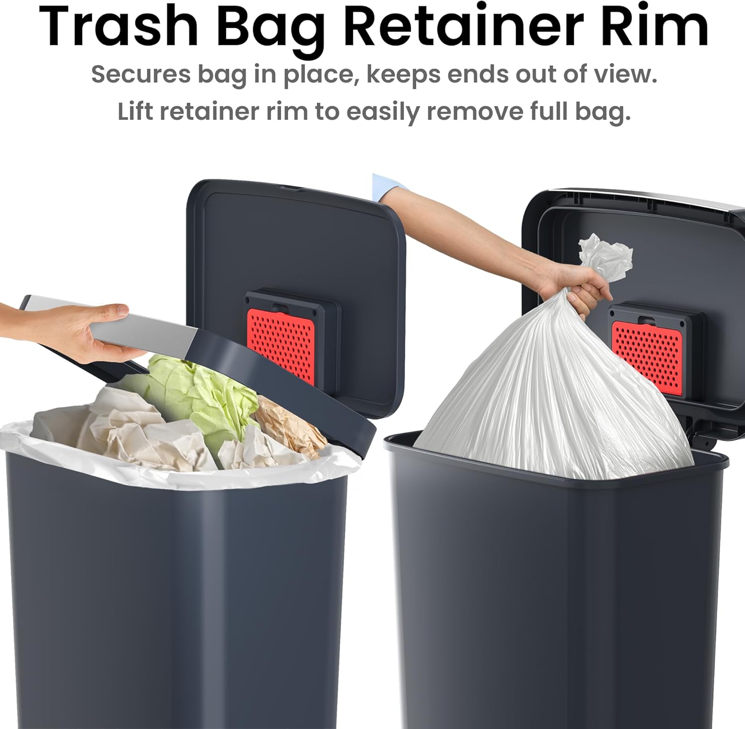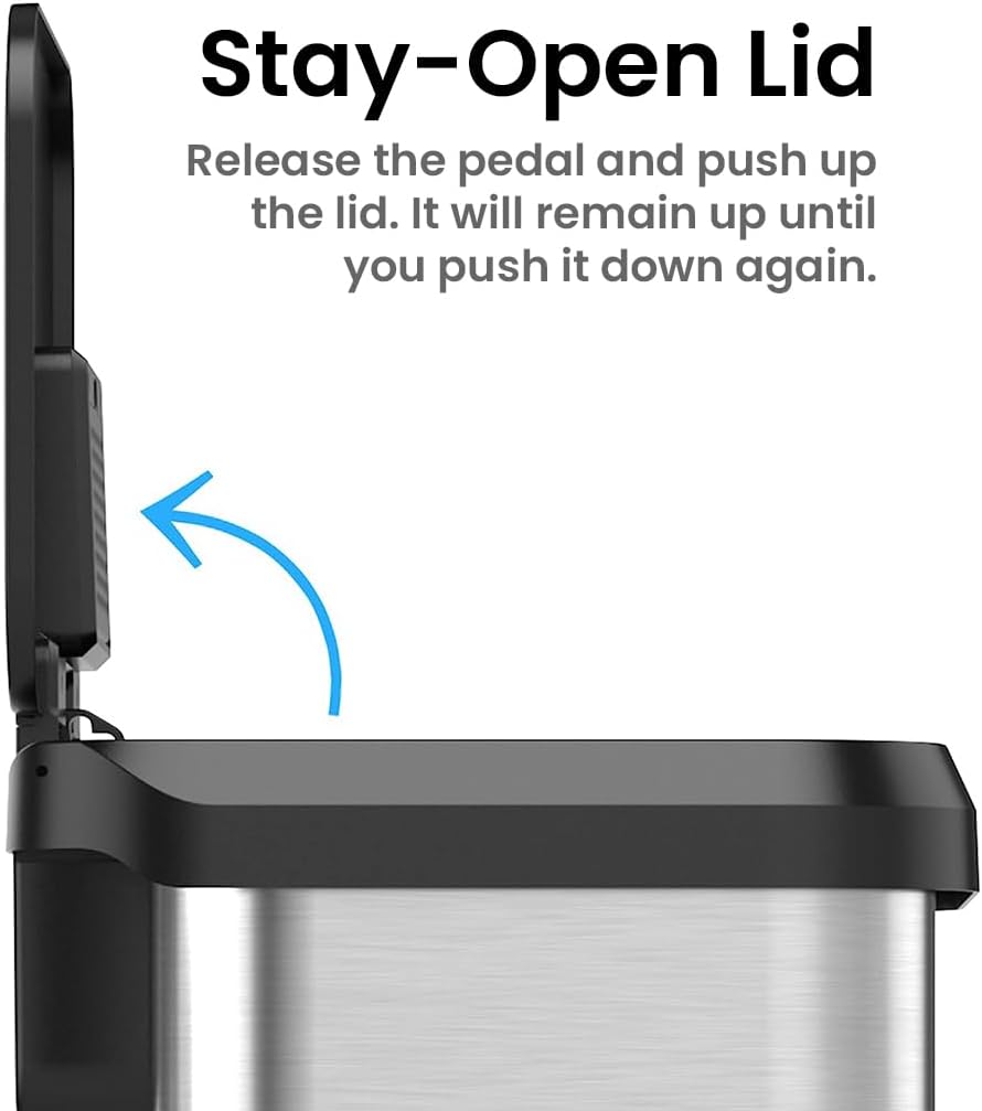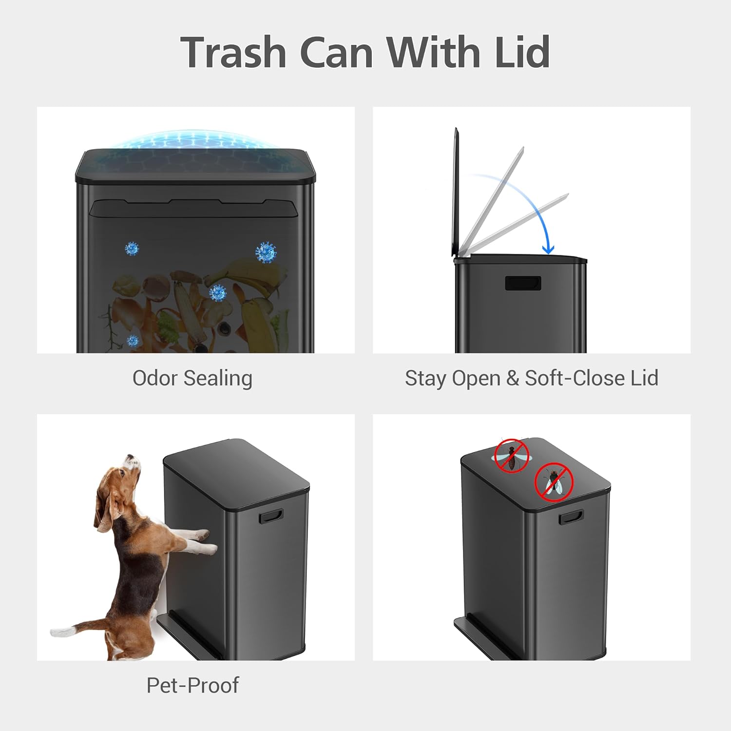 16 Gallon Dual Compartment Trash Can, Stainless Steel Recycling Bin with Soft-Close Lid, Step Rectangle Step Waste Container with Removable Inner Bucket for Kitchen, Dining Room, Black, 2x30L
