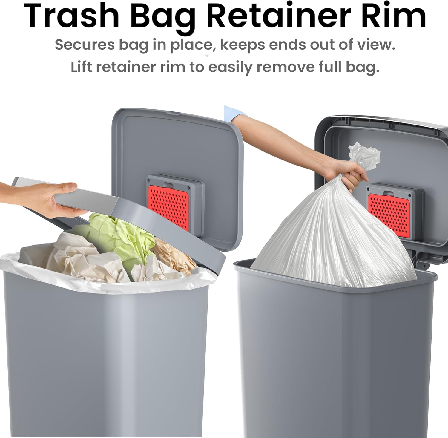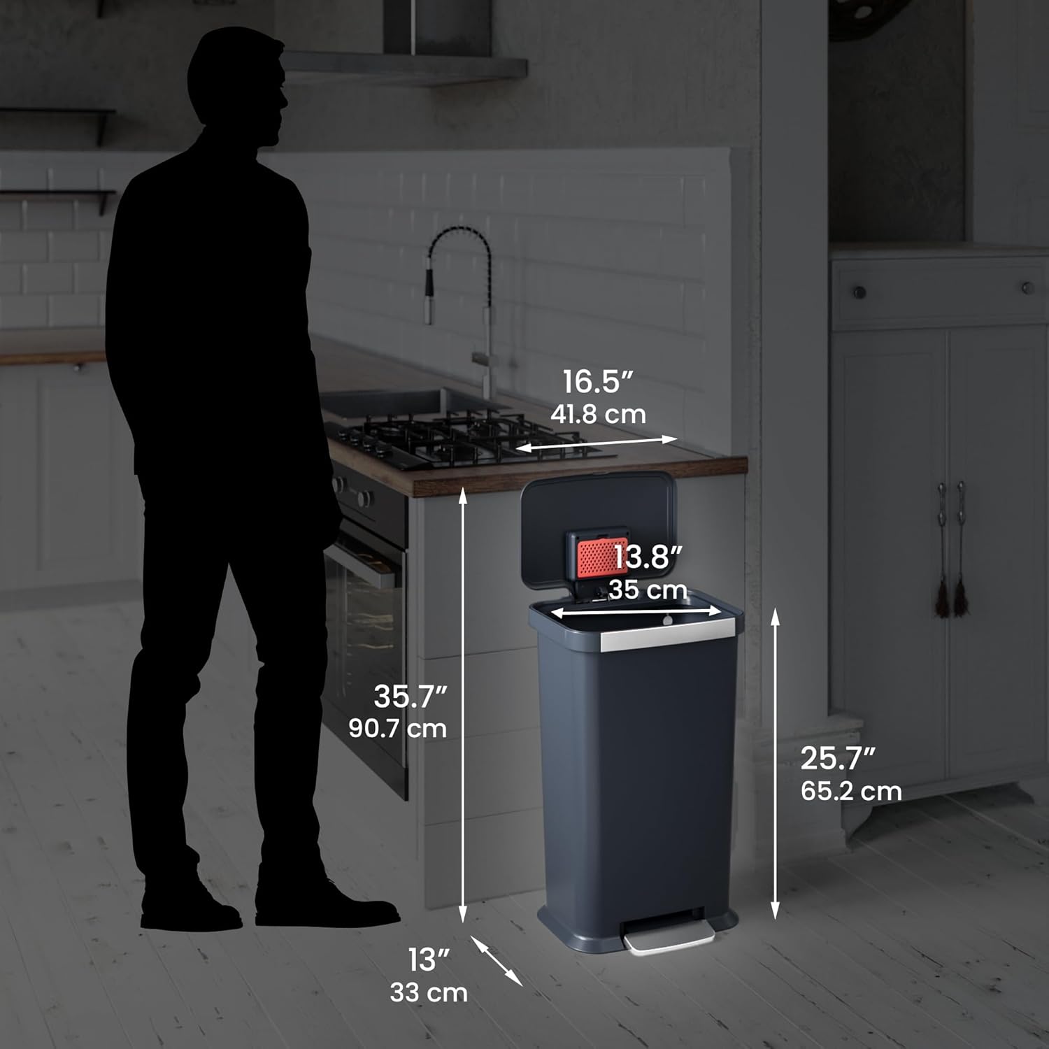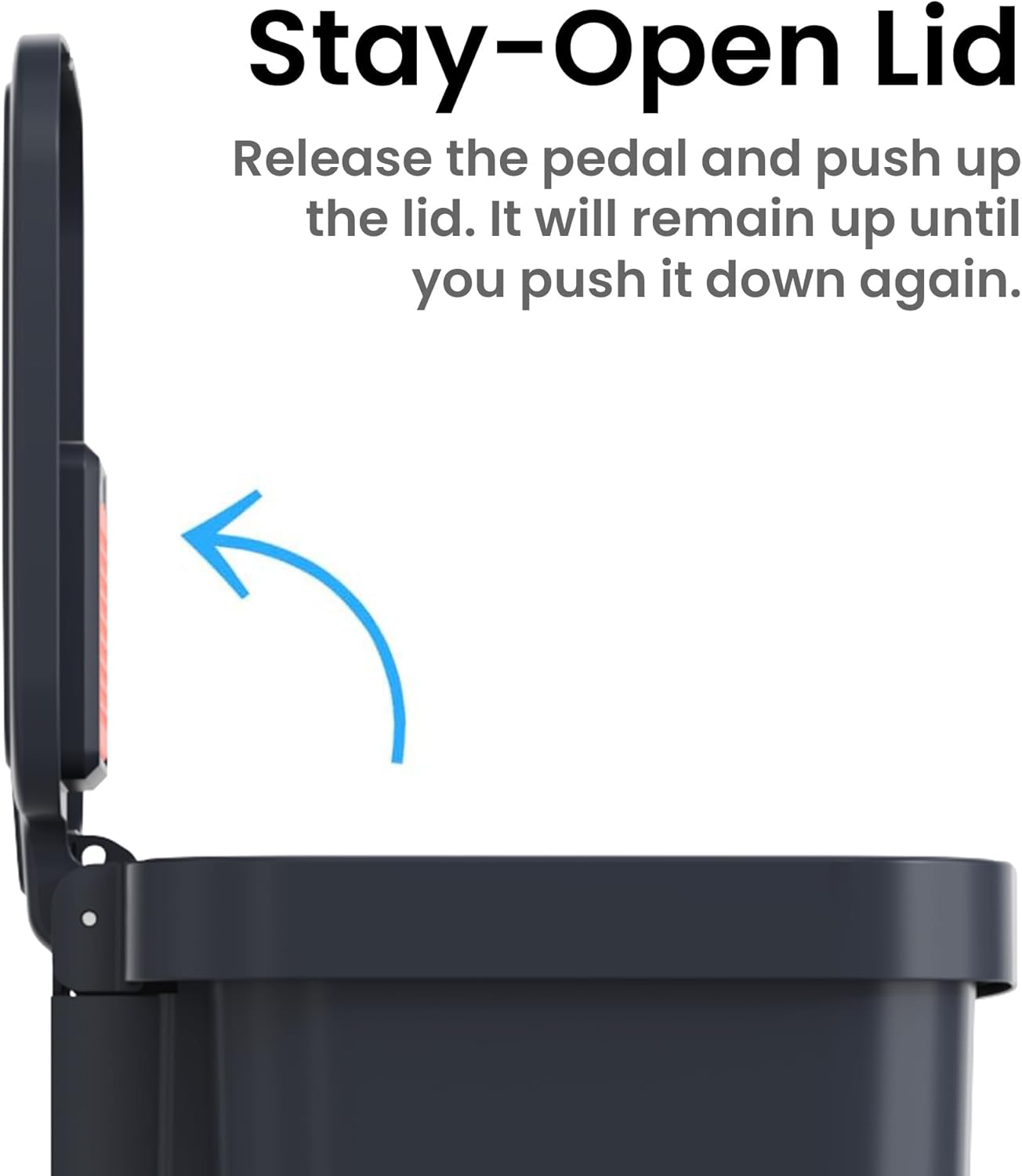 16 Gallon Dual Compartment Trash Can, Stainless Steel Recycling Bin with Soft-Close Lid, Step Rectangle Step Waste Container with Removable Inner Bucket for Kitchen, Dining Room, Black, 2x30L