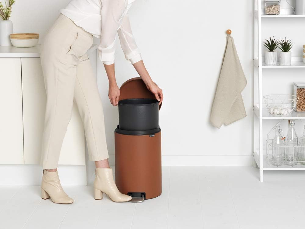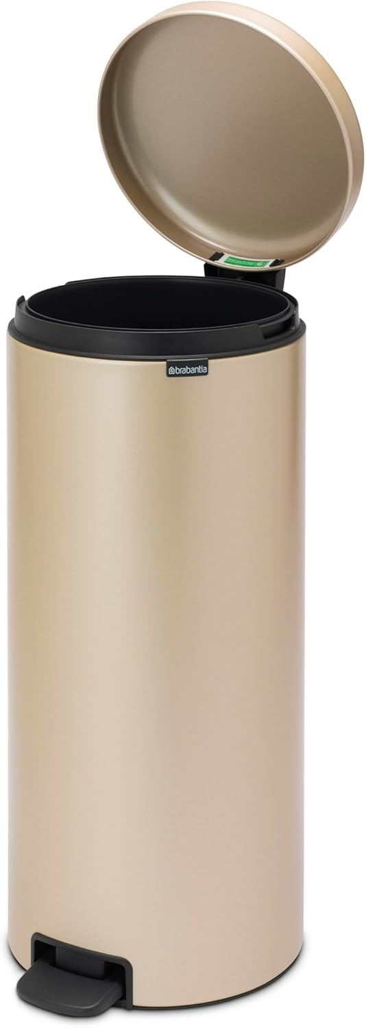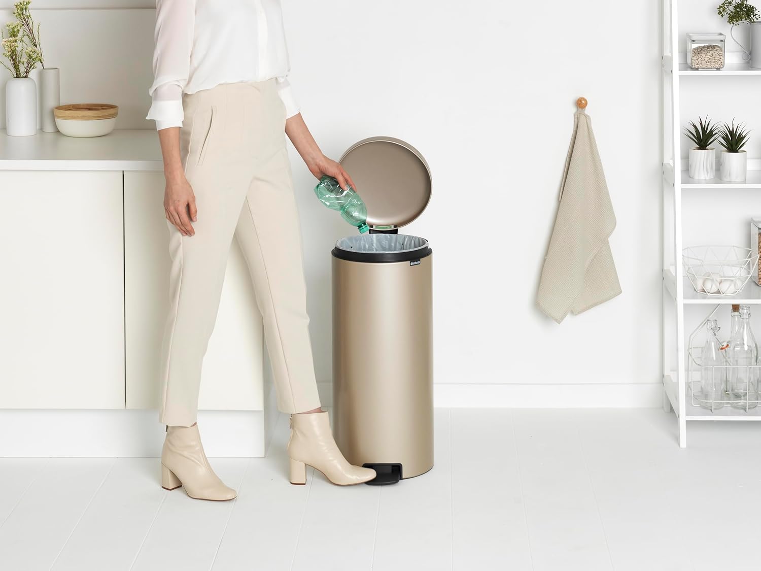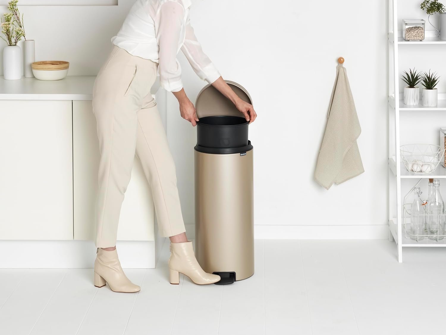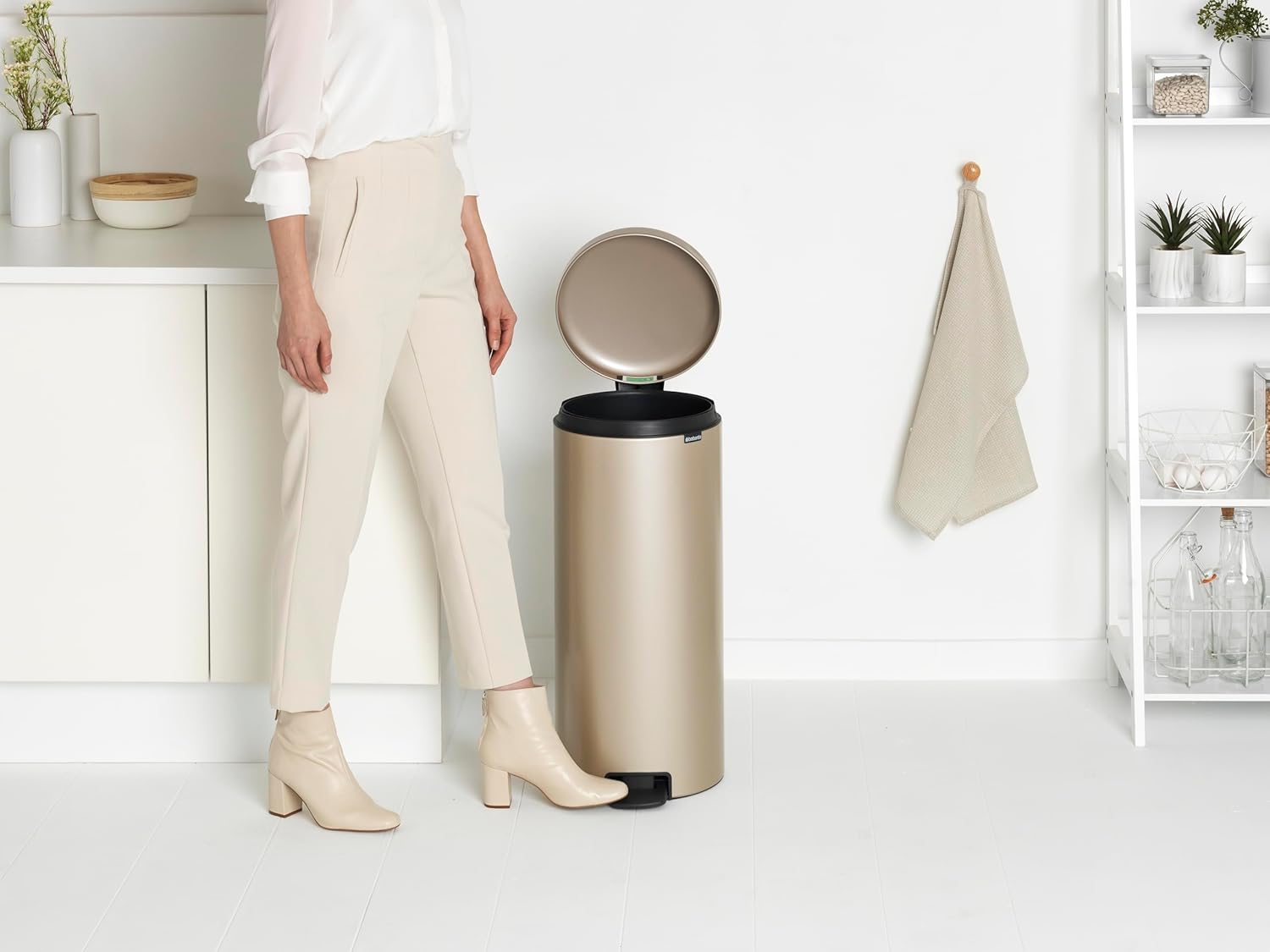 Brabantia New Icon Step Trash Can (8 Gal/Metallic Gold) Soft Closing Kitchen Garbage/Recycling Can with Removable Bucket