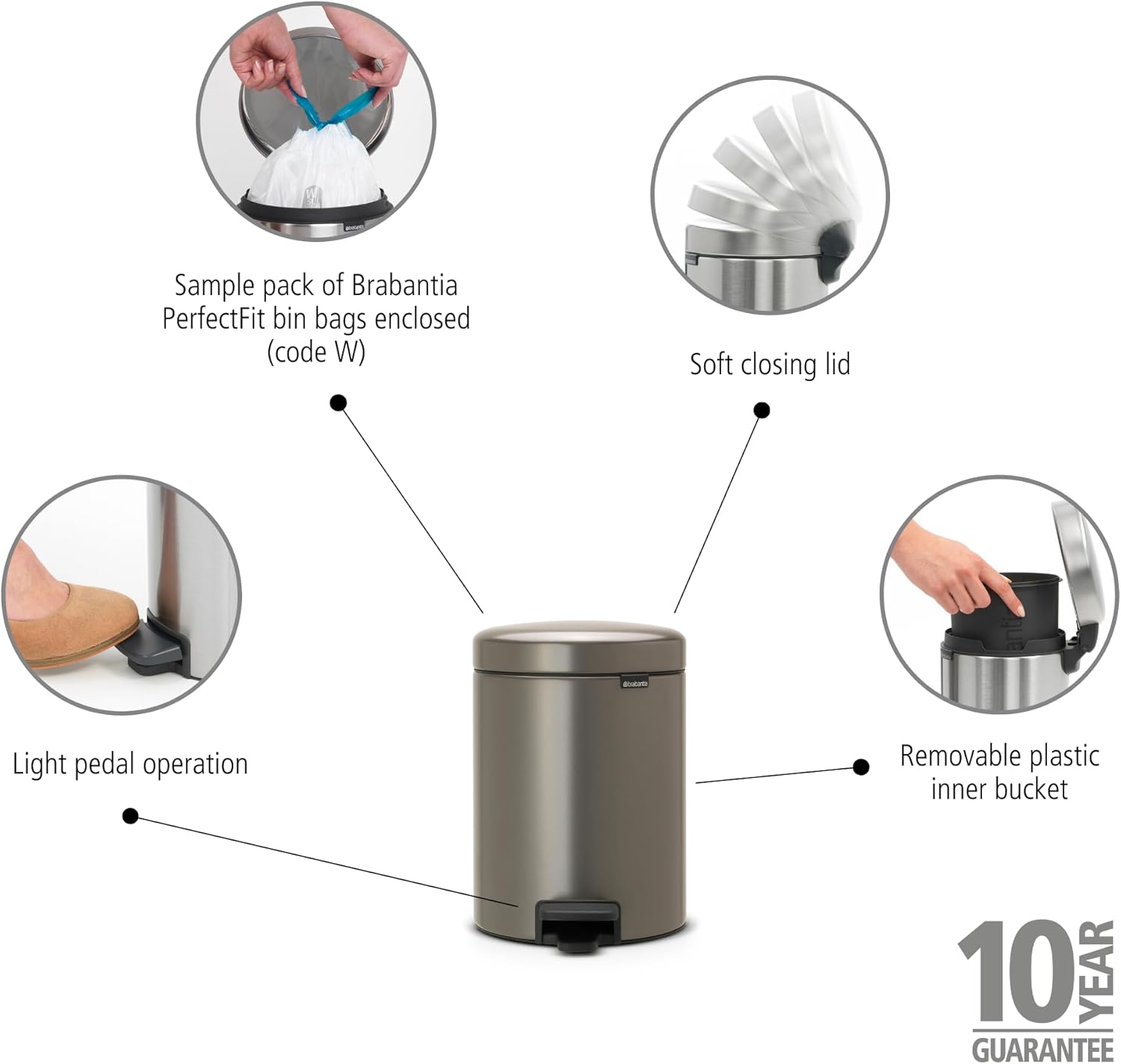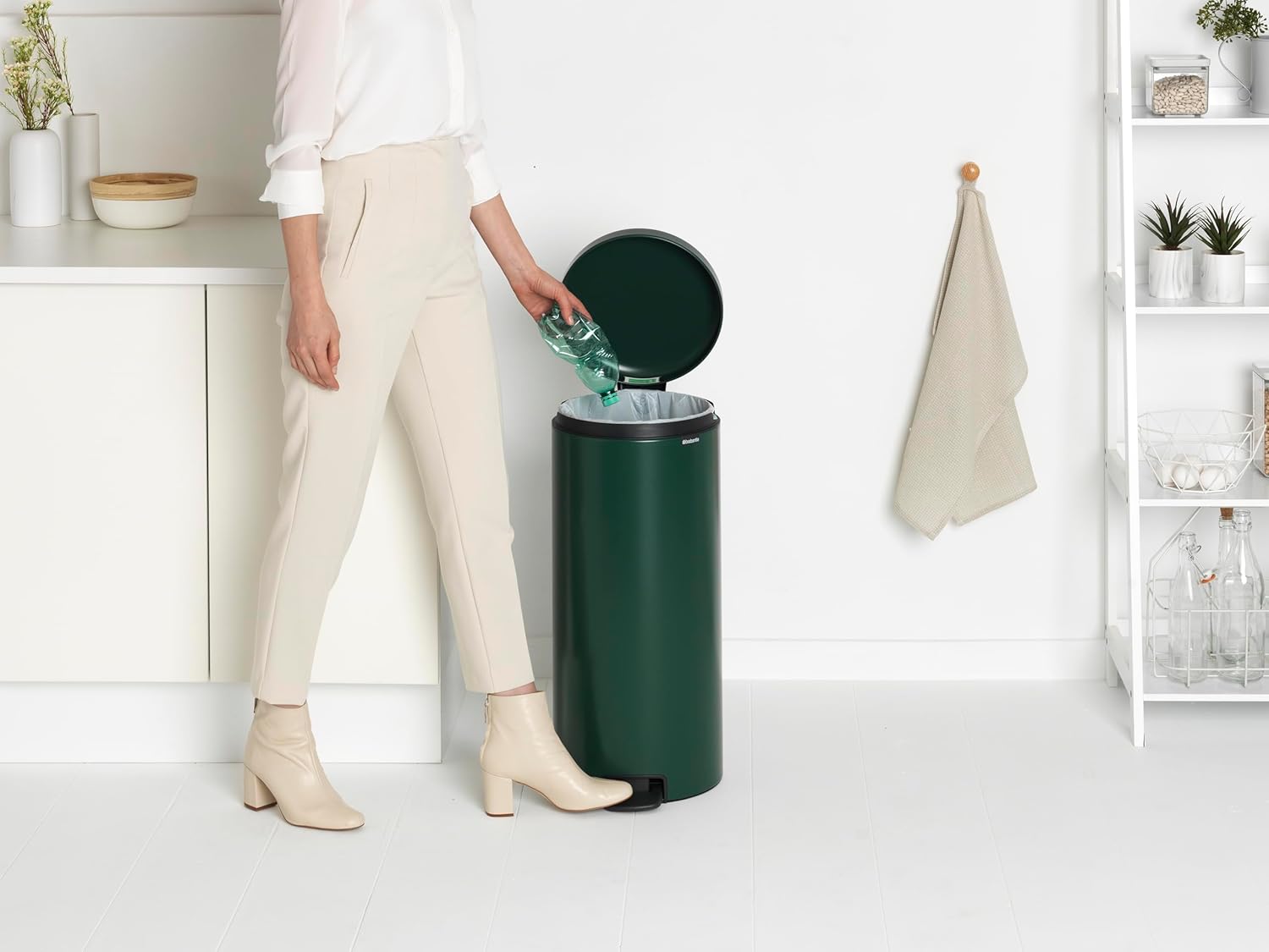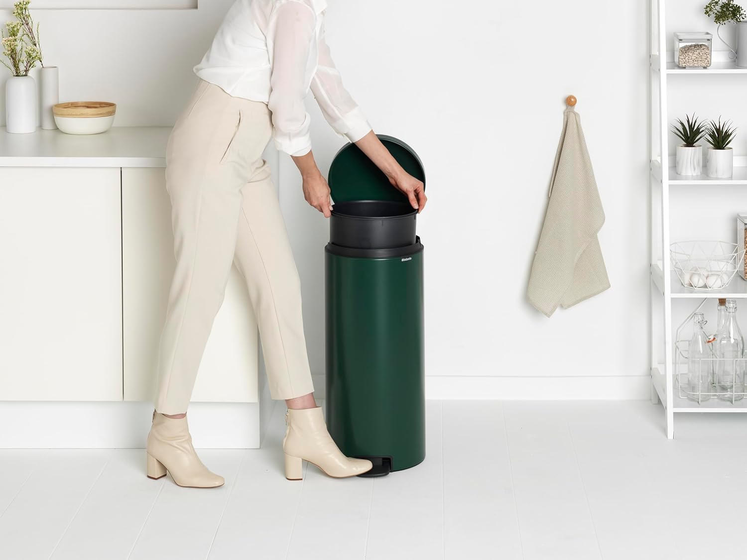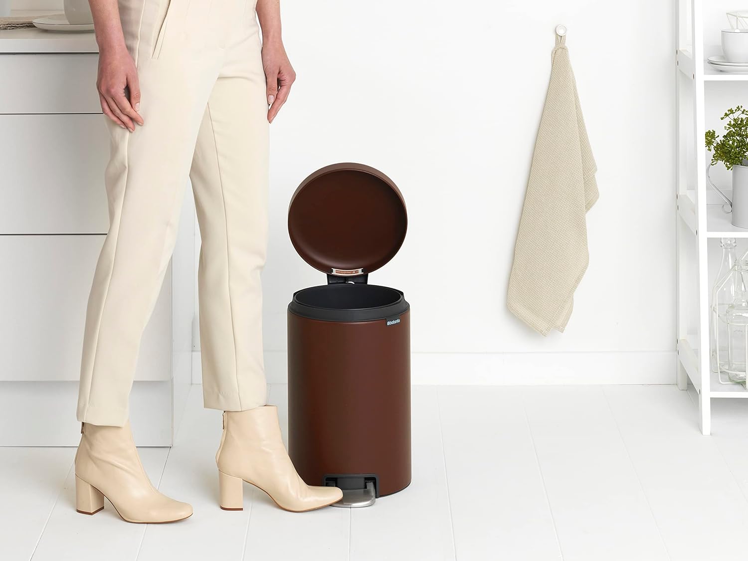 Brabantia New Icon Step Trash Can (8 Gal/Metallic Gold) Soft Closing Kitchen Garbage/Recycling Can with Removable Bucket