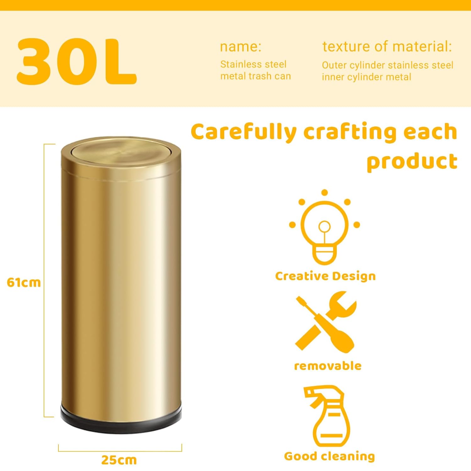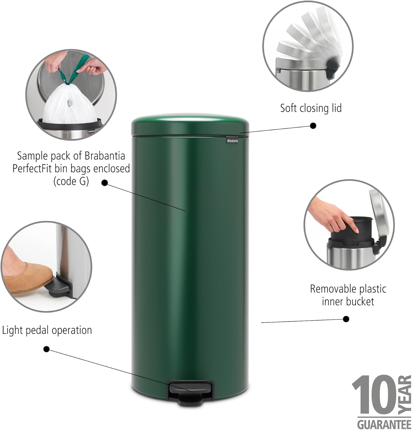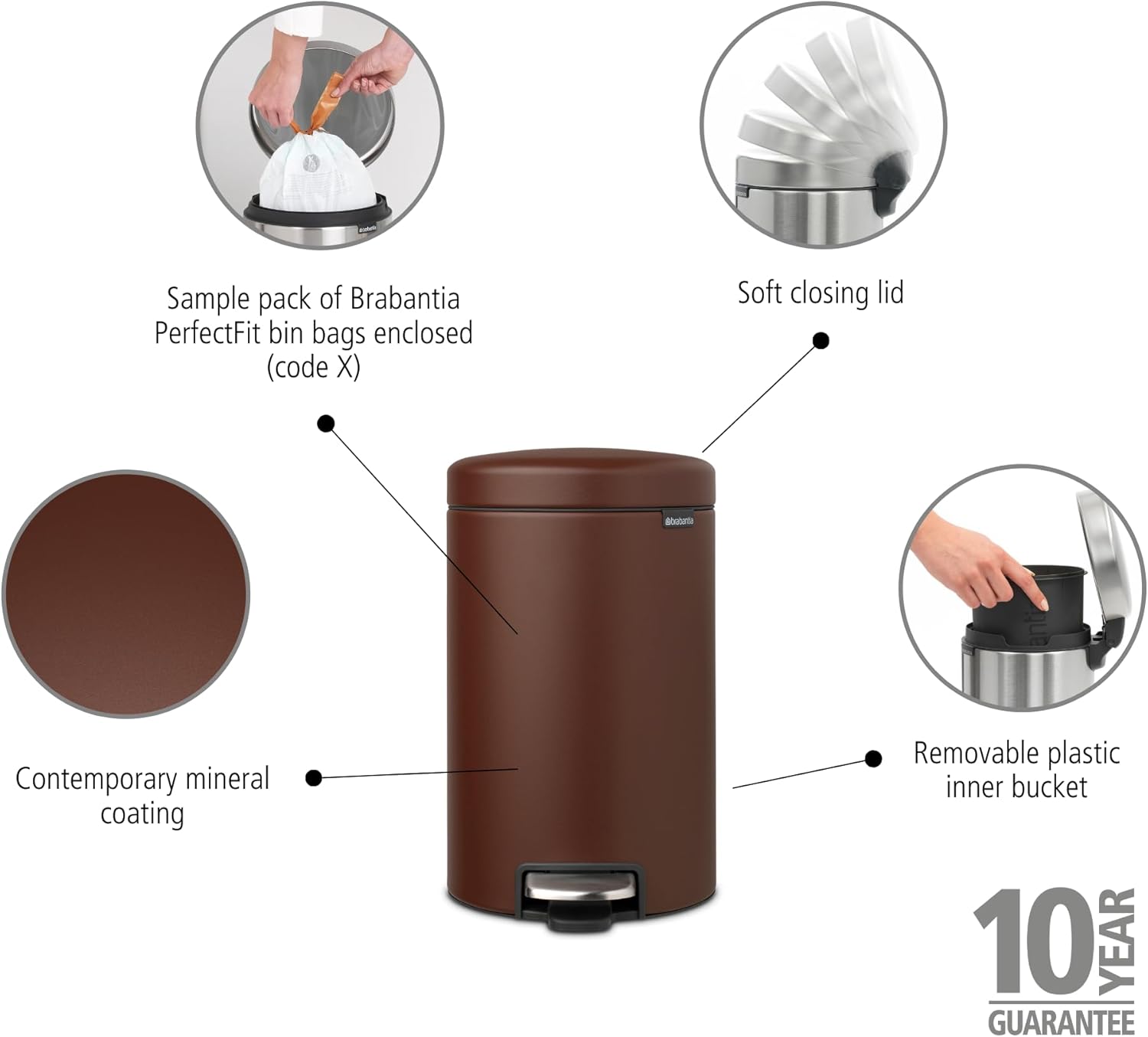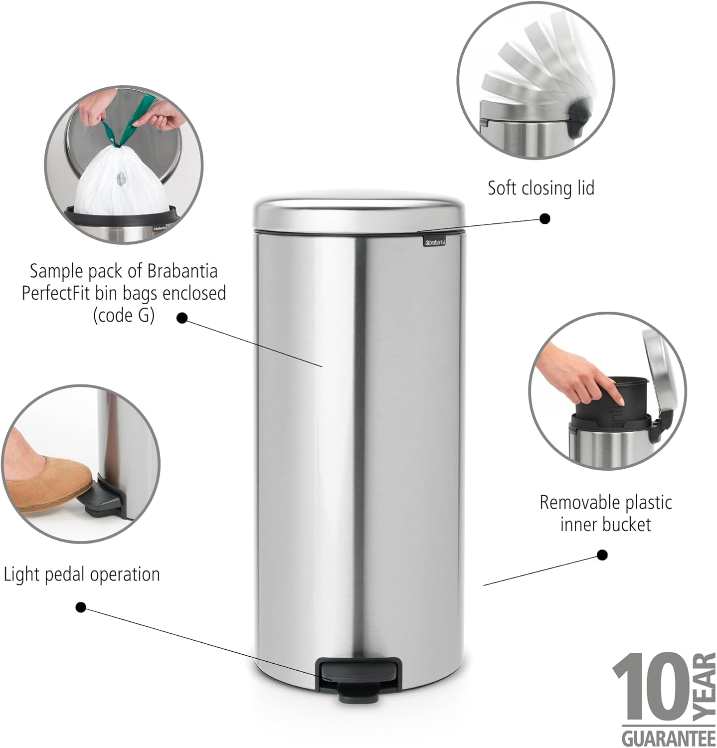 Brabantia New Icon Step Trash Can (8 Gal/Metallic Gold) Soft Closing Kitchen Garbage/Recycling Can with Removable Bucket