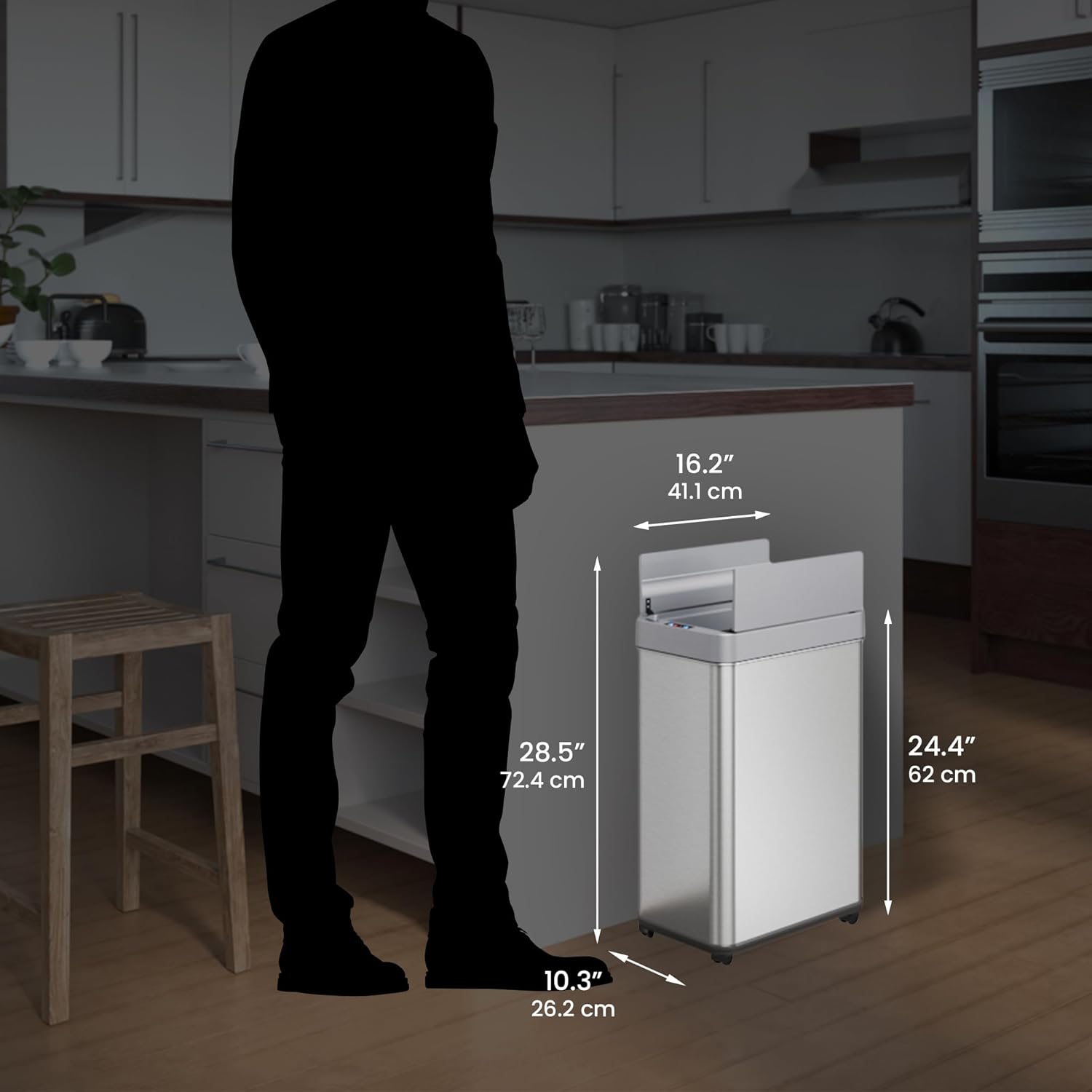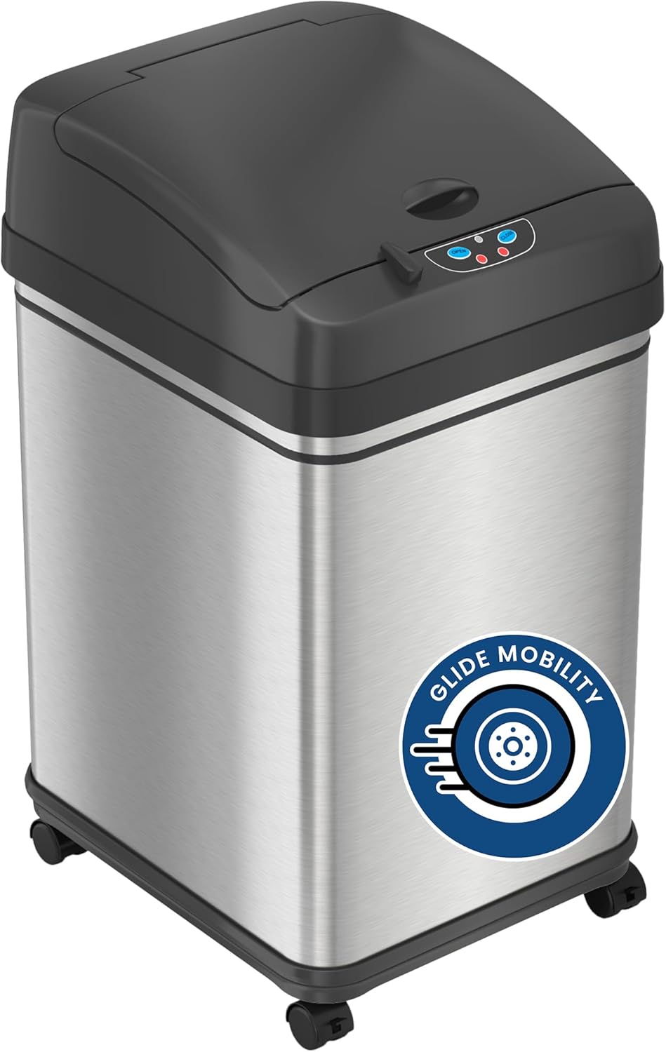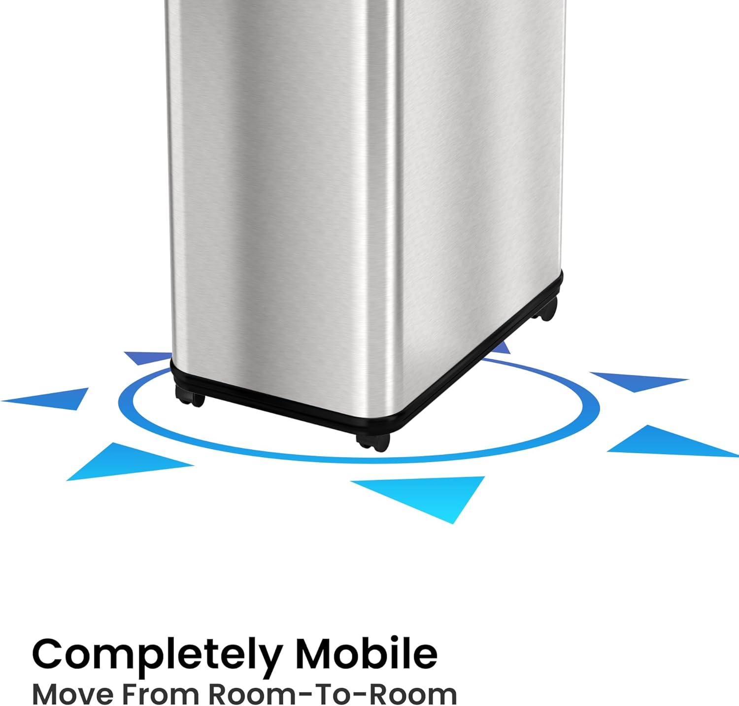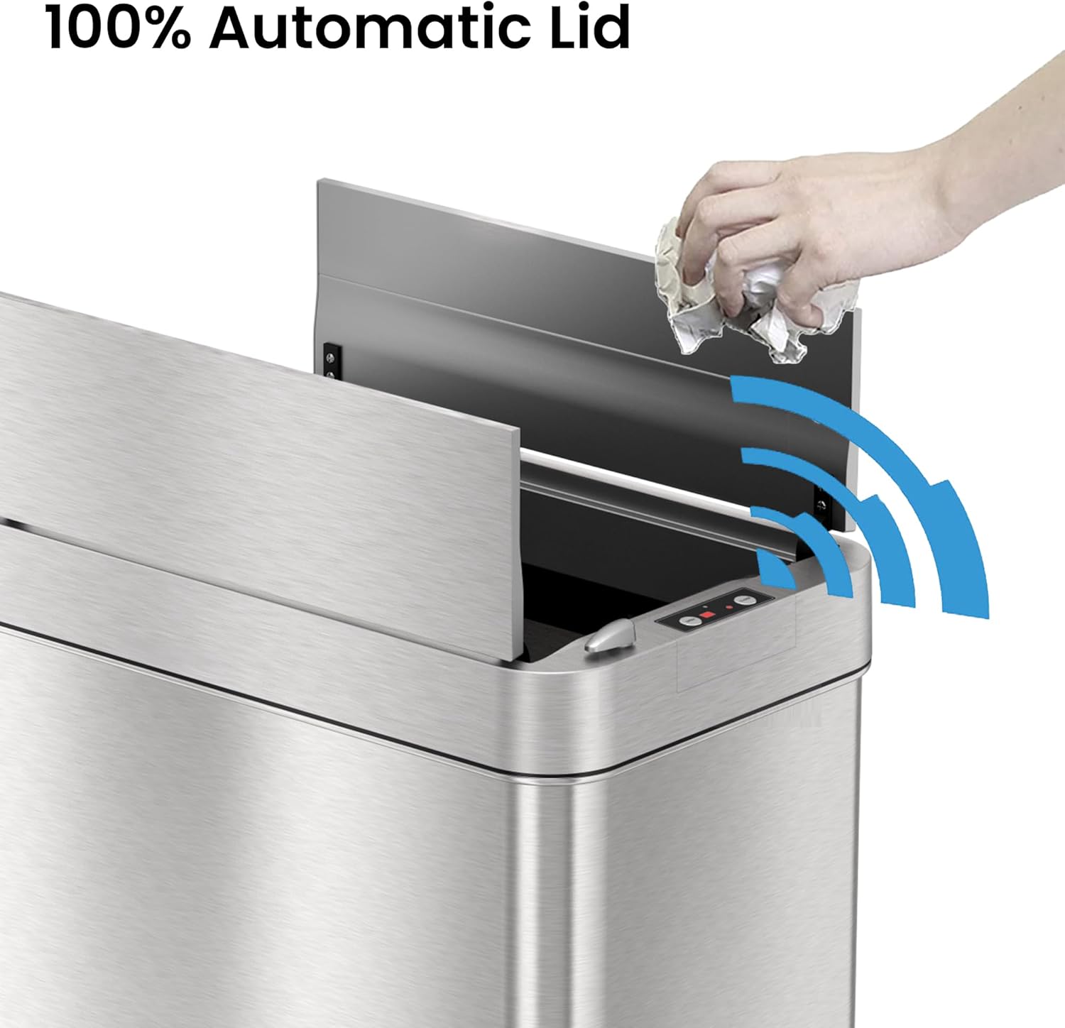 iTouchless 16 Gallon Touchless Sensor Kitchen Trash Can and Recycle Bin with Wheels, 60 Liter Stainless Steel Dual-Compartment (2 x 8 Gallon) Combo Recycling and Garbage Trashcan