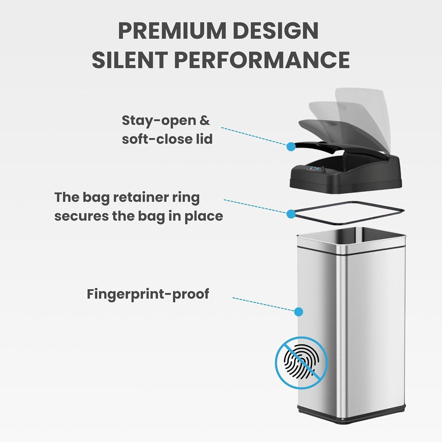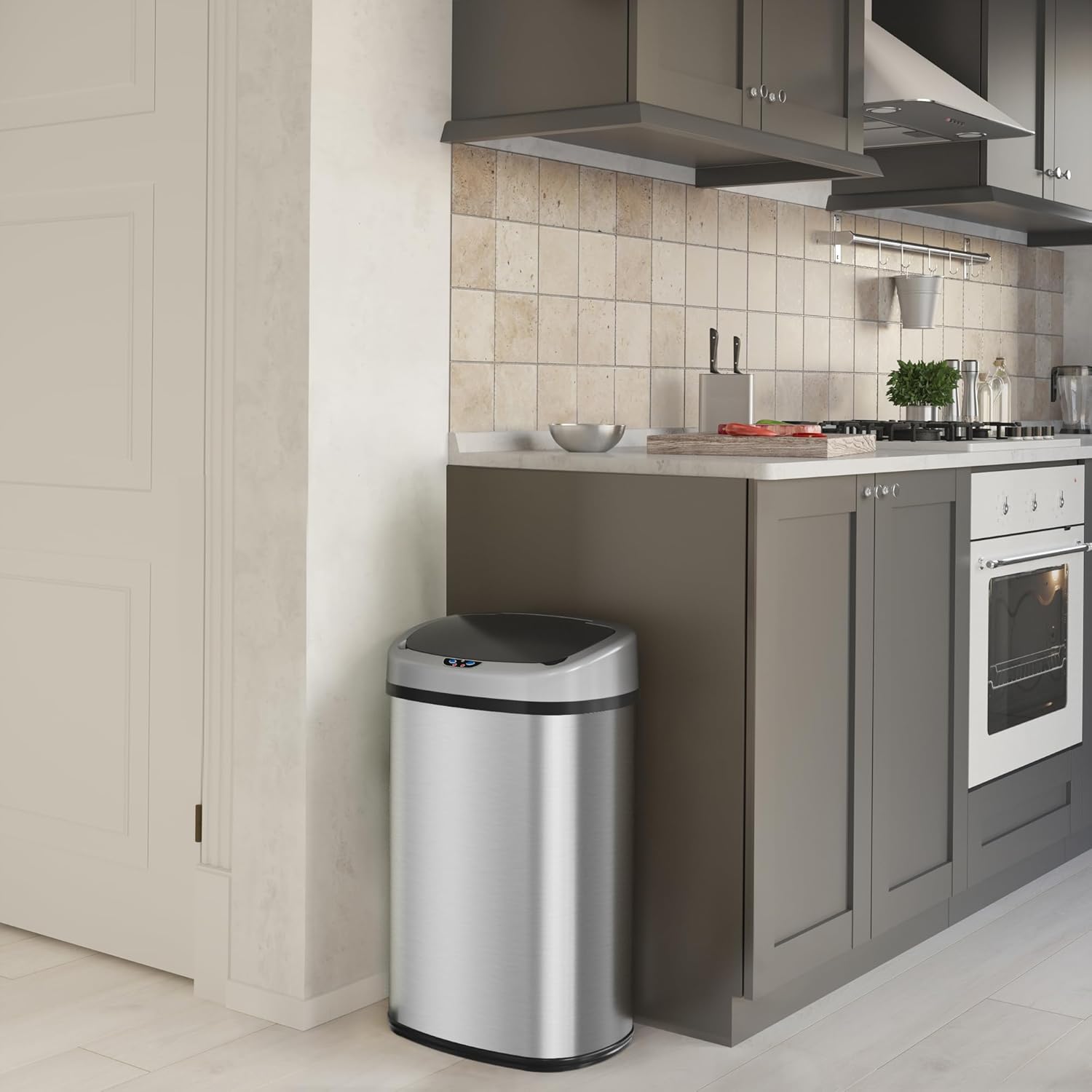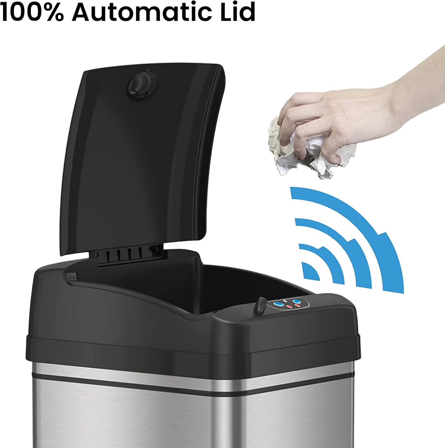 iTouchless 16 Gallon Touchless Sensor Kitchen Trash Can and Recycle Bin with Wheels, 60 Liter Stainless Steel Dual-Compartment (2 x 8 Gallon) Combo Recycling and Garbage Trashcan
