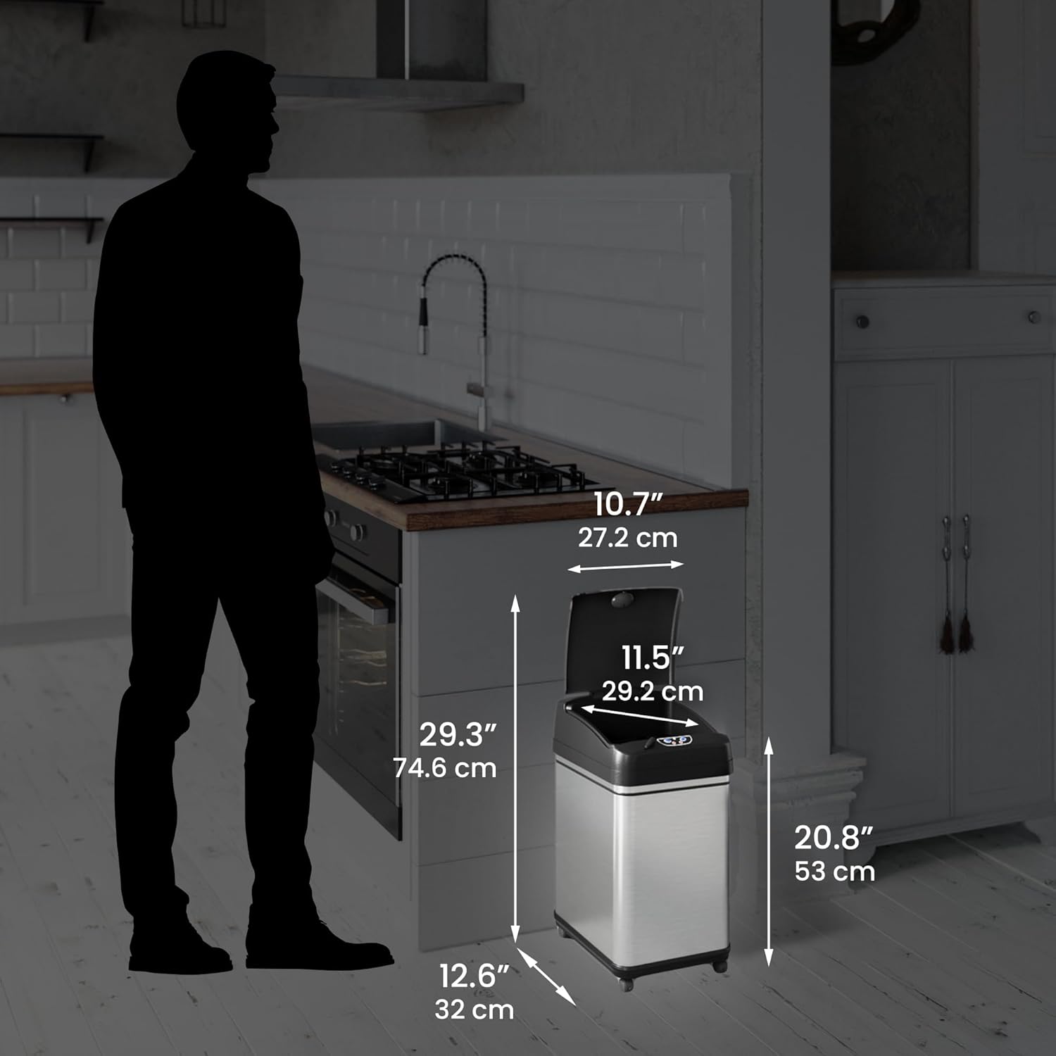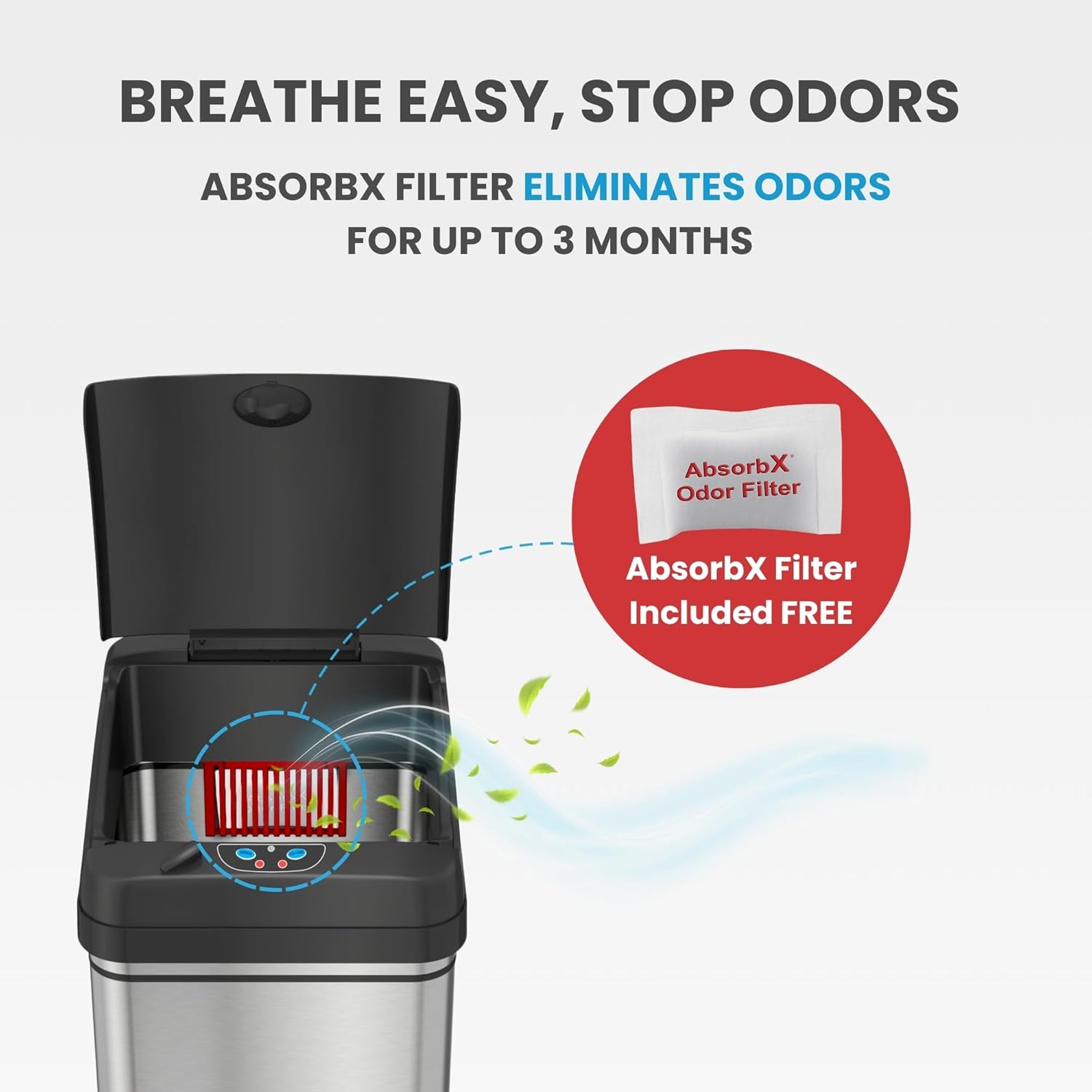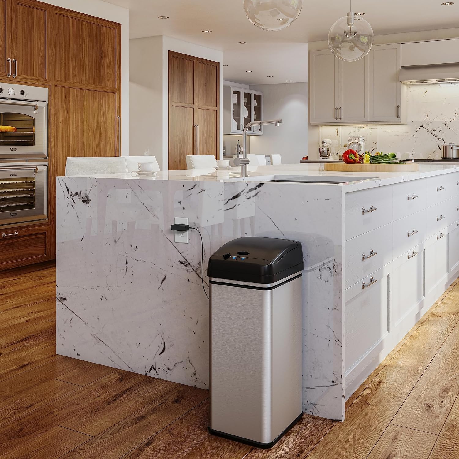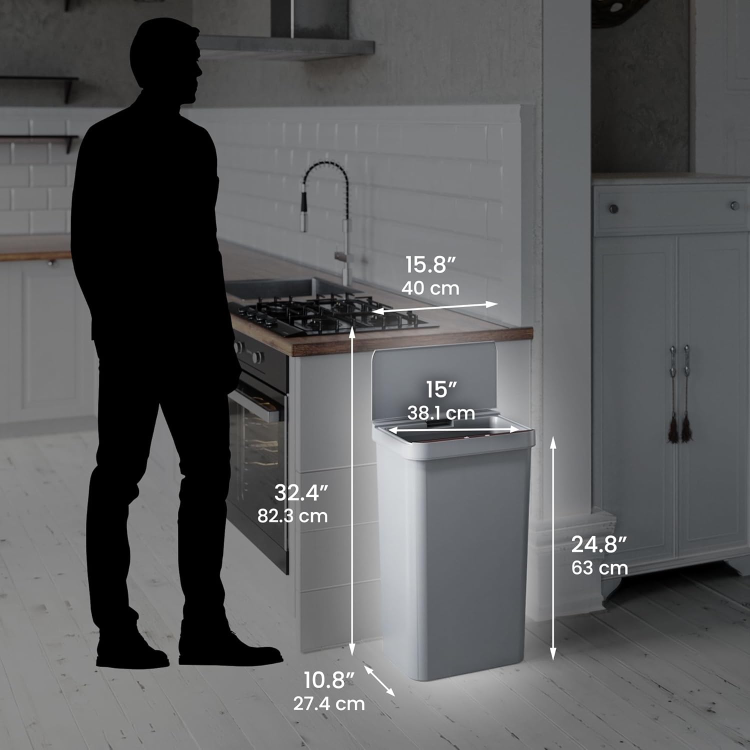 iTouchless 16 Gallon Touchless Sensor Kitchen Trash Can and Recycle Bin with Wheels, 60 Liter Stainless Steel Dual-Compartment (2 x 8 Gallon) Combo Recycling and Garbage Trashcan