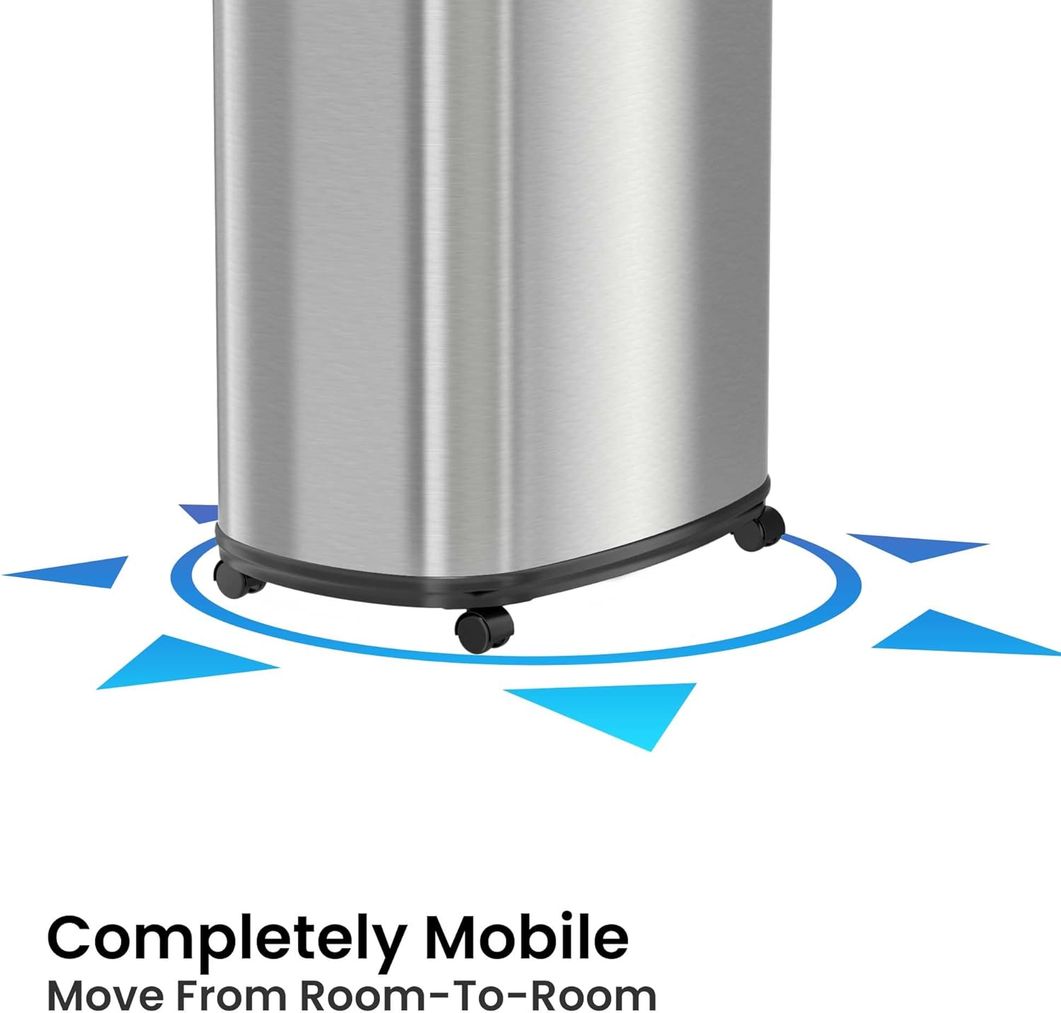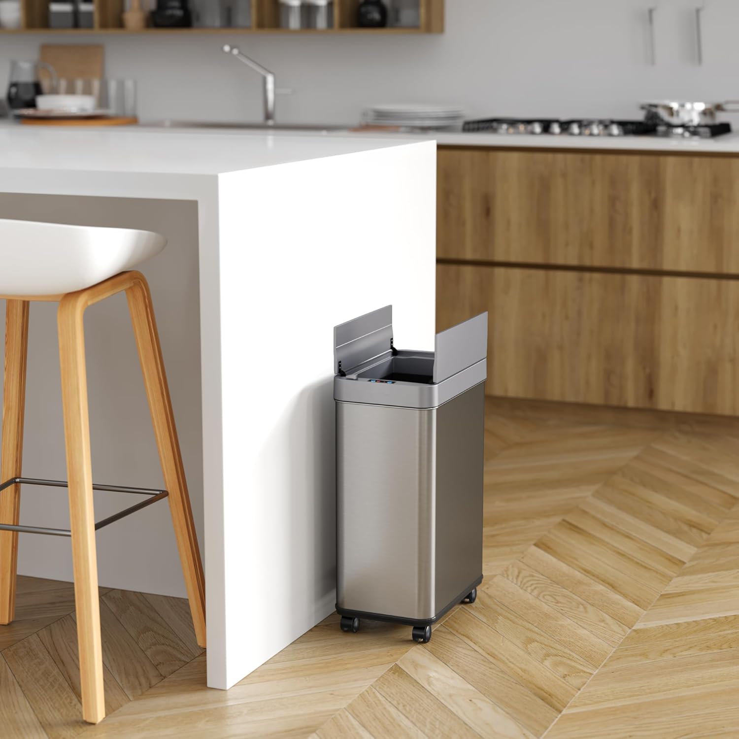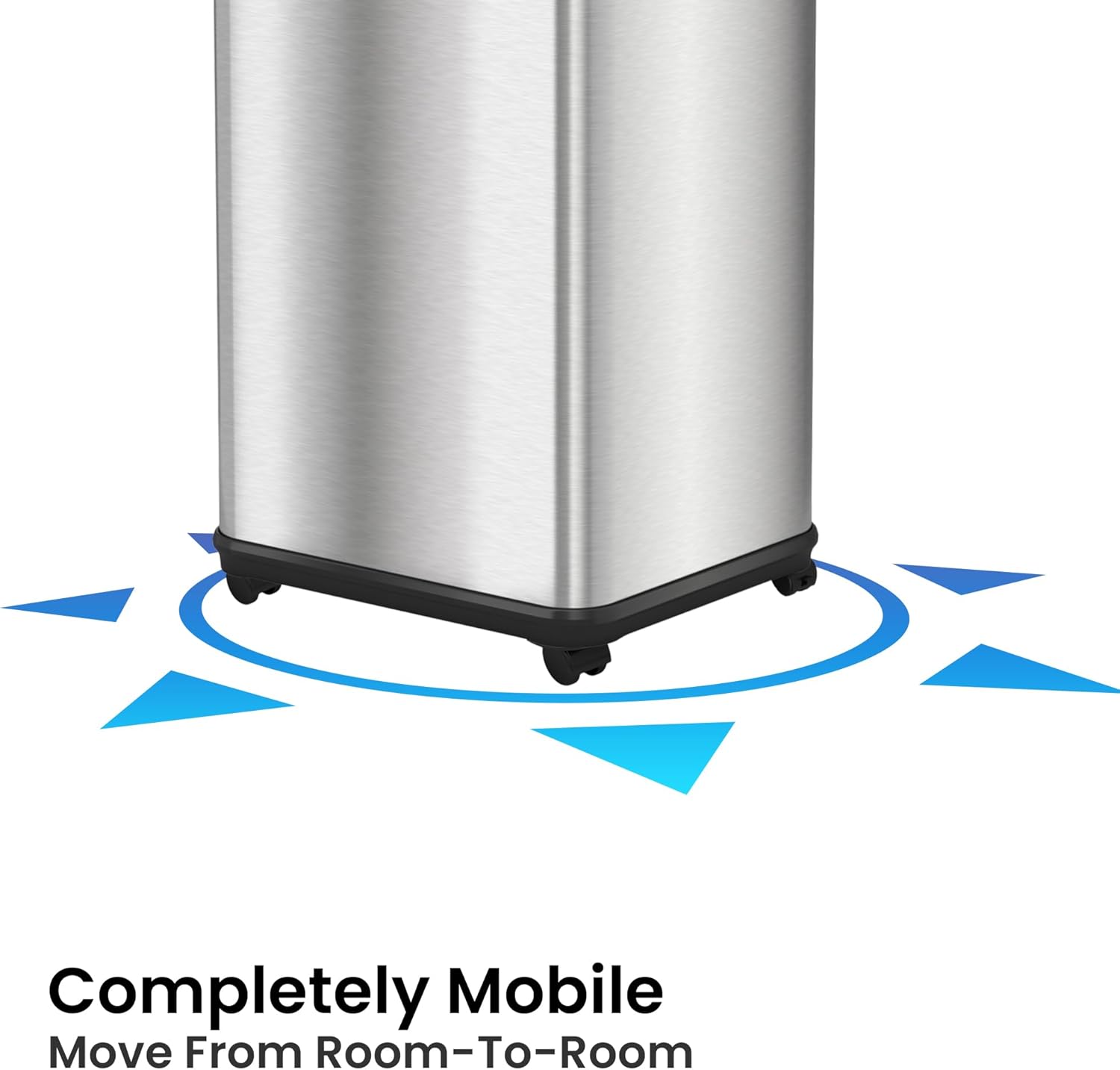 iTouchless 18 Gallon Wings-Open Mobile Wheeled Kitchen Trash Can with Lid and Odor Filter, Dog Proof Stainless Steel Garbage Bin for Home Office Work Bedroom Living Room Garage Slim Wastebasket