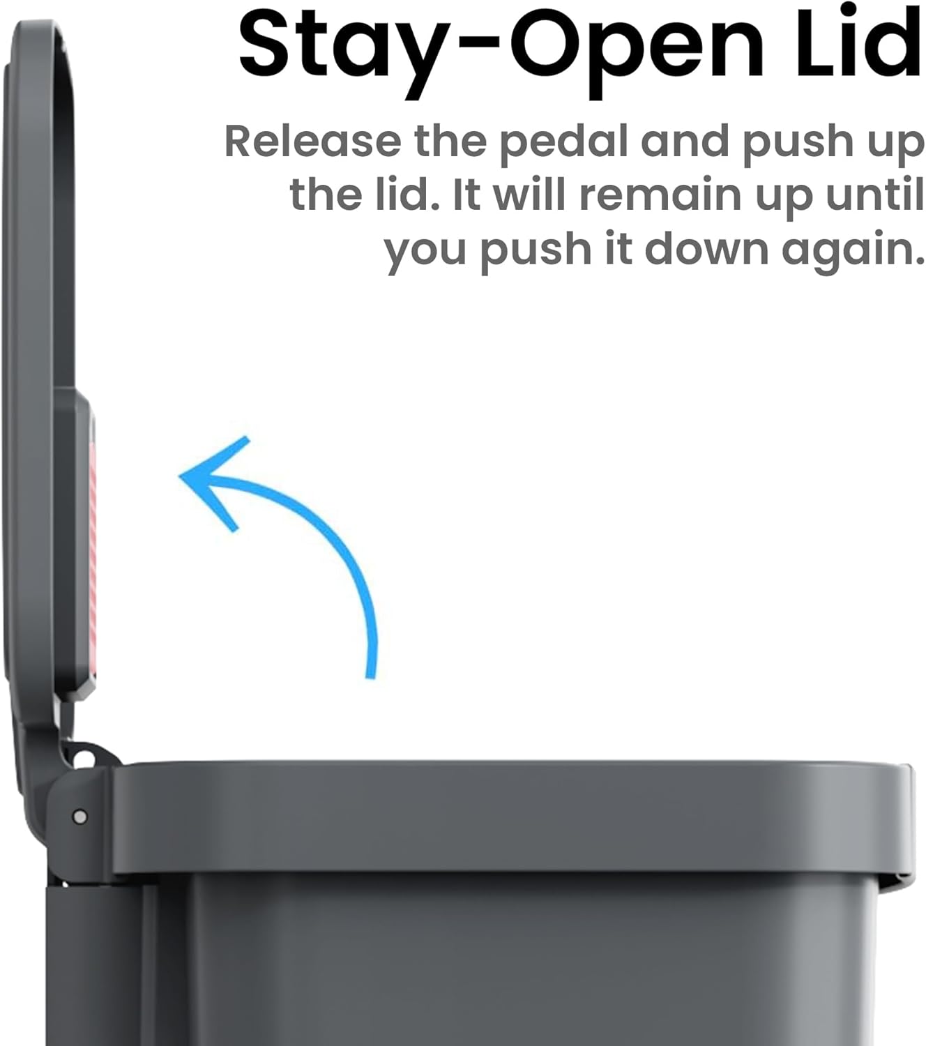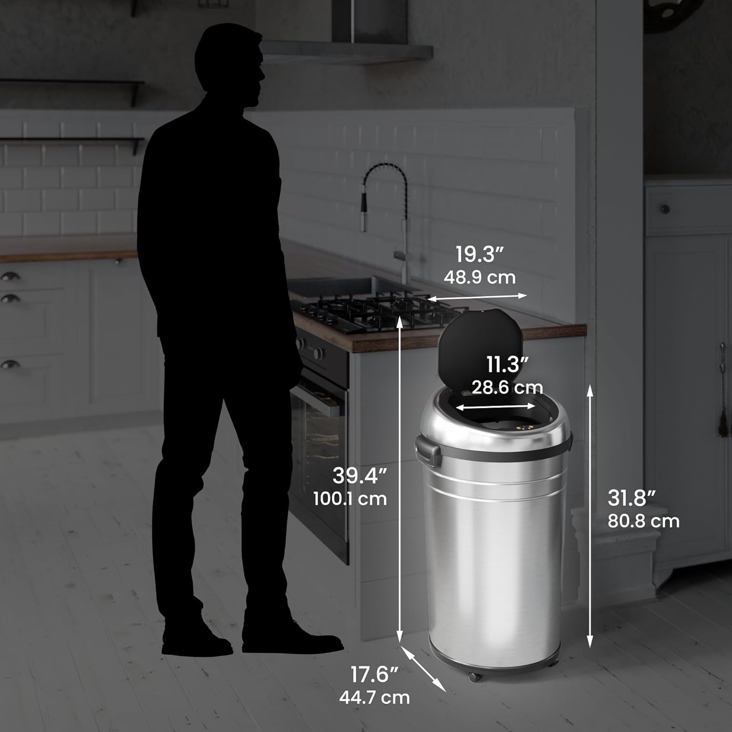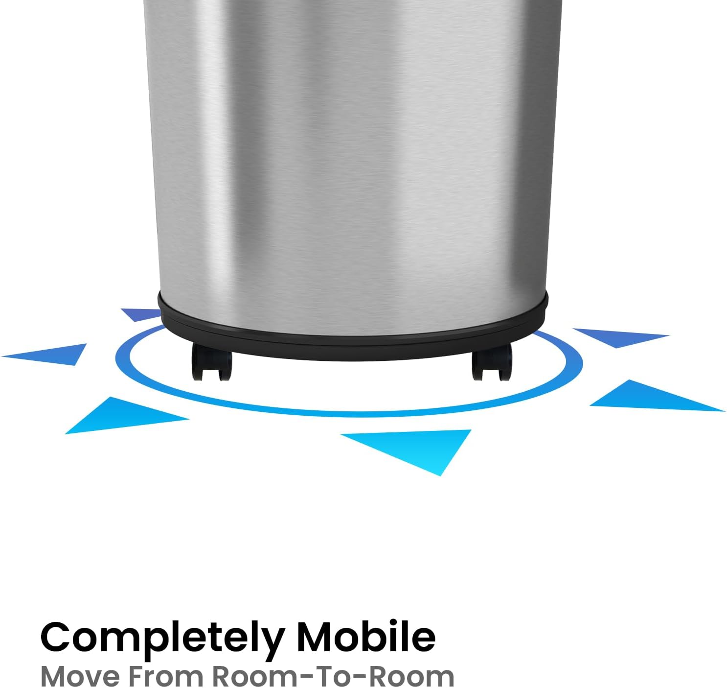 iTouchless 18 Gallon Wings-Open Mobile Wheeled Kitchen Trash Can with Lid and Odor Filter, Dog Proof Stainless Steel Garbage Bin for Home Office Work Bedroom Living Room Garage Slim Wastebasket