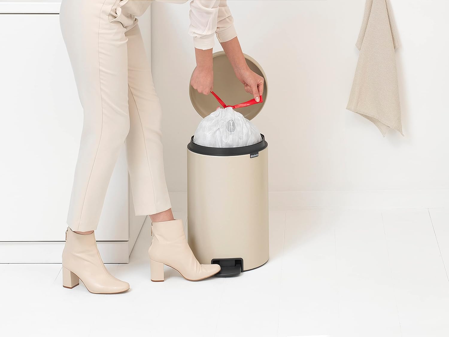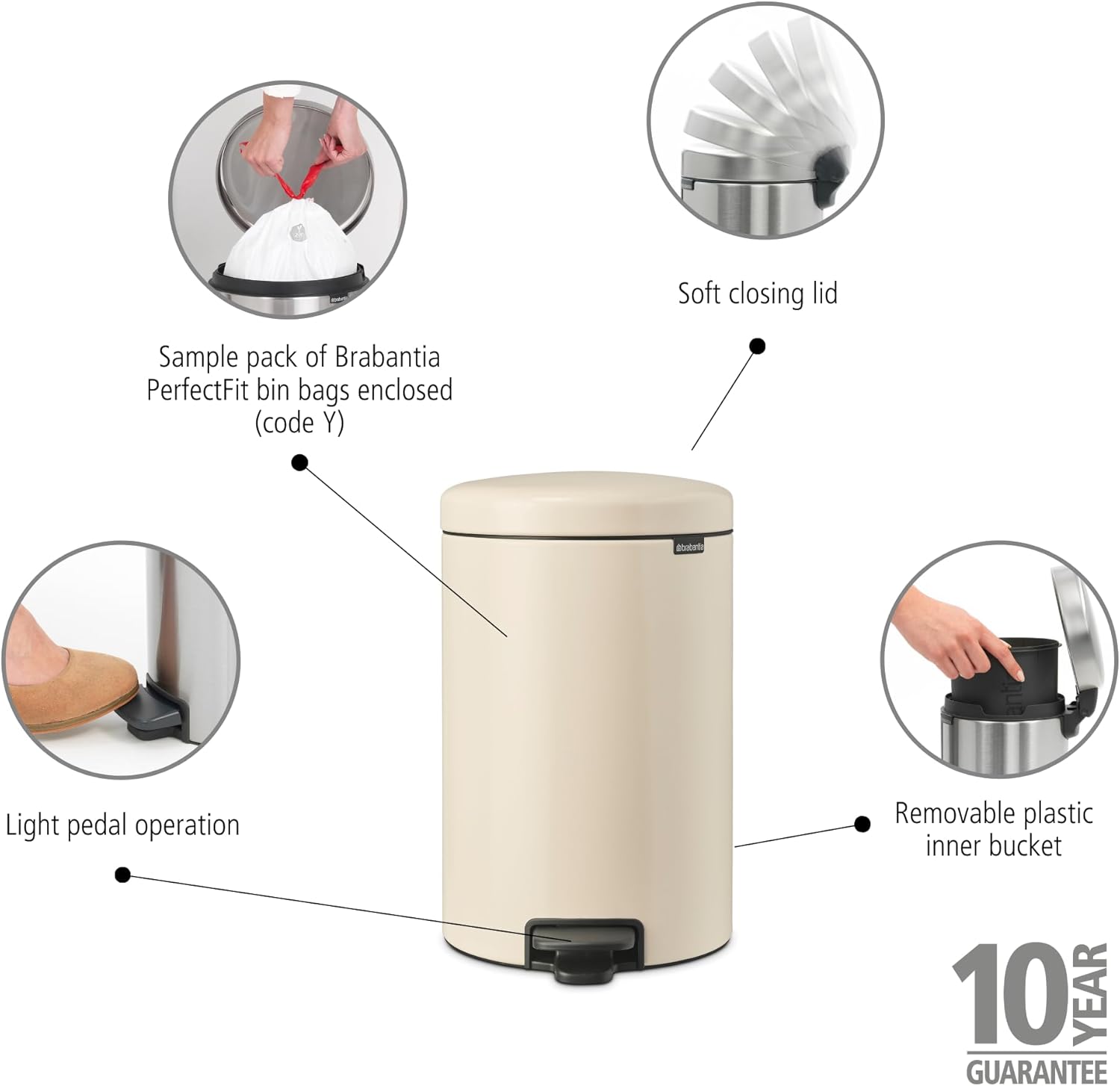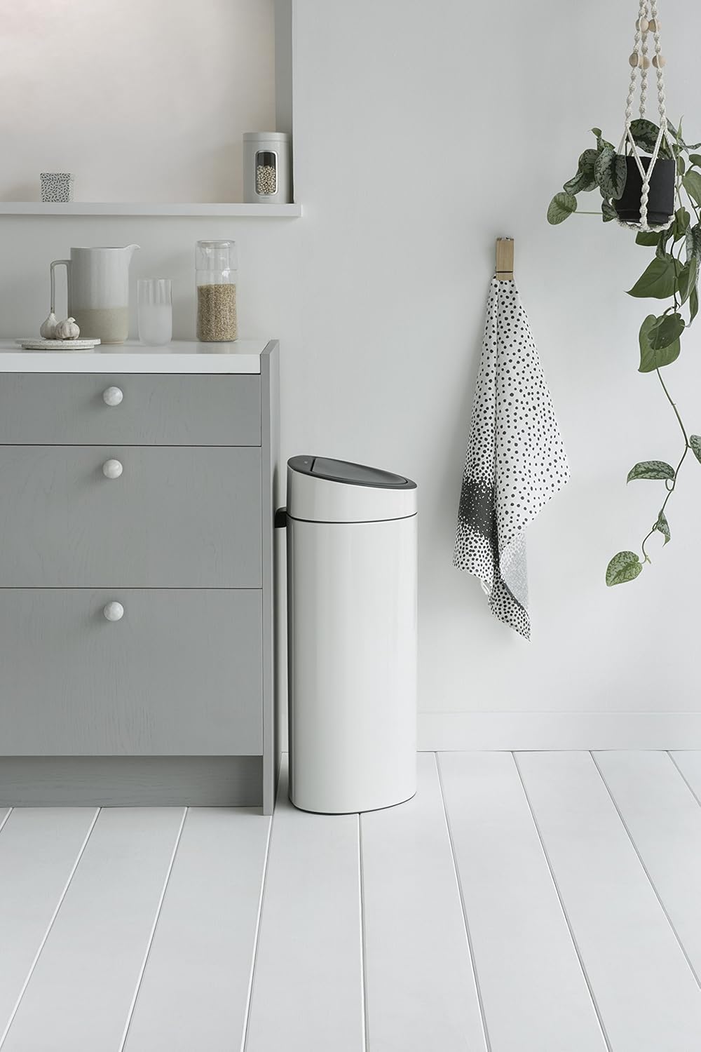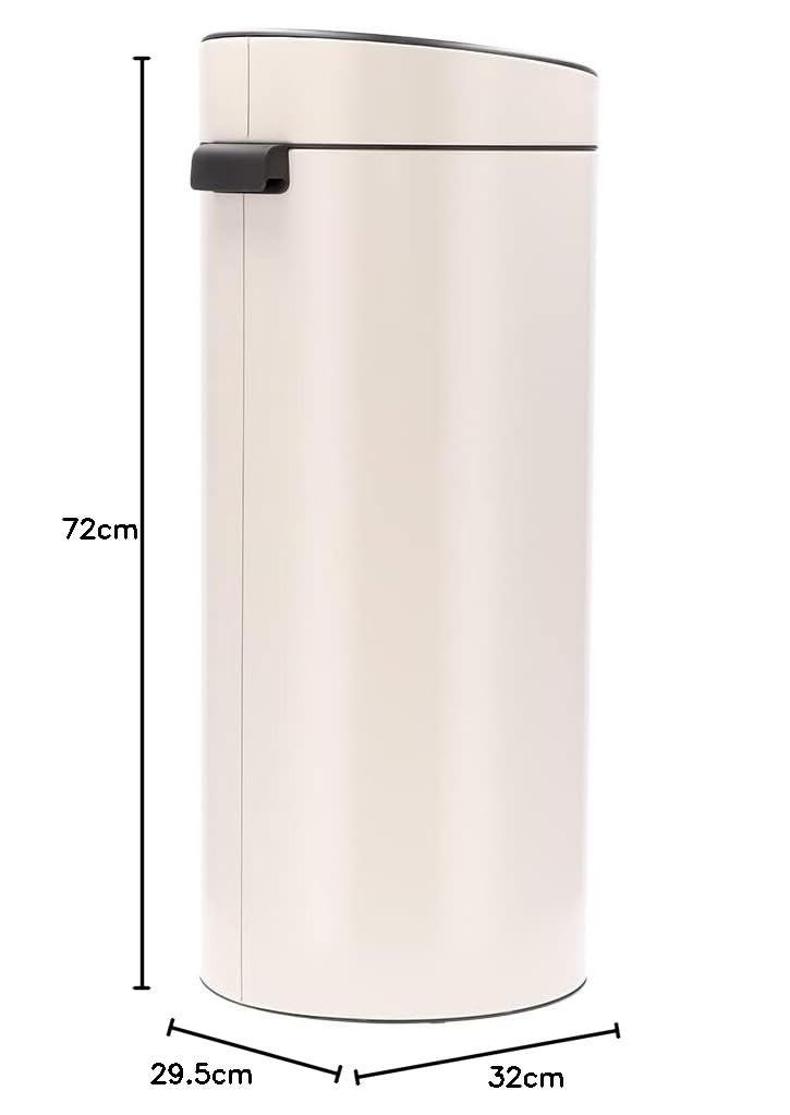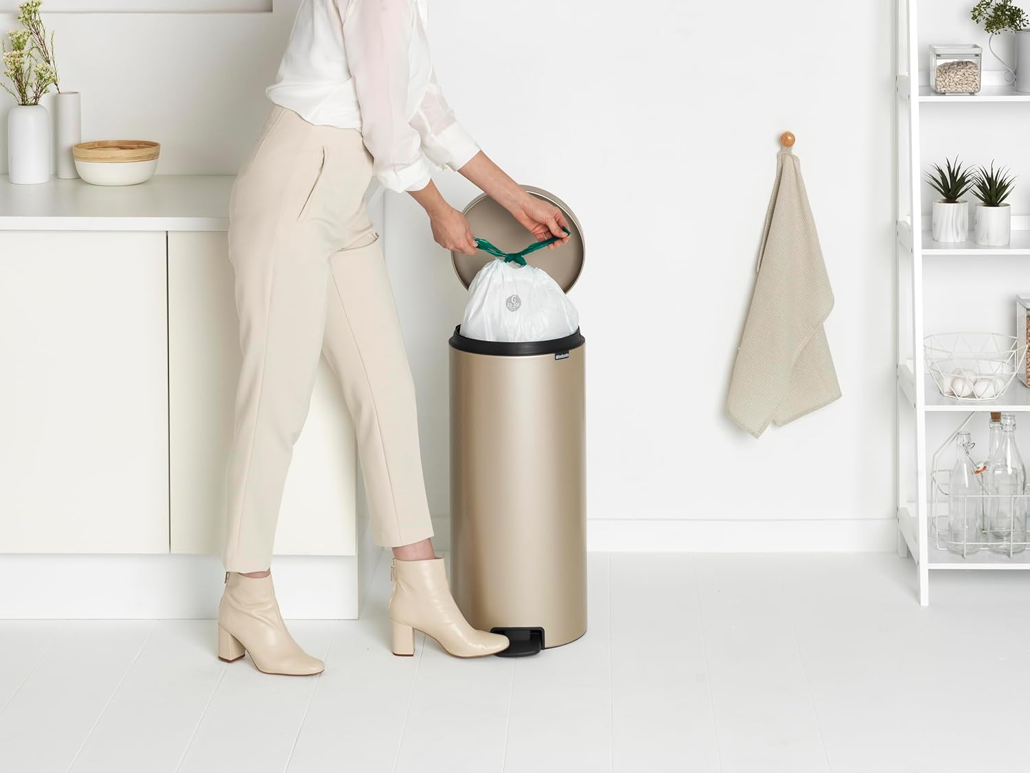 Brabantia 8 Gal Kitchen Touch Trash Can New (Soft Beige) Removable Lid, Soft-Touch Open, Garbage Can + Bags