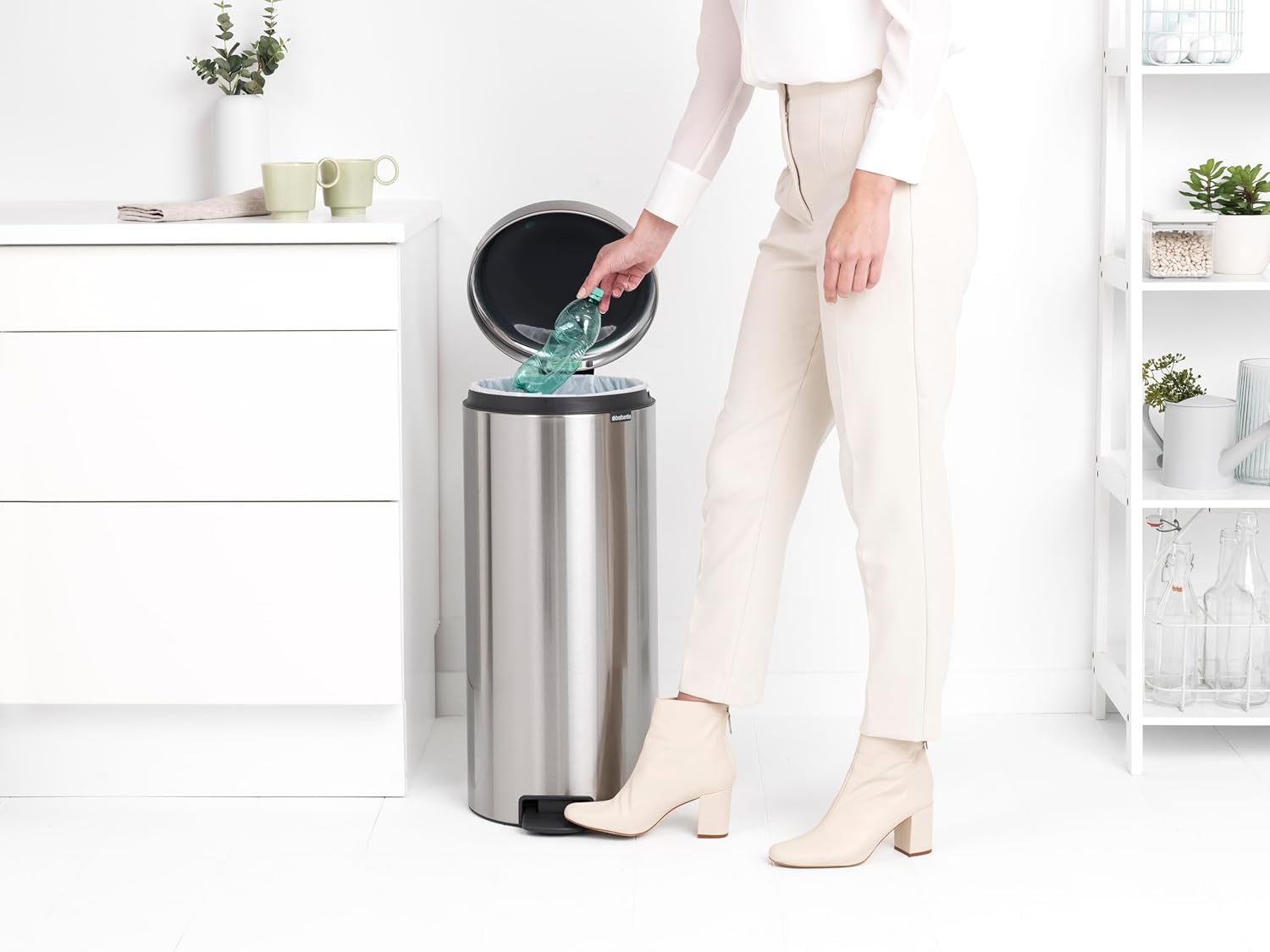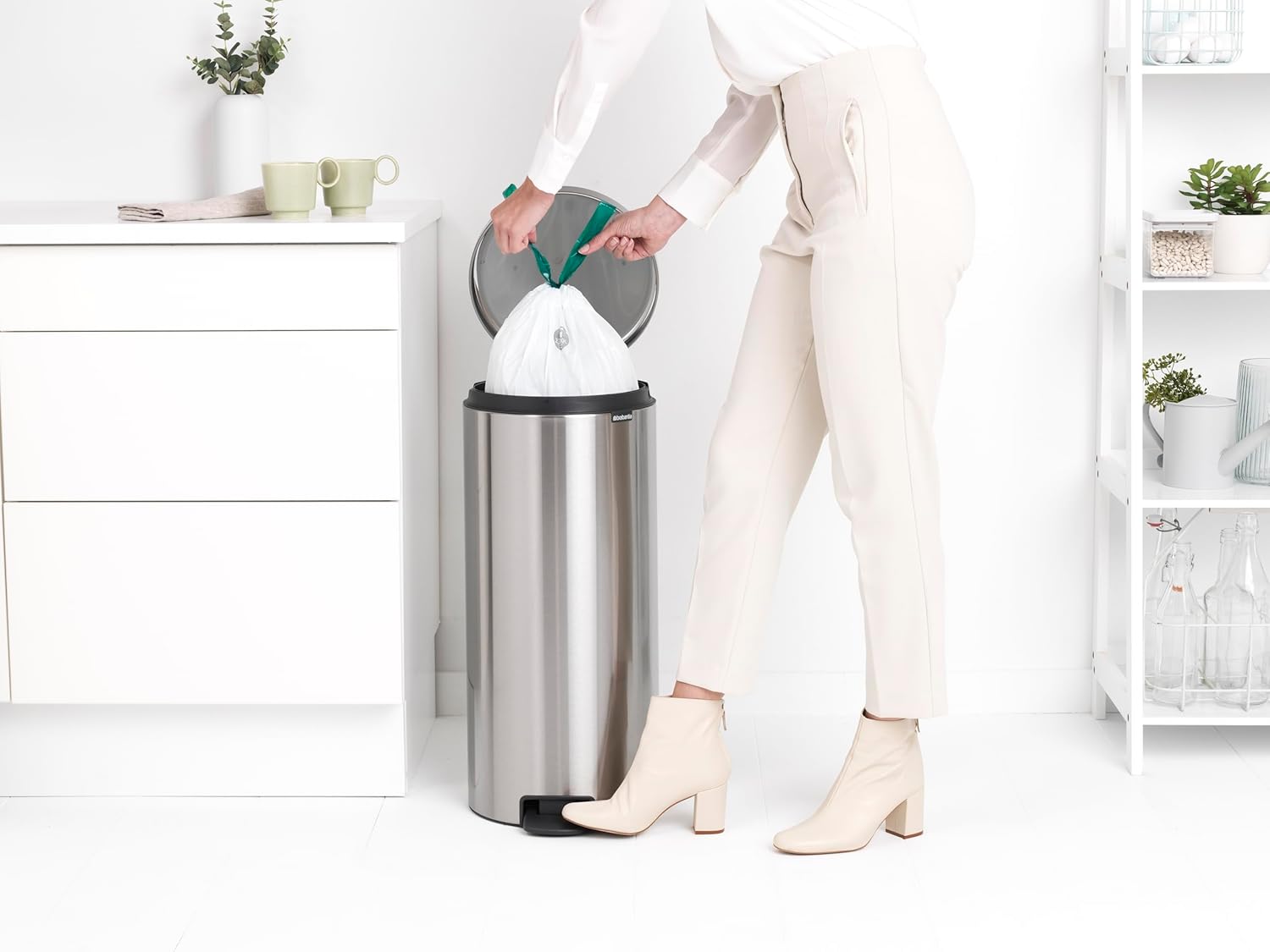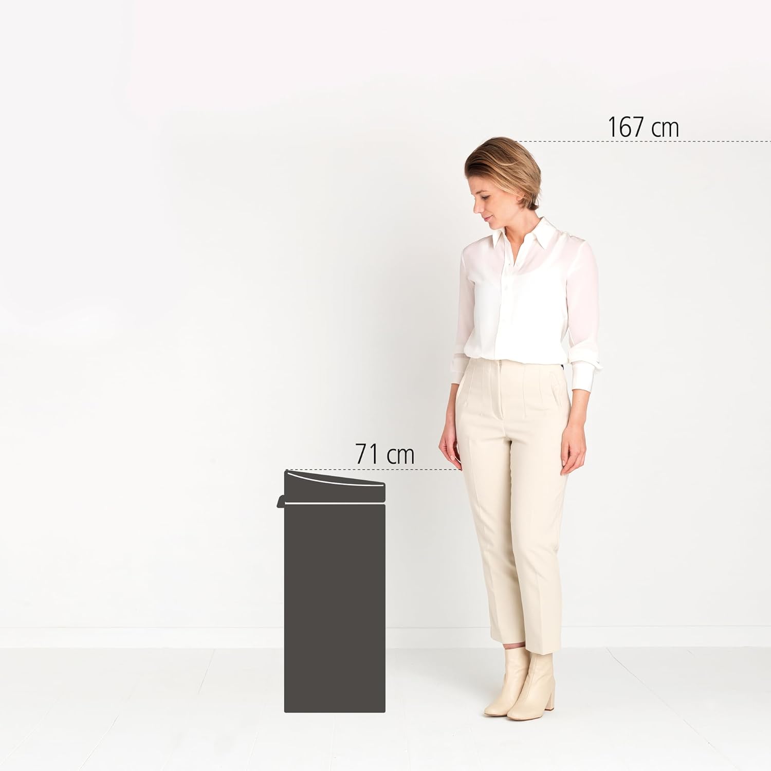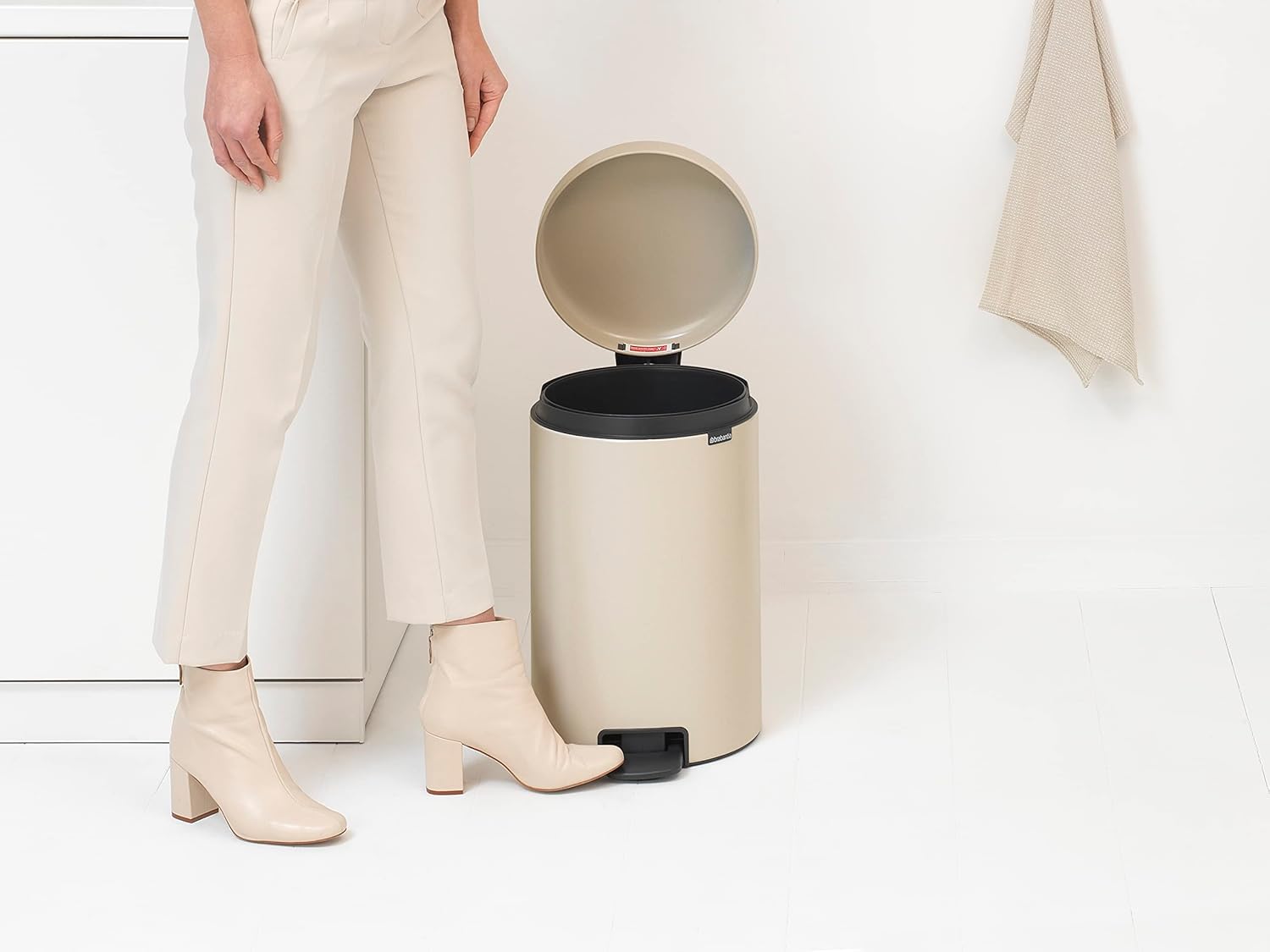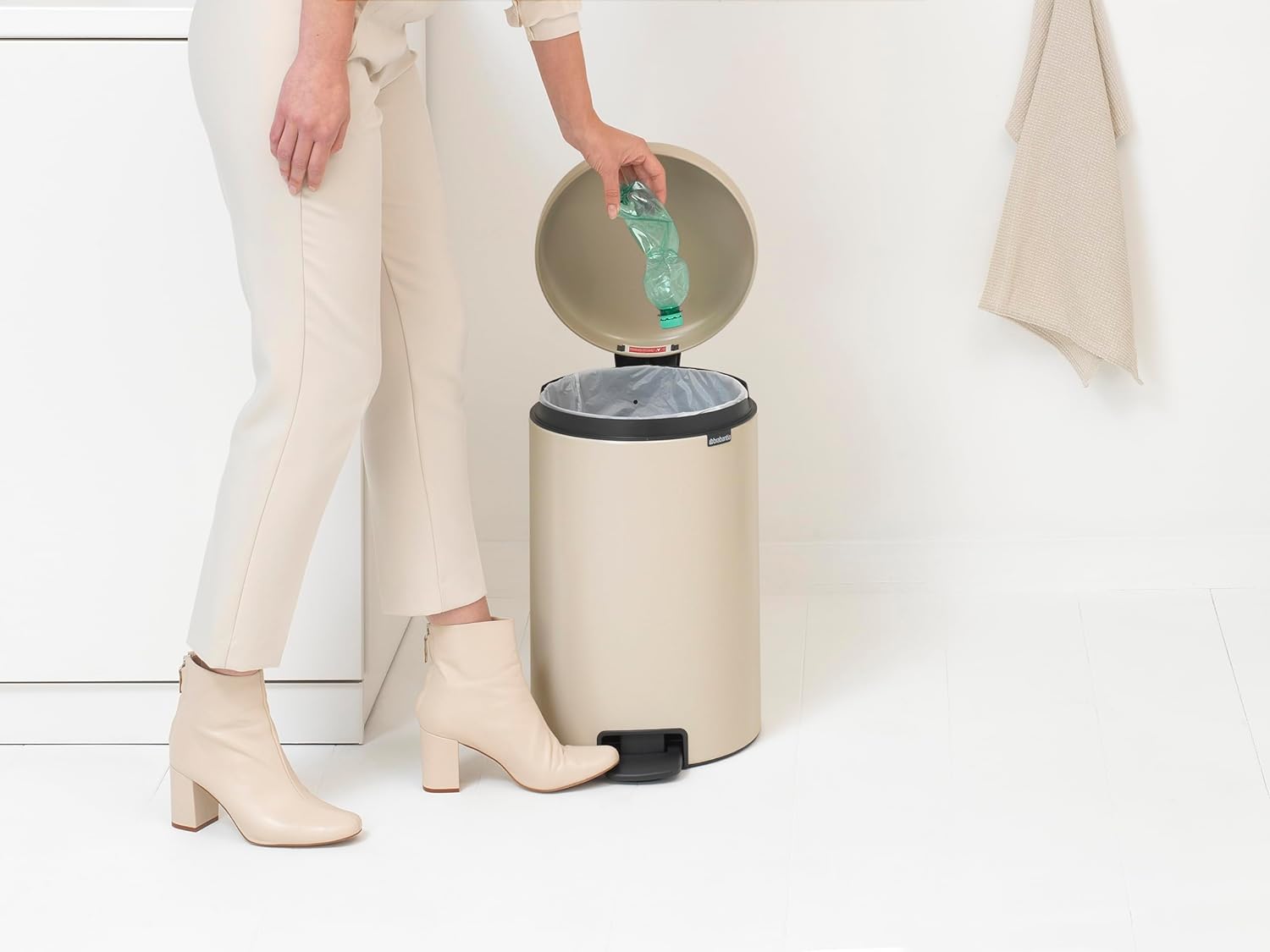 Brabantia 8 Gal Kitchen Touch Trash Can New (Soft Beige) Removable Lid, Soft-Touch Open, Garbage Can + Bags