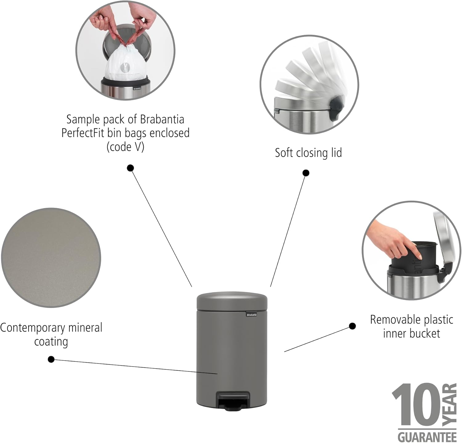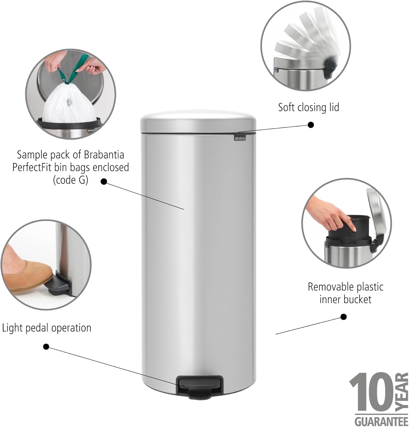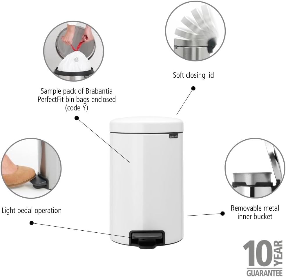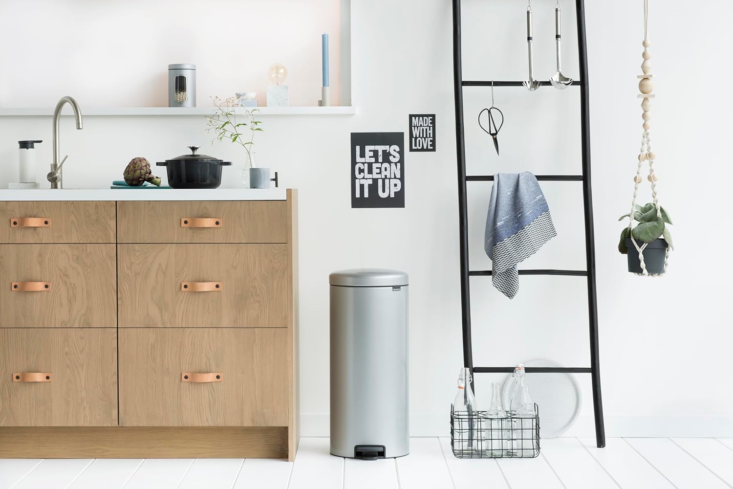Brabantia 8 Gal Kitchen Touch Trash Can New (Soft Beige) Removable Lid, Soft-Touch Open, Garbage Can + Bags