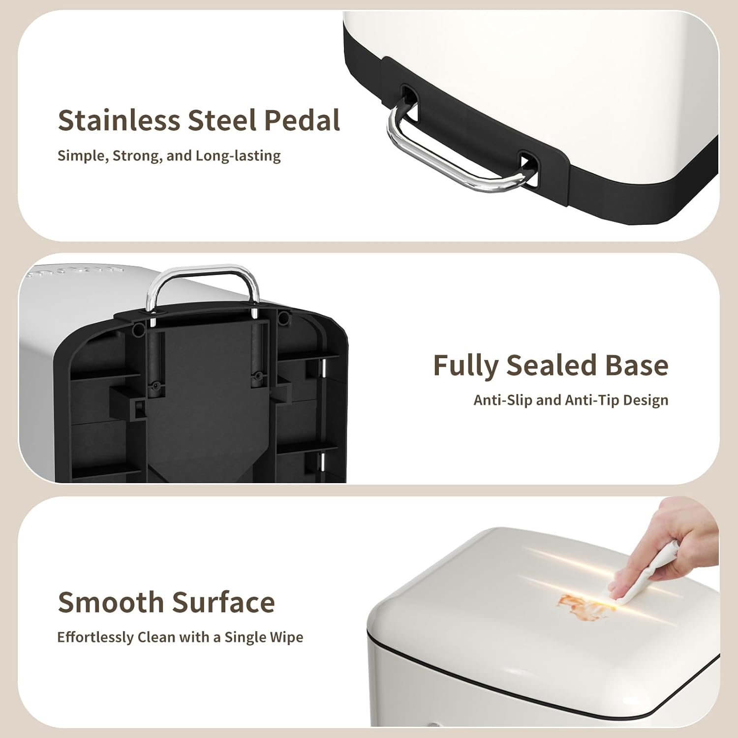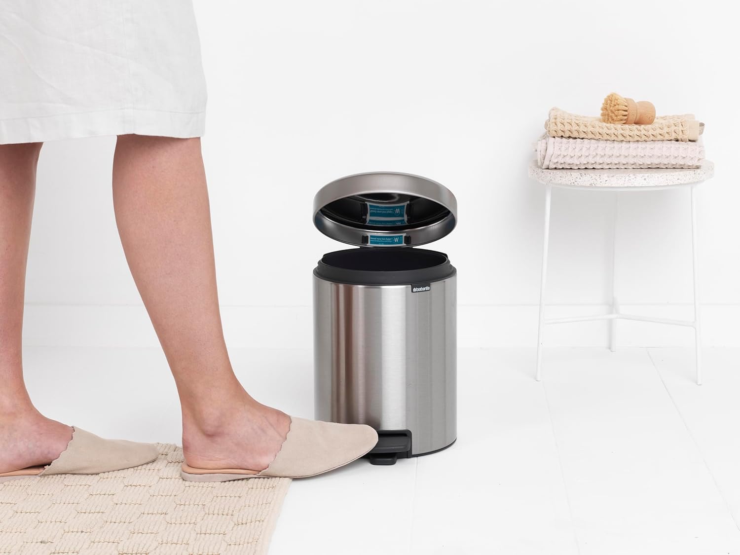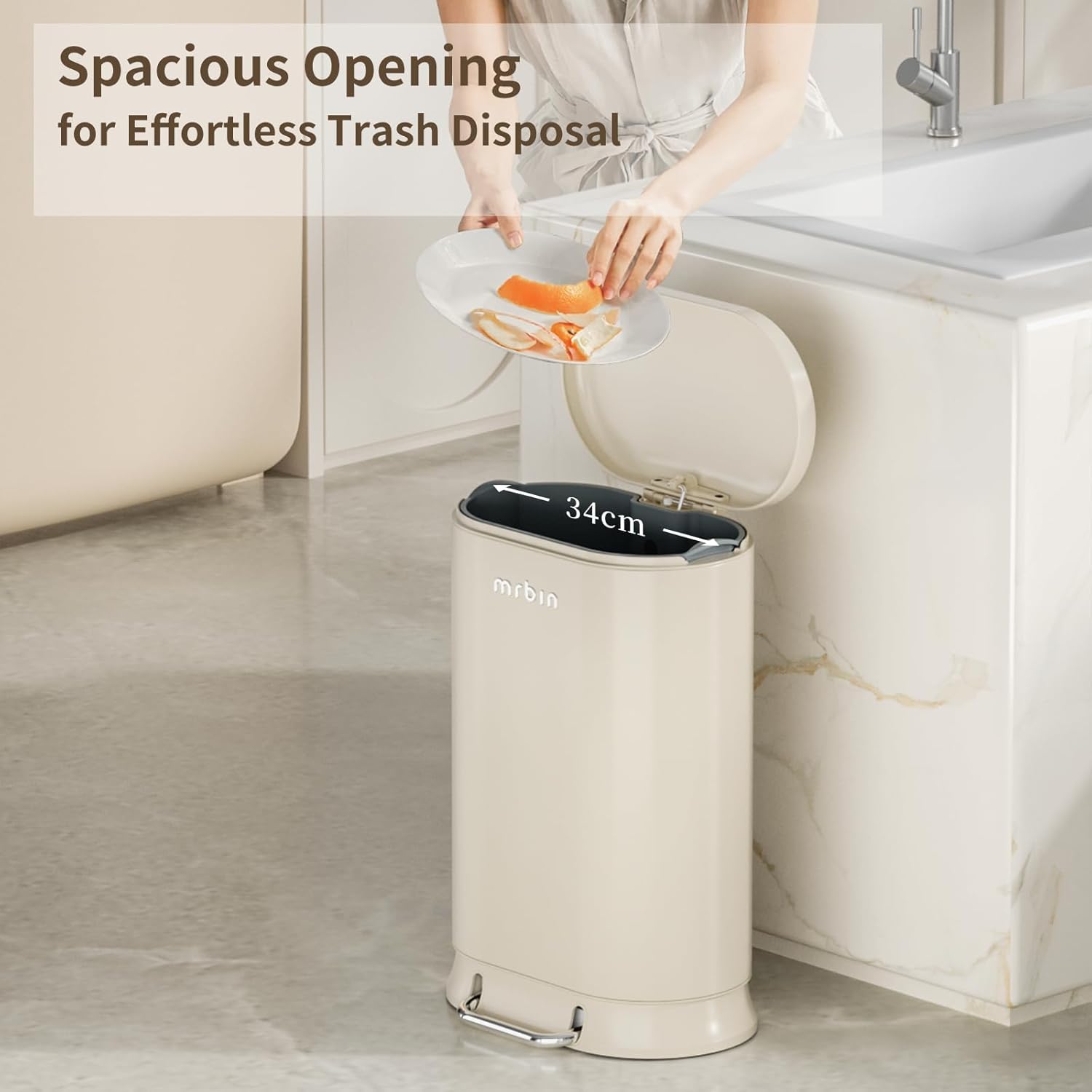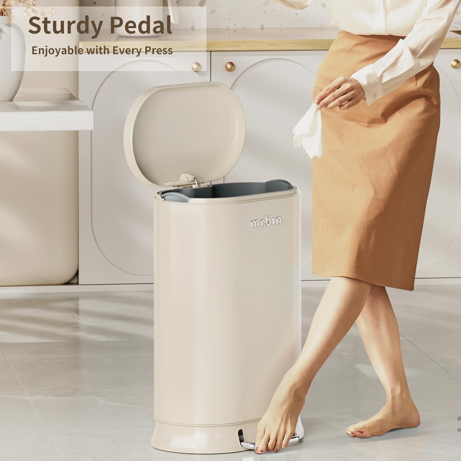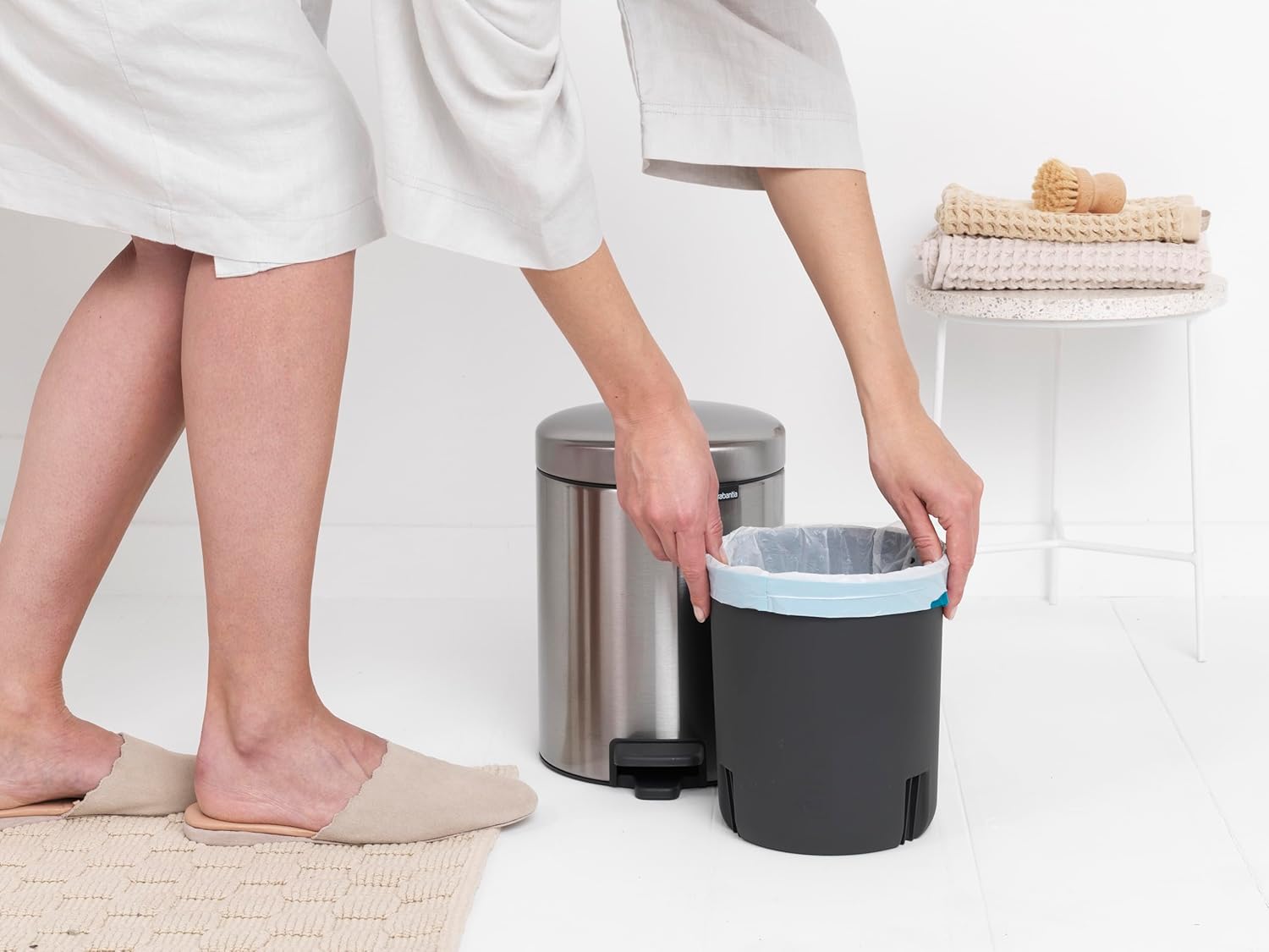 Brabantia 8 Gal Kitchen Touch Trash Can New (Soft Beige) Removable Lid, Soft-Touch Open, Garbage Can + Bags