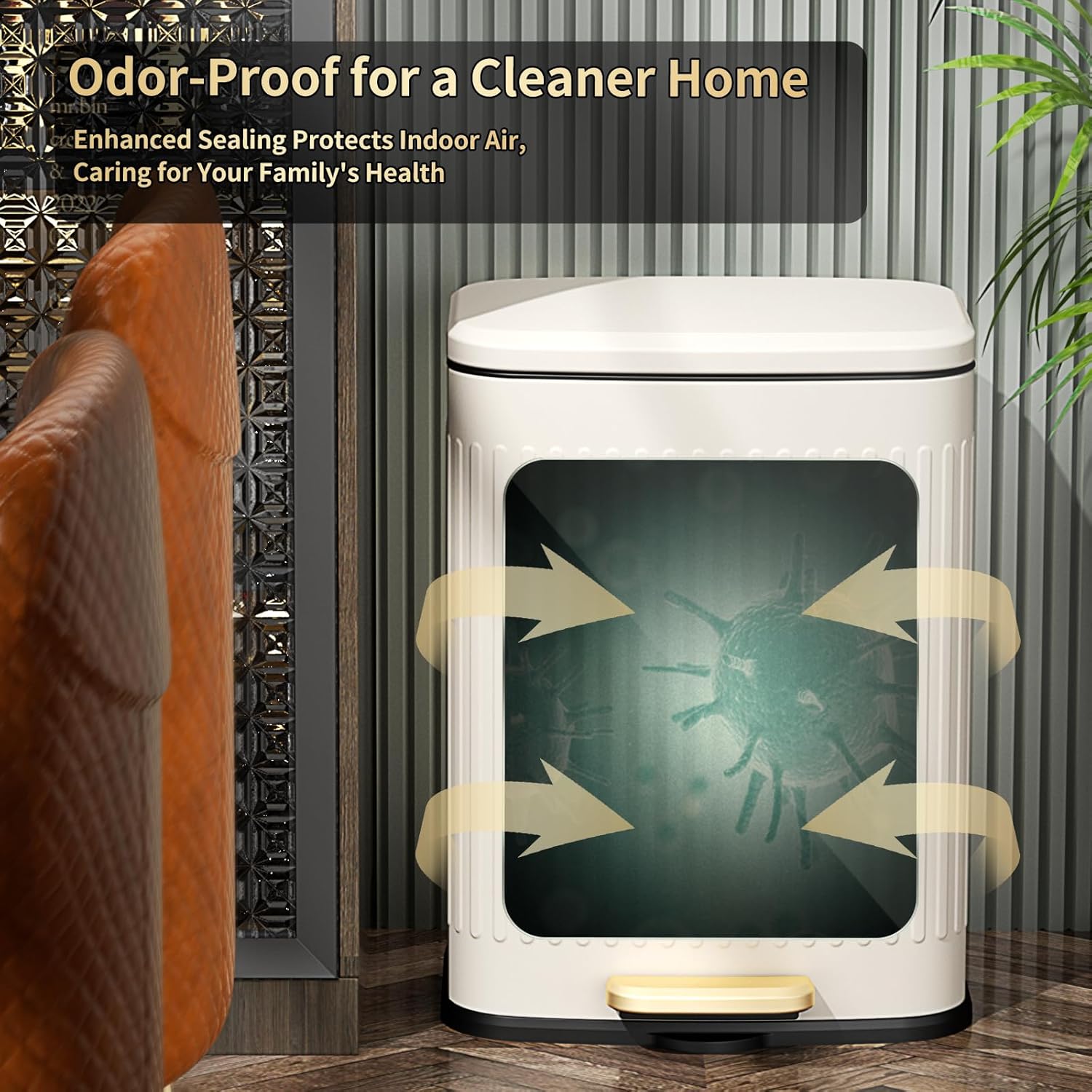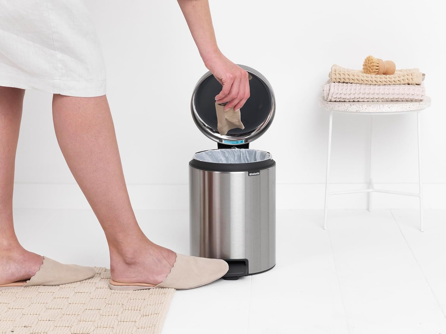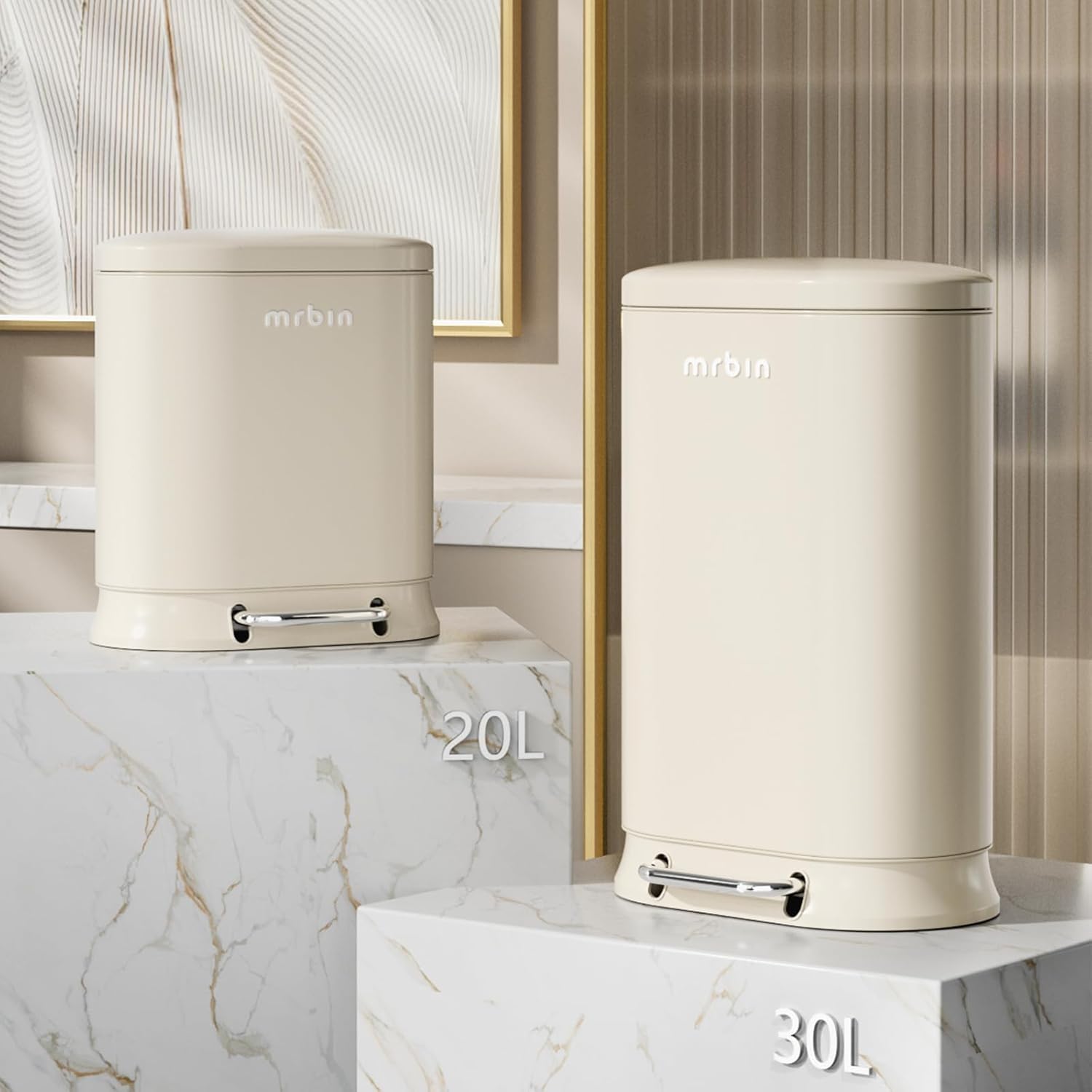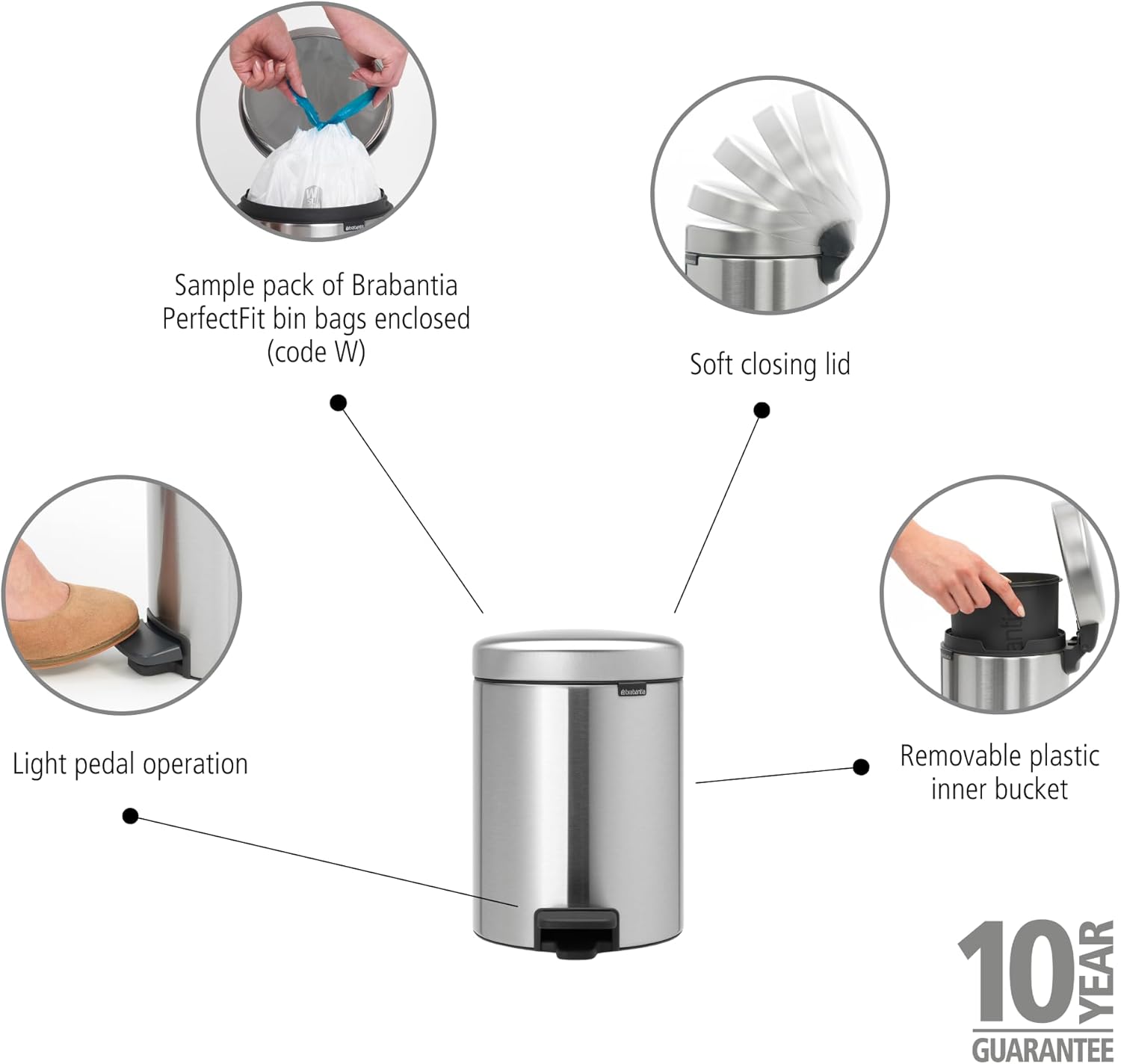 Brabantia 8 Gal Kitchen Touch Trash Can New (Soft Beige) Removable Lid, Soft-Touch Open, Garbage Can + Bags