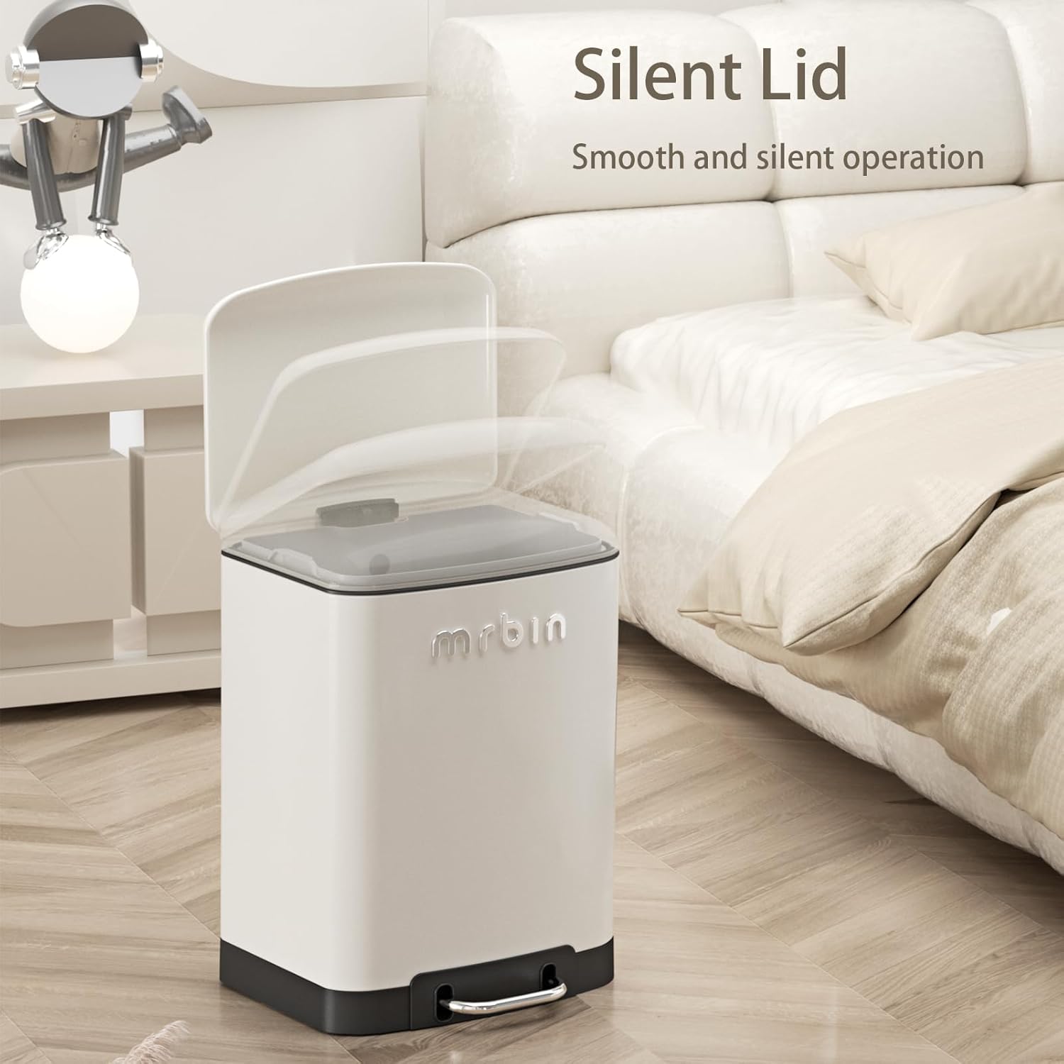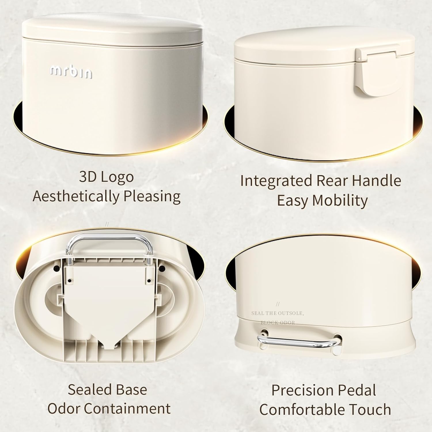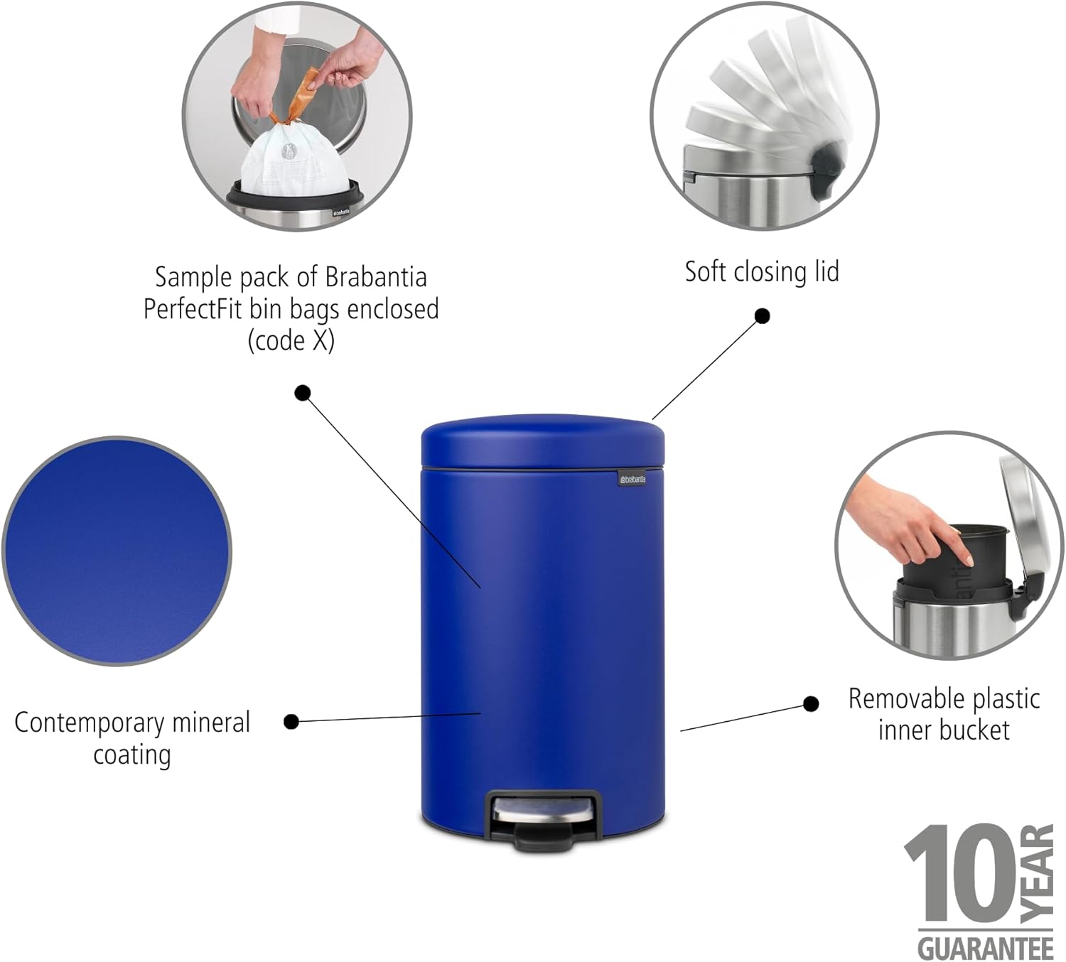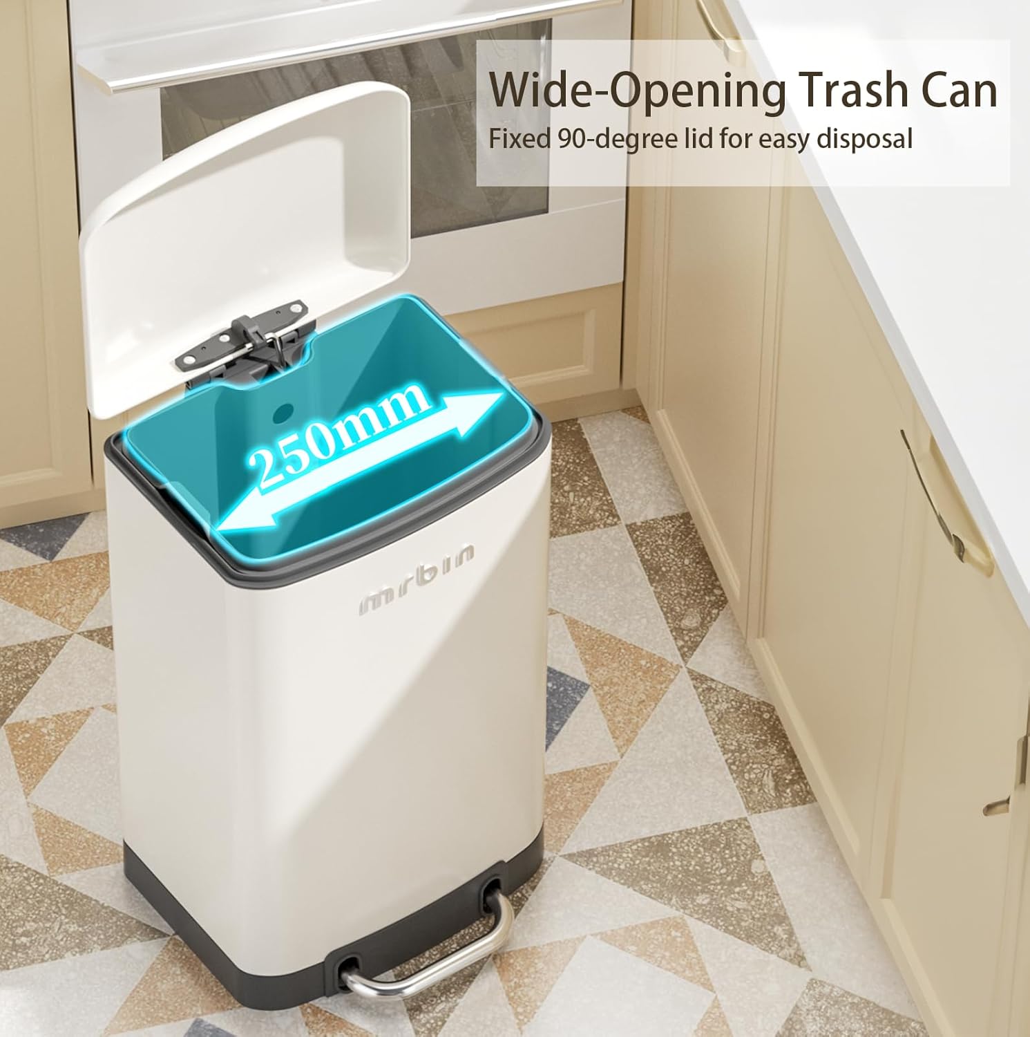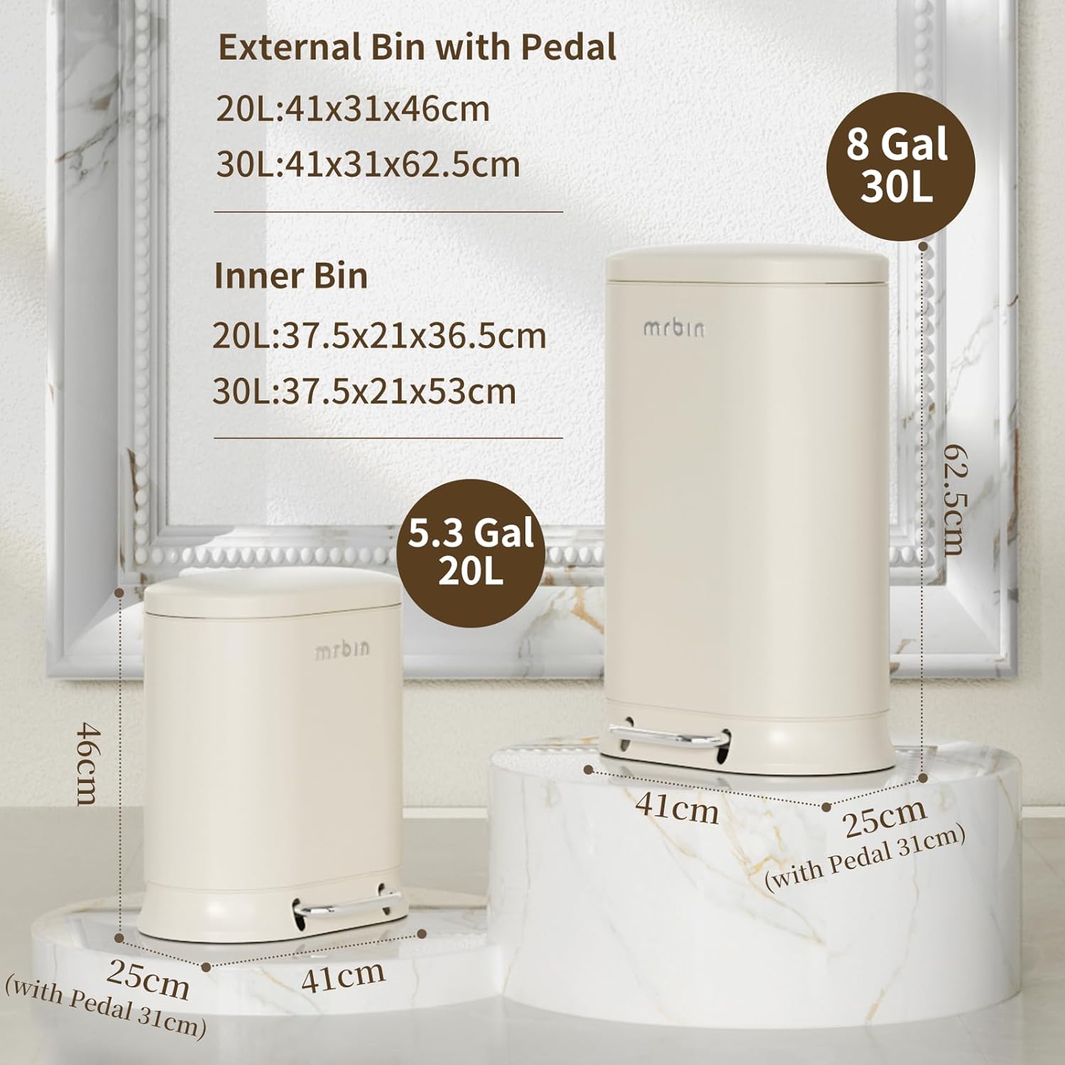 Brabantia 8 Gal Kitchen Touch Trash Can New (Soft Beige) Removable Lid, Soft-Touch Open, Garbage Can + Bags