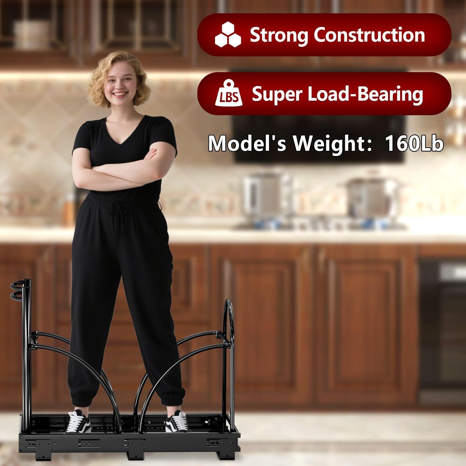 Dual Under Sink Trash Can Heavy Duty Pull Out Trash Can Under Cabinet, Fits 2x35Qt (7-9 Gal) Commercial Trash Cans Cabinet Trash Bin Pull Out Kit Requires ≥ 22''Dx 16''Wx 17''H, No Can (Silver)