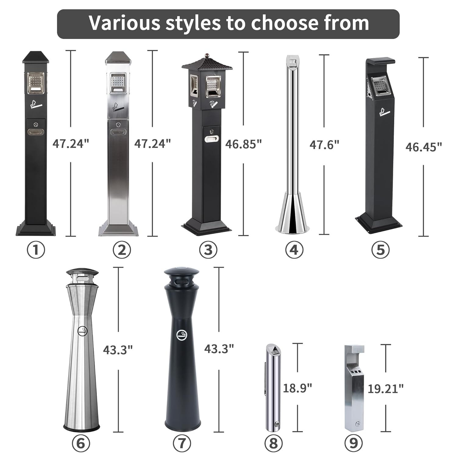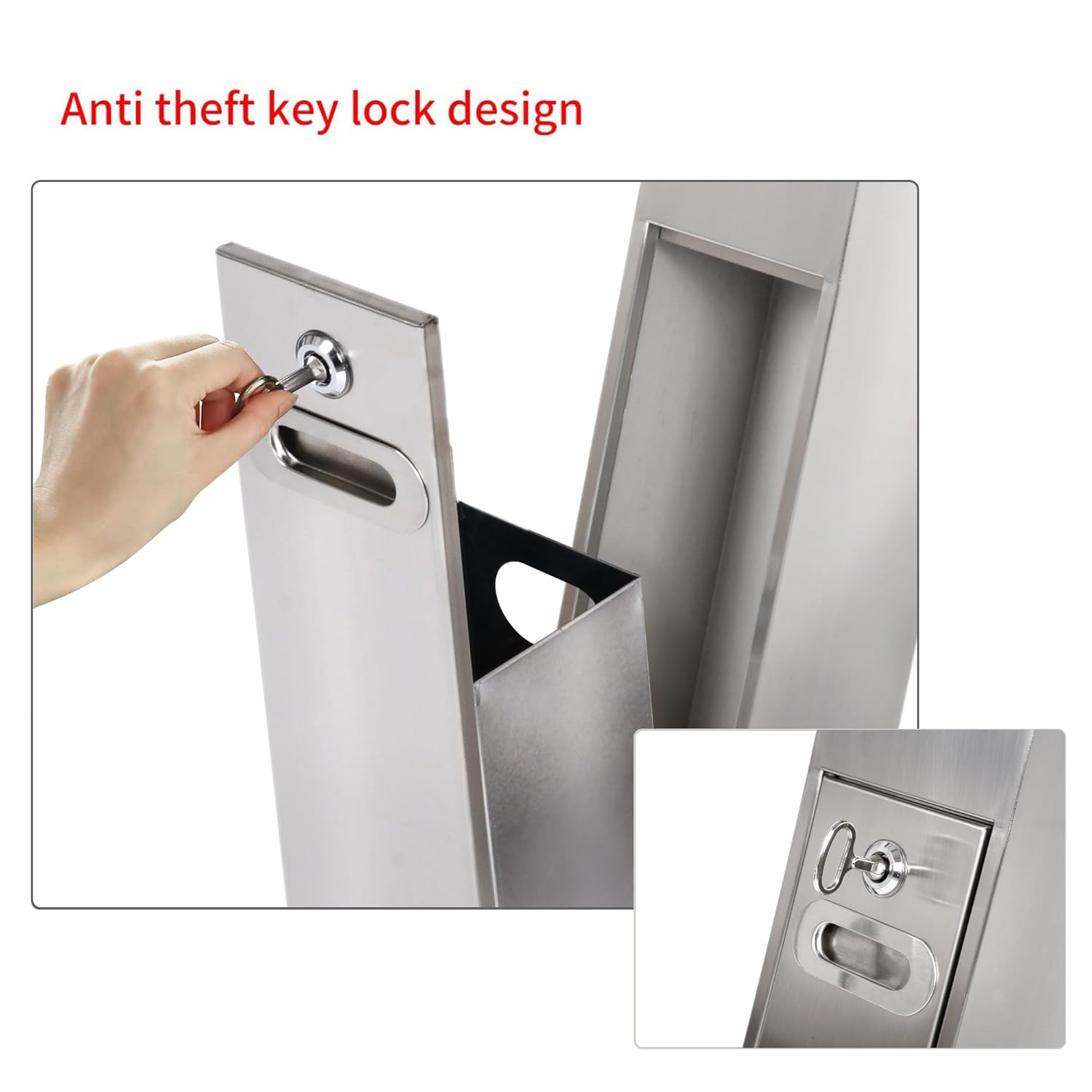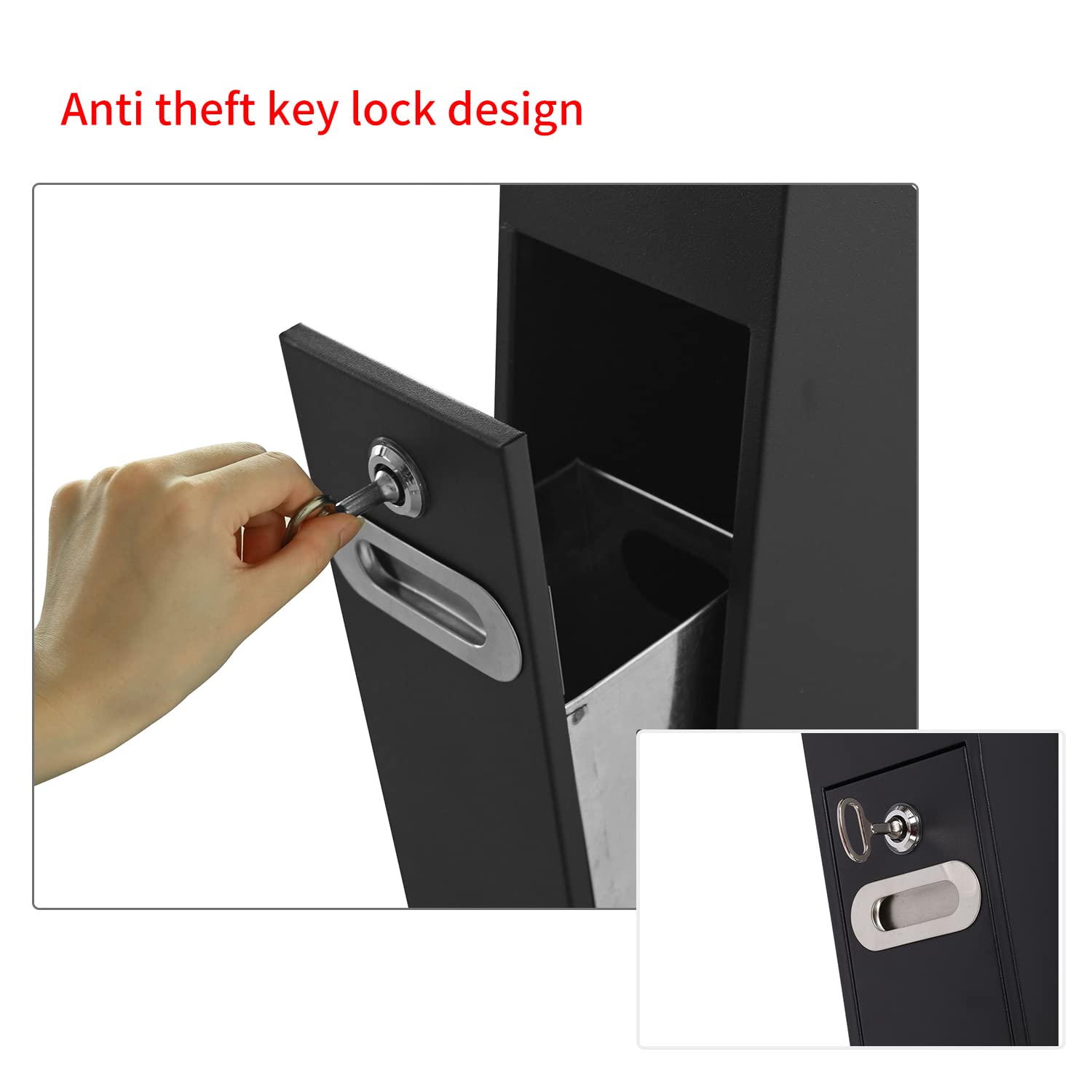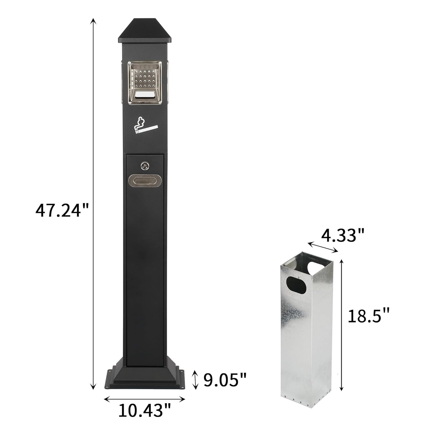 Commercial Butt Receptacles, Vertical Trash Bin, Lockable Design, All-Metal Bulid, w/Removable Inner Bucket Fits Park, Pubs and Home(36.22" Tall)