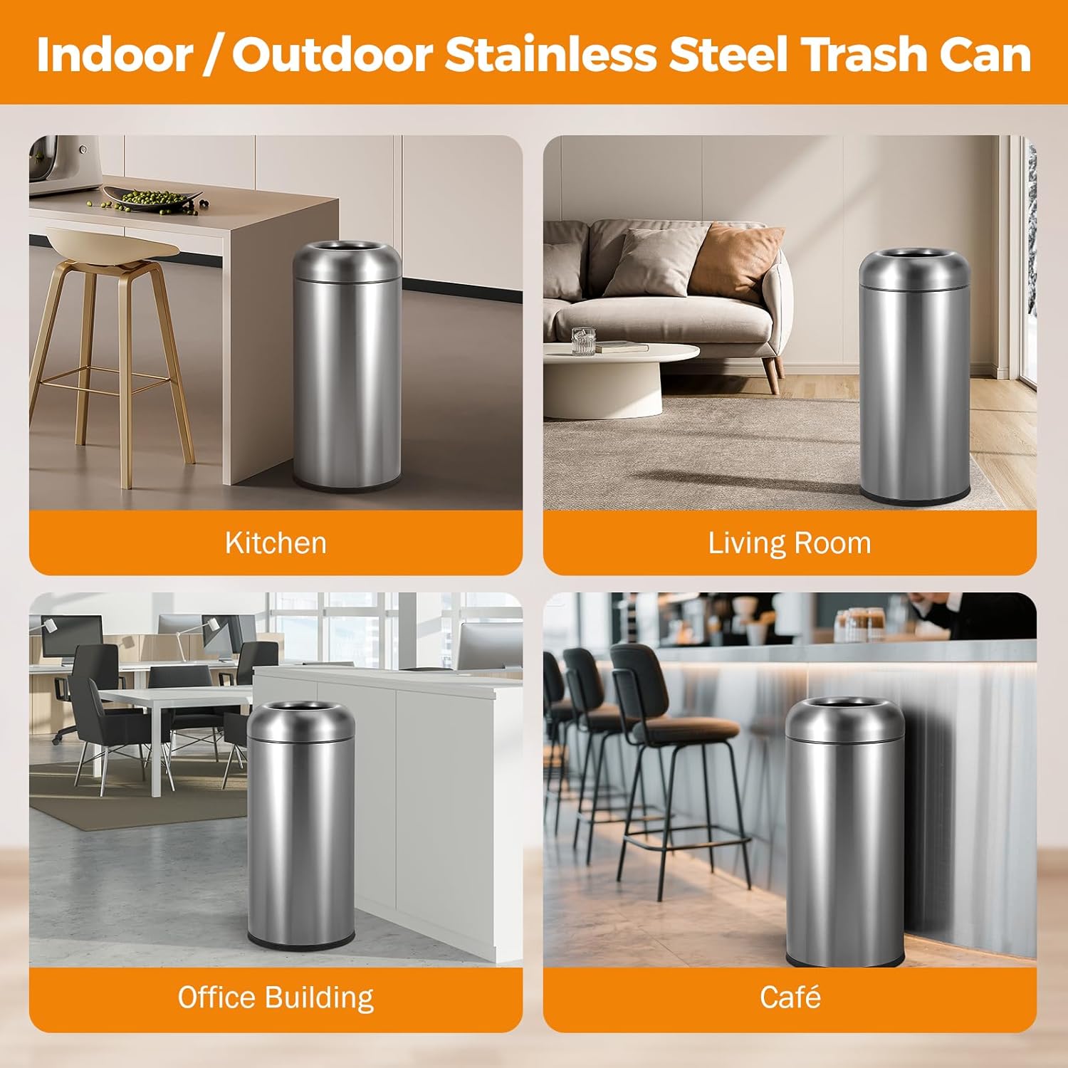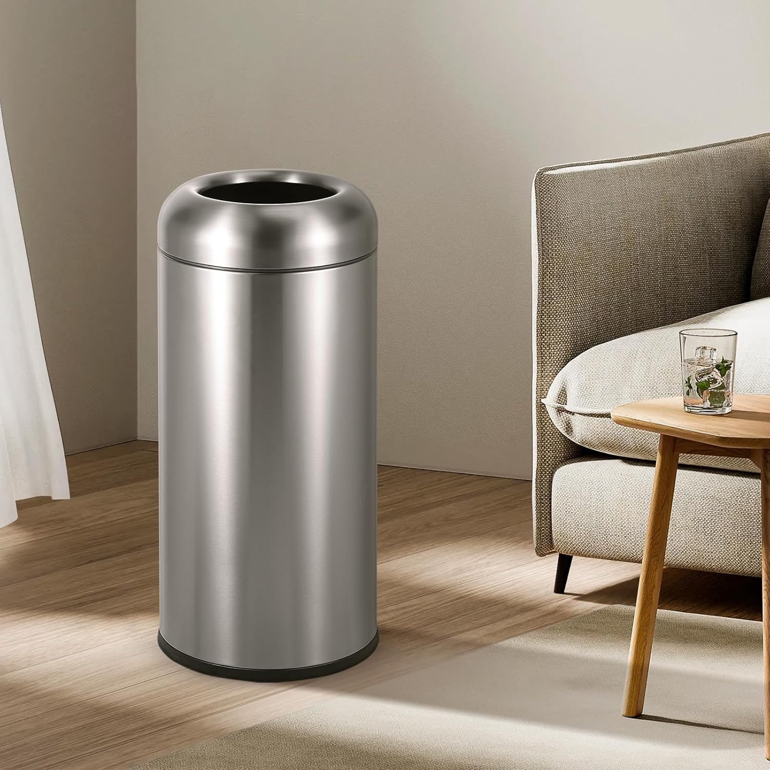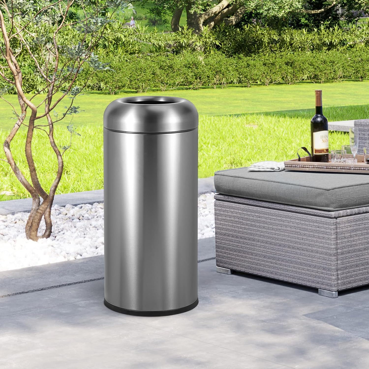 65L/17 Gallon Heavy Duty Stainless Steel Tall Commercial/Kitchen Trash Can, Round Open Top Waste Bin for Indoor and Outdoor, Durable Garbage Bin for Home Office Restaurant
