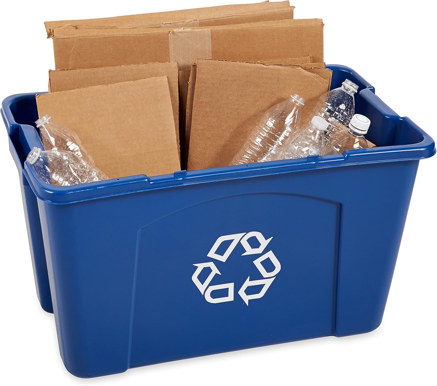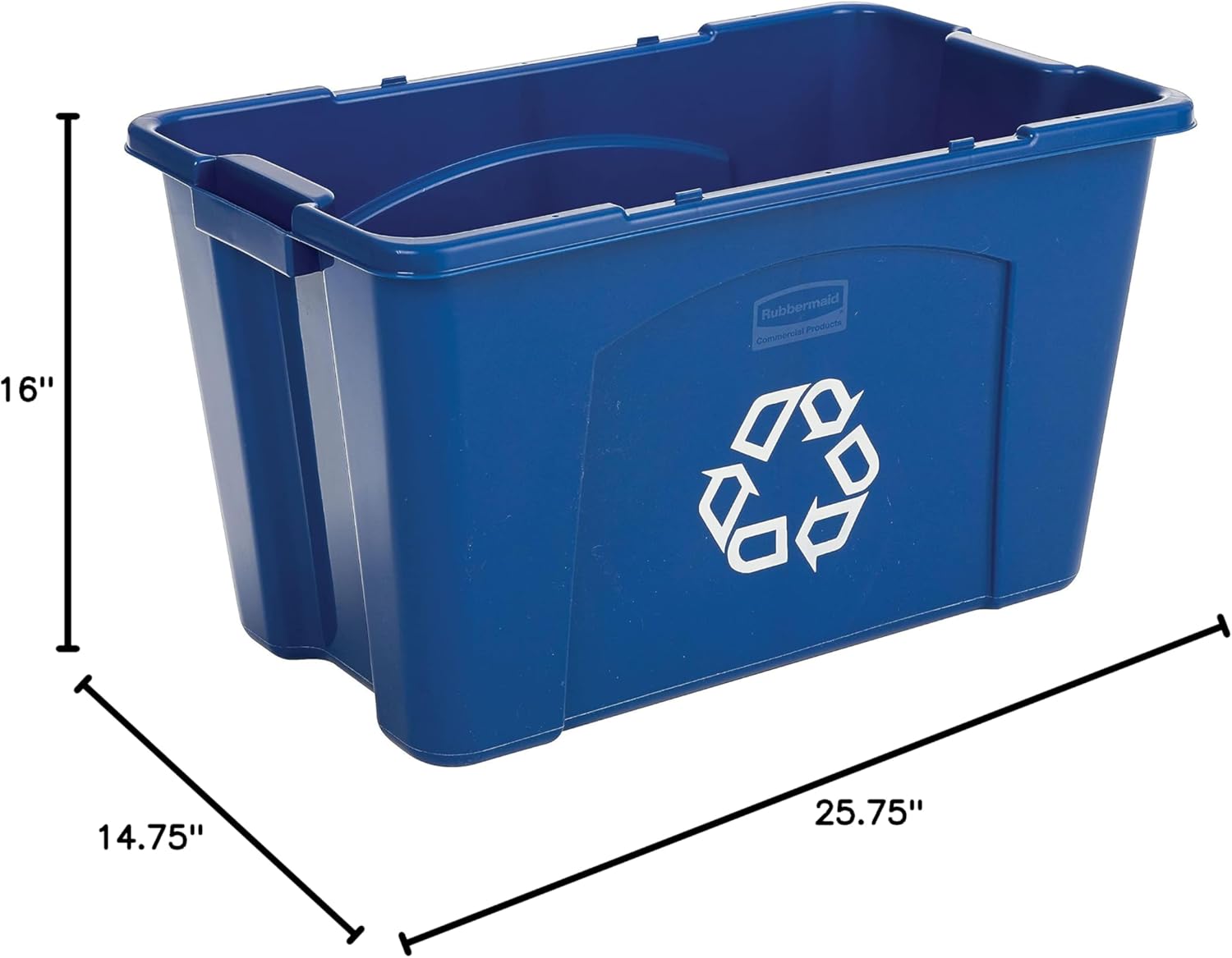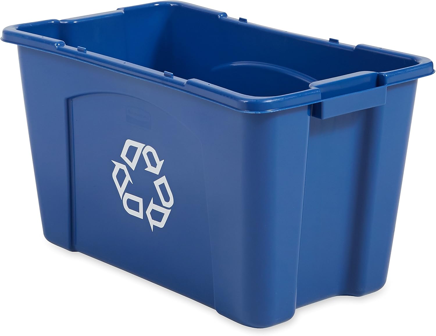 Rubbermaid Commercial Products Stackable Recycling Bin, 18 Gallon, Blue Storage Container, For Garage/Kitchen use for Boxes/Paper Recycle (Pack of 6)