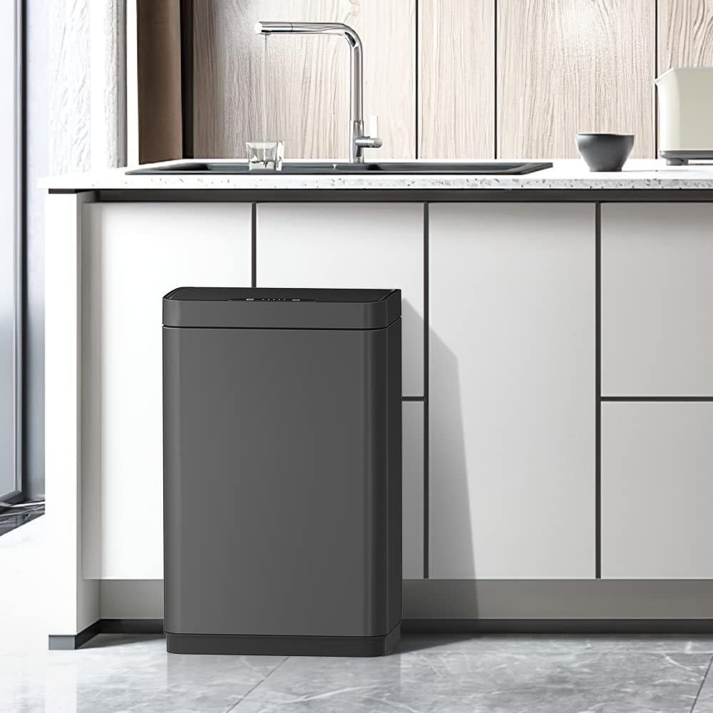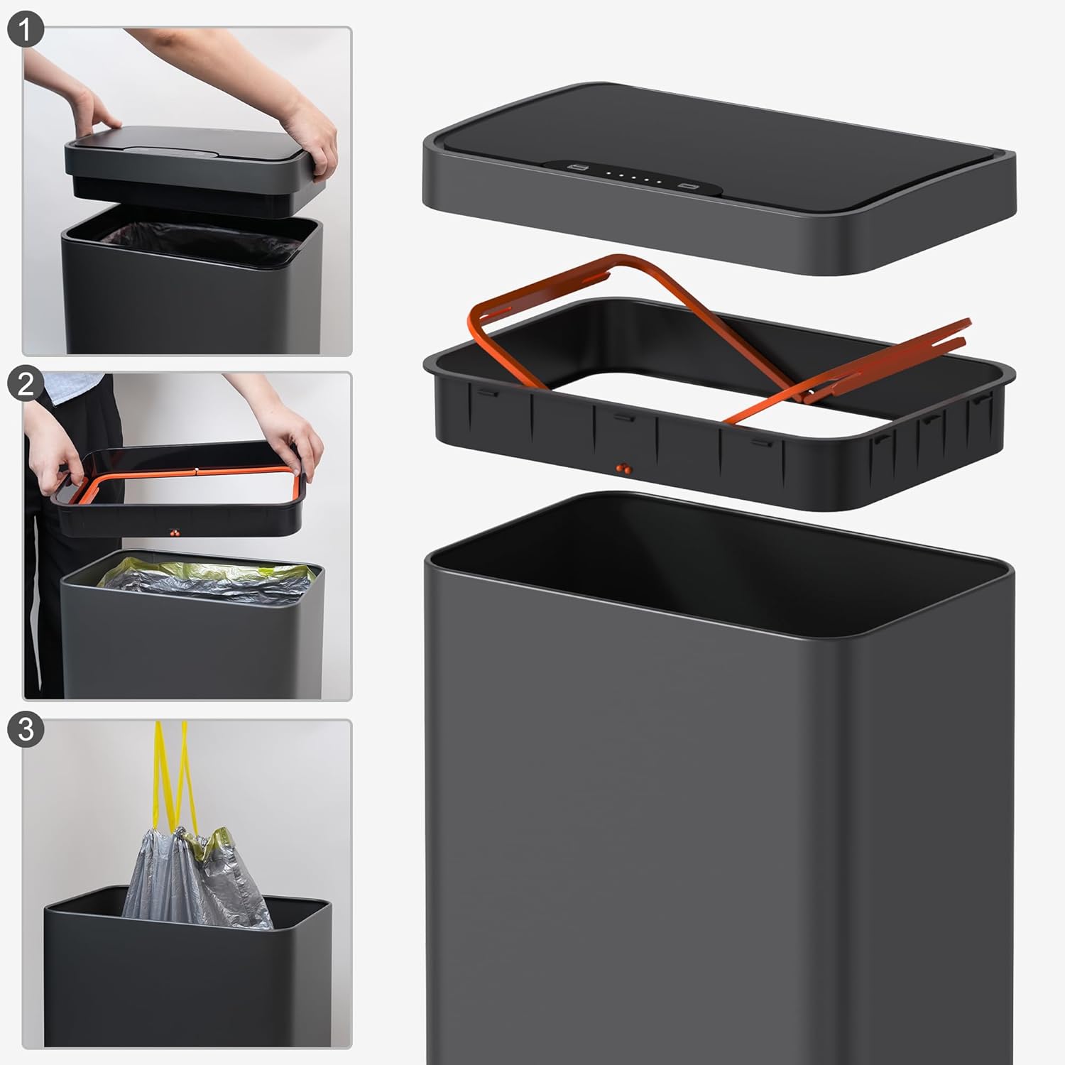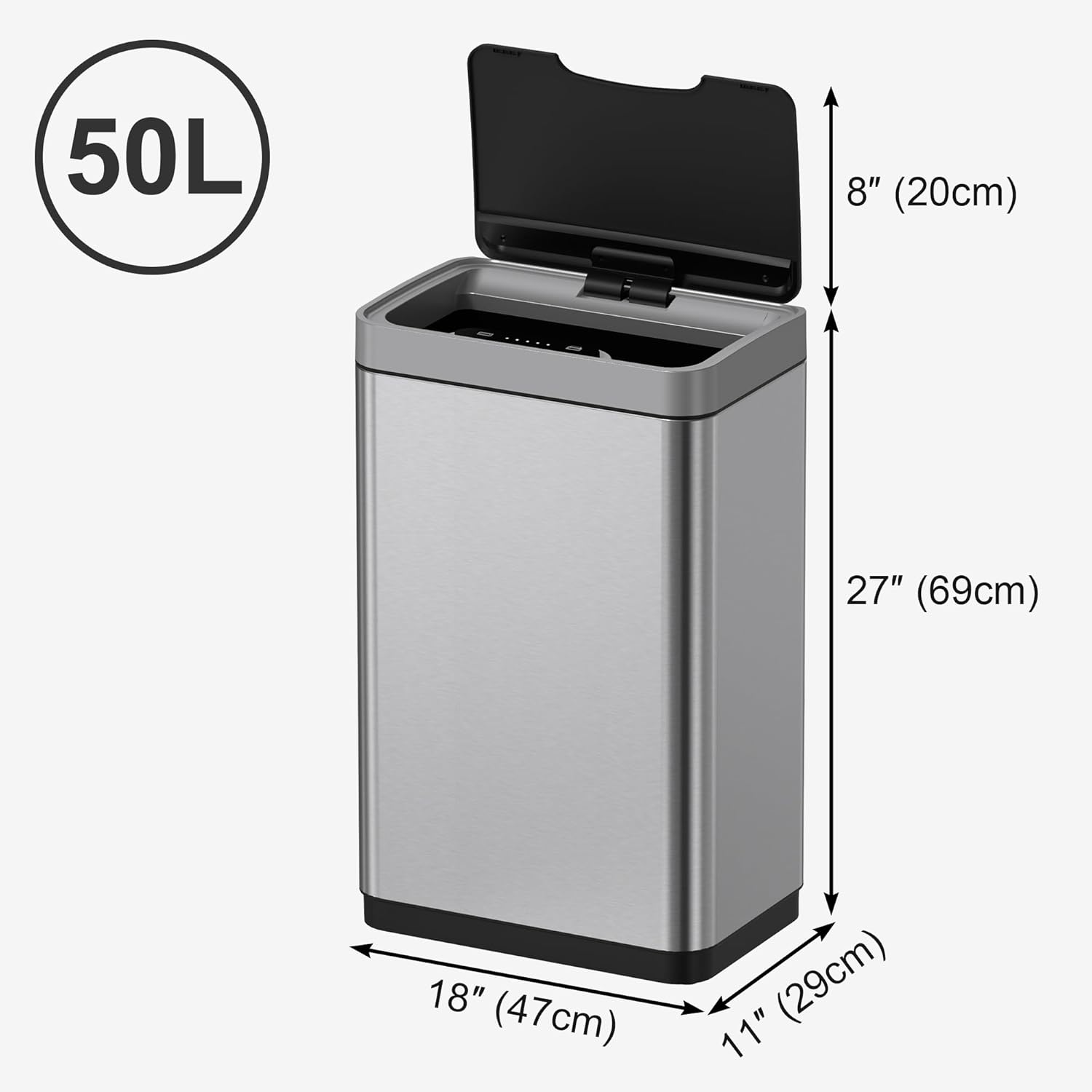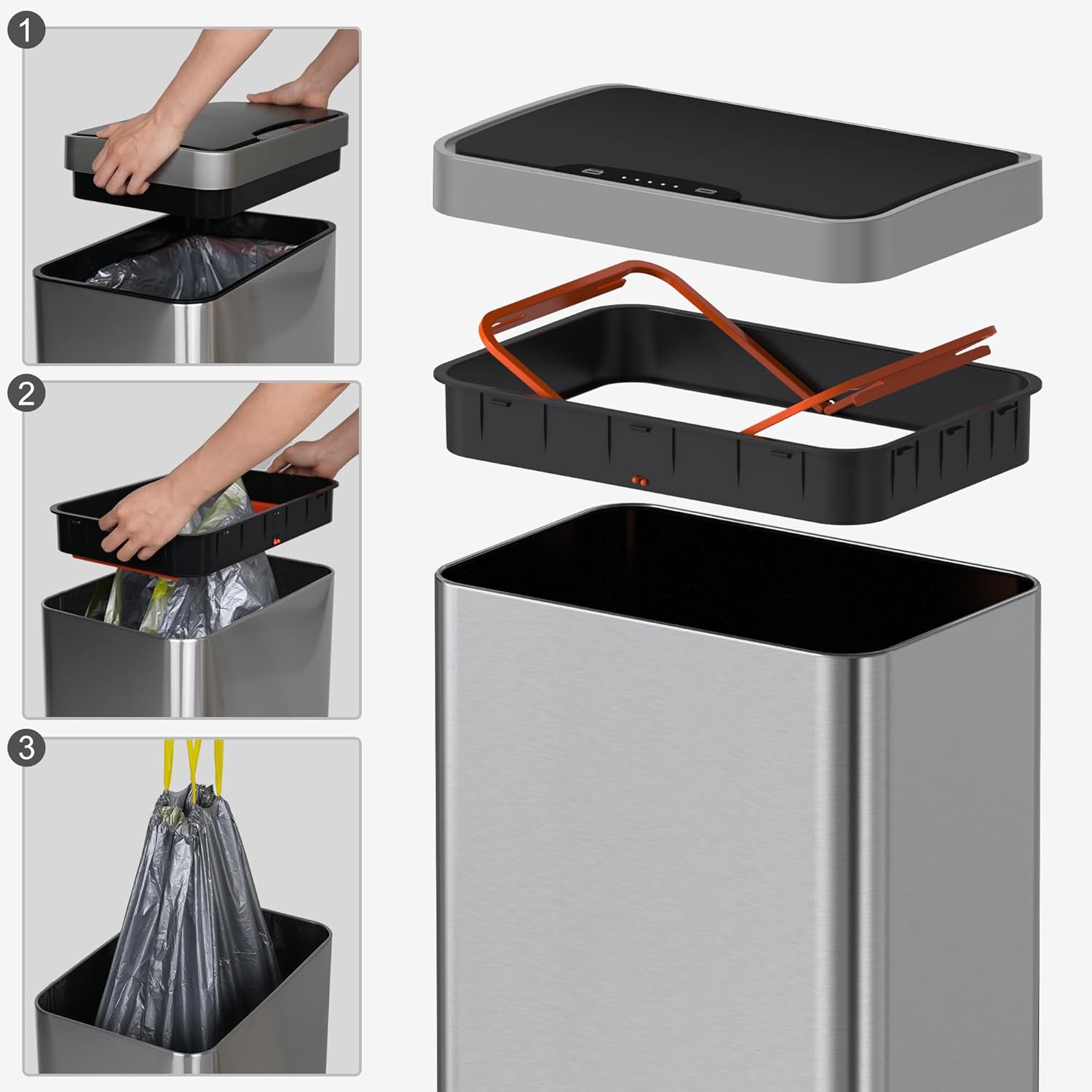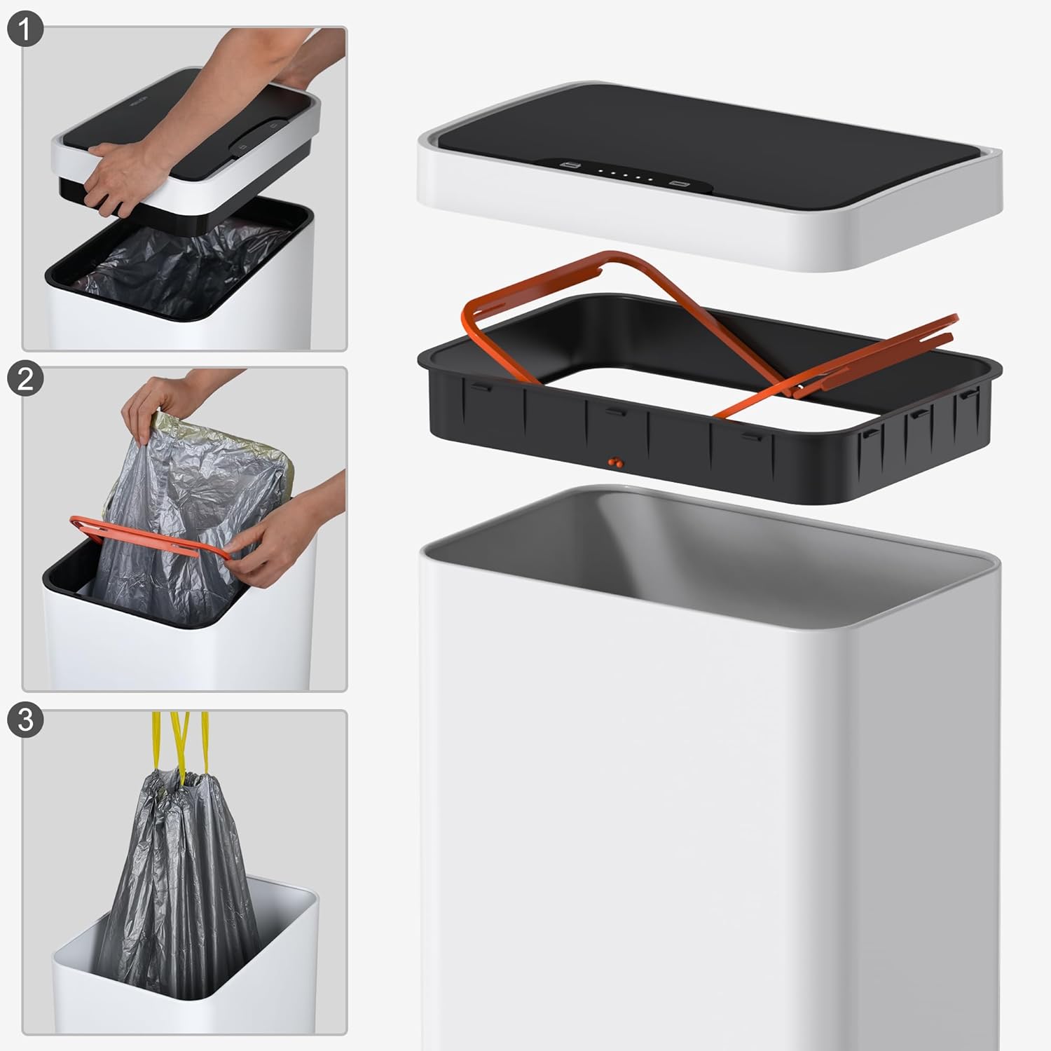 Mbillion Automatic Trash Can Touchless 15 Gallon Motion Sensor Trash Can Stainless Steel Smart Trash Cans with Lid Rectangular Touchless Garbage Can for Kitchen Bedroom Home Office White