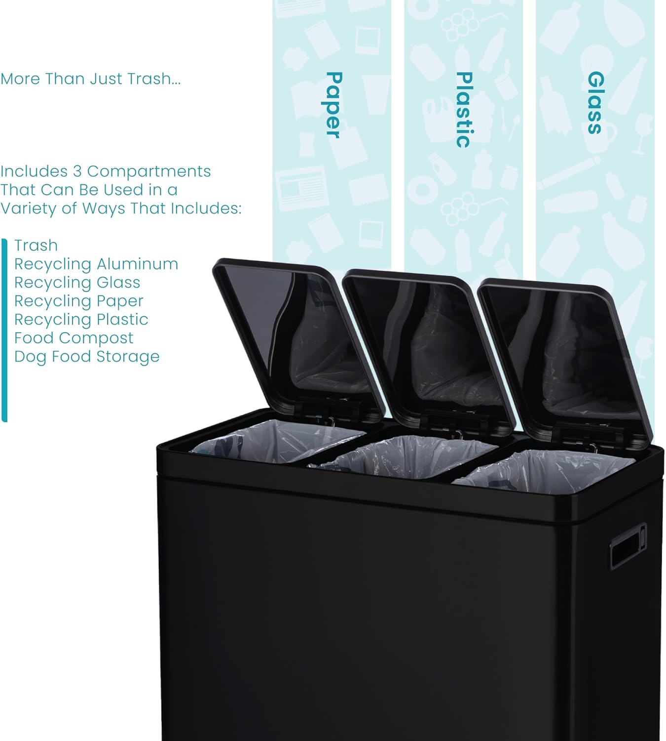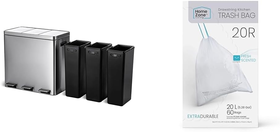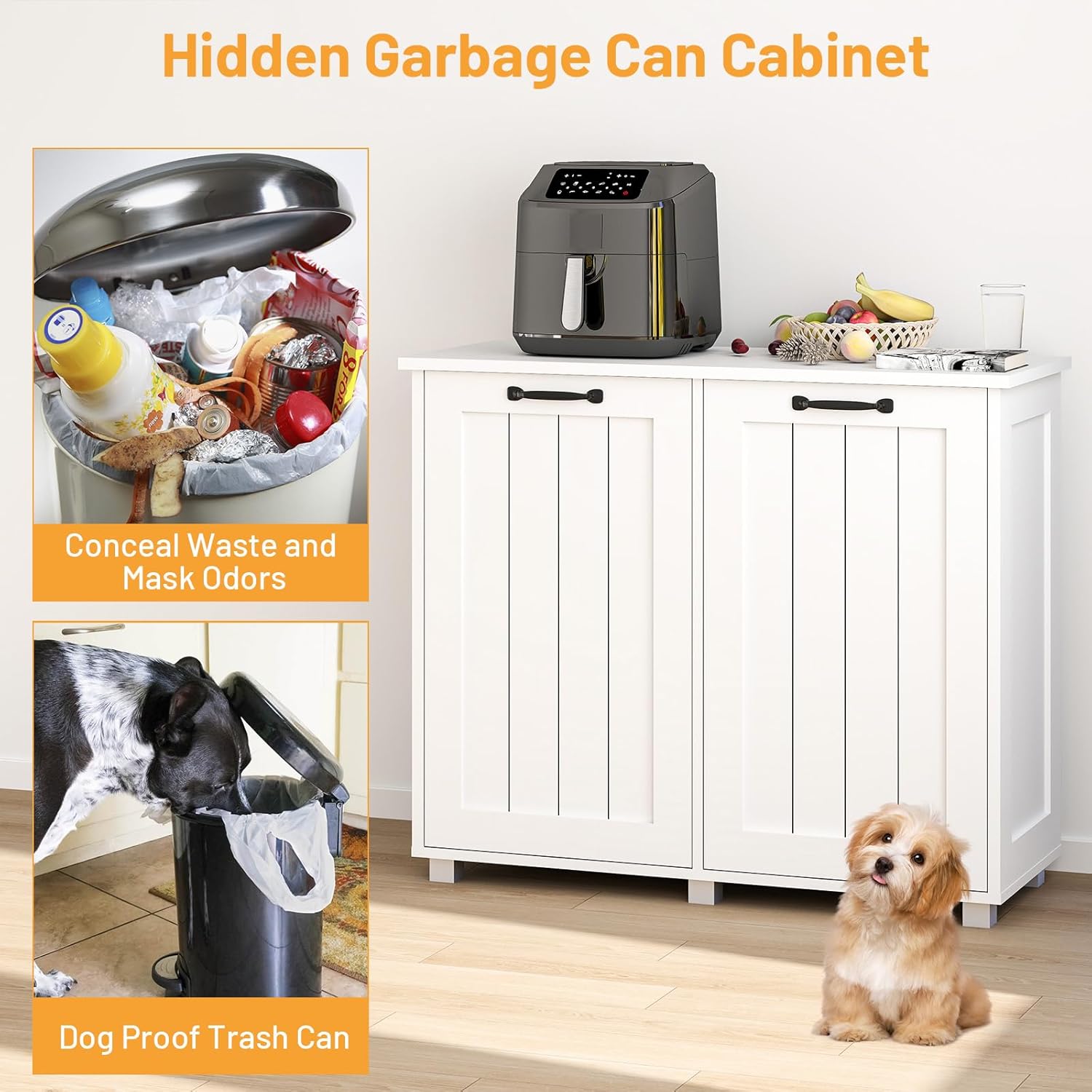 Rovibek Double White Tilt Out Trash Can Cabinet 20 Gallon - Multifunctional Double Trash Can Kitchen Cabinet, Wooden Garbage Can Cabinet for Kitchen, Bathroom and Living Room