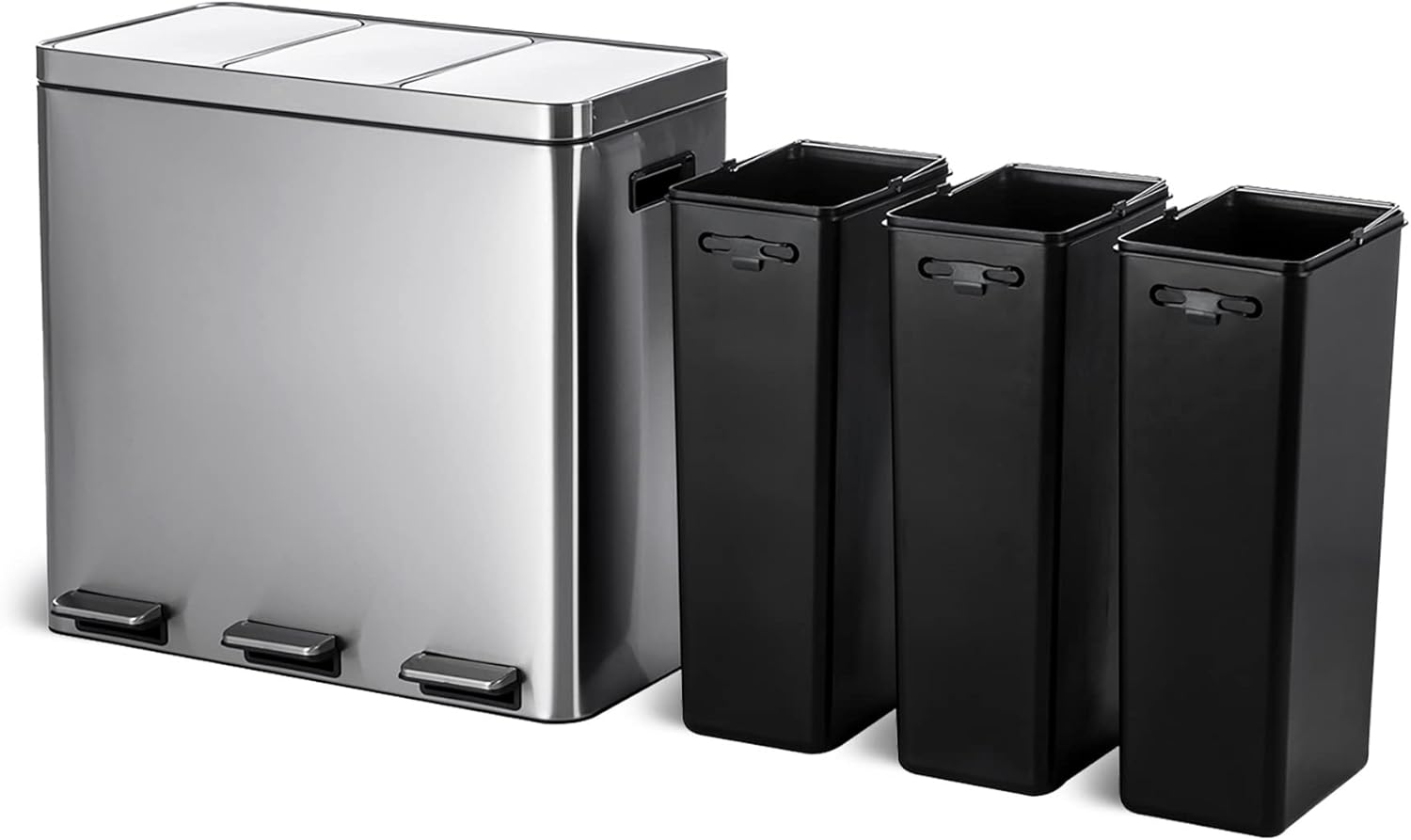 AIWFL Commercial Steel Trash Receptacle Outdoor, Standing Trash Can with Inner Bucket, Large Capacity, Trash Disposal for Home/Park/Hotel/Lobby/Office