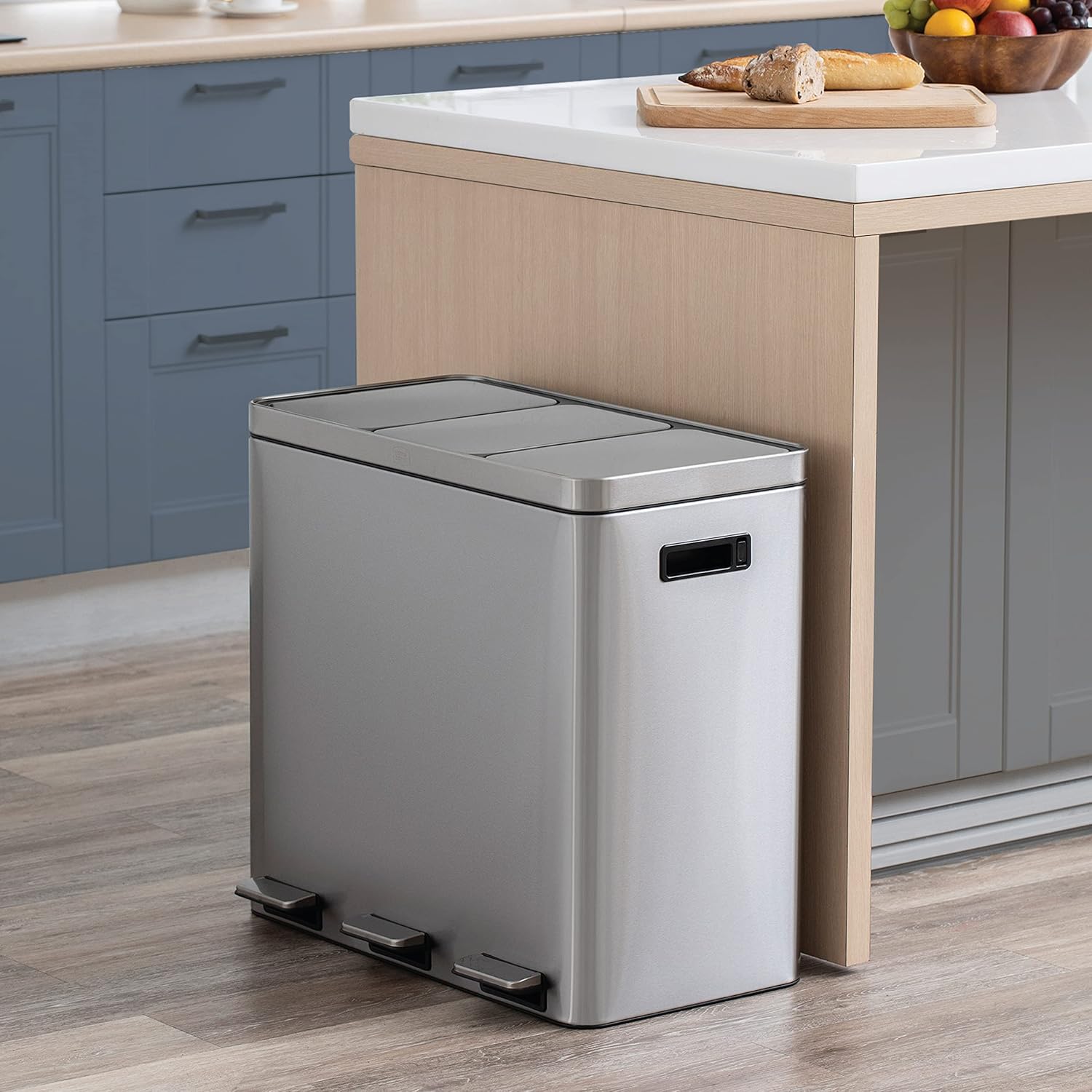 Pull Out Trash Can Under Cabinet With lids Dual Sliding Trash Can Under Sink Garbage Can Pull Out Recycling Bin Soft close slides, Door Mounting Kit Pullout Trah Can for Kitchen Cabinet,2×24Q,Grey