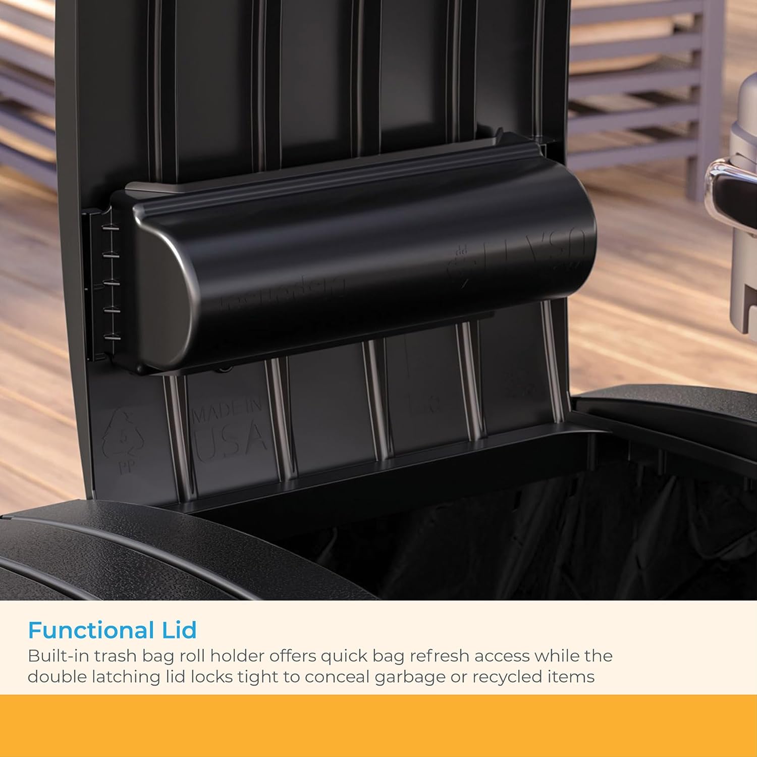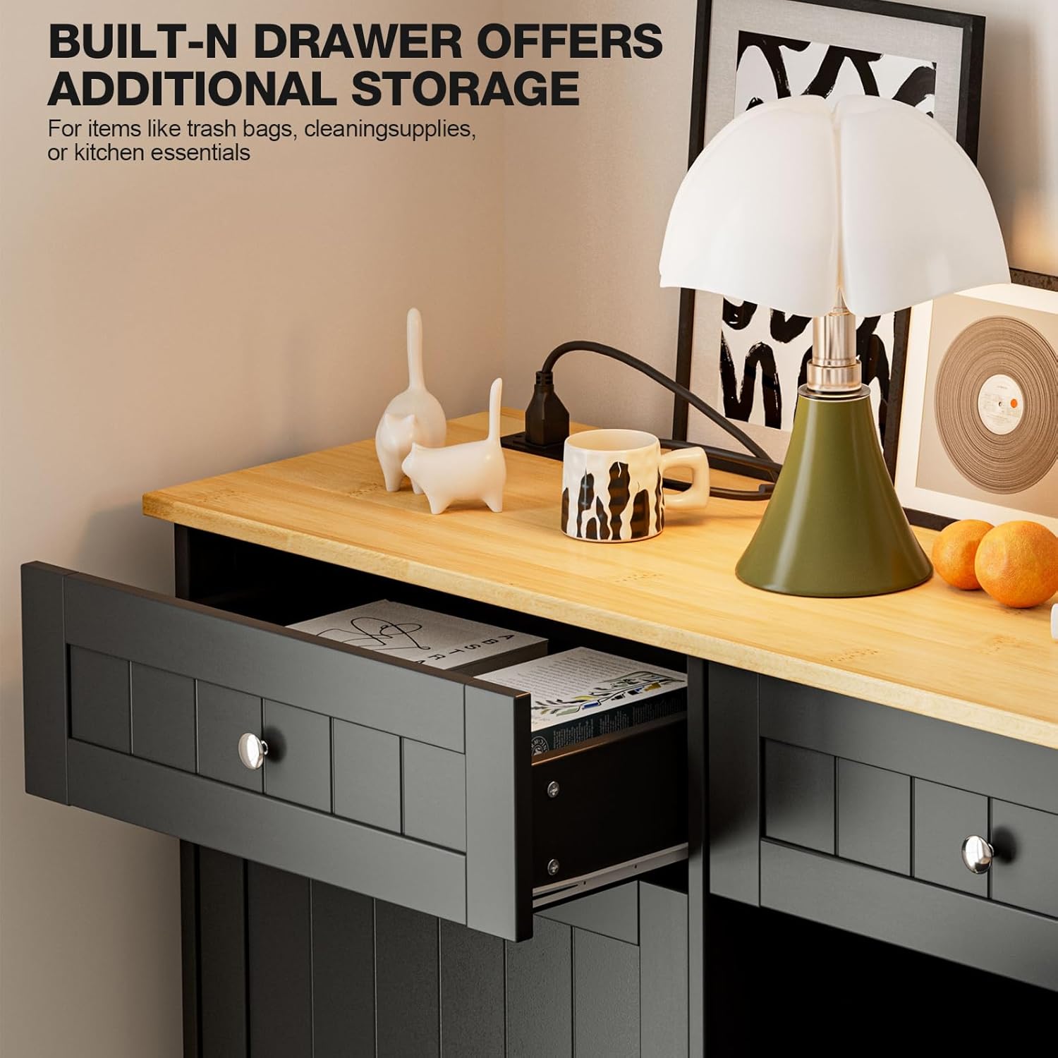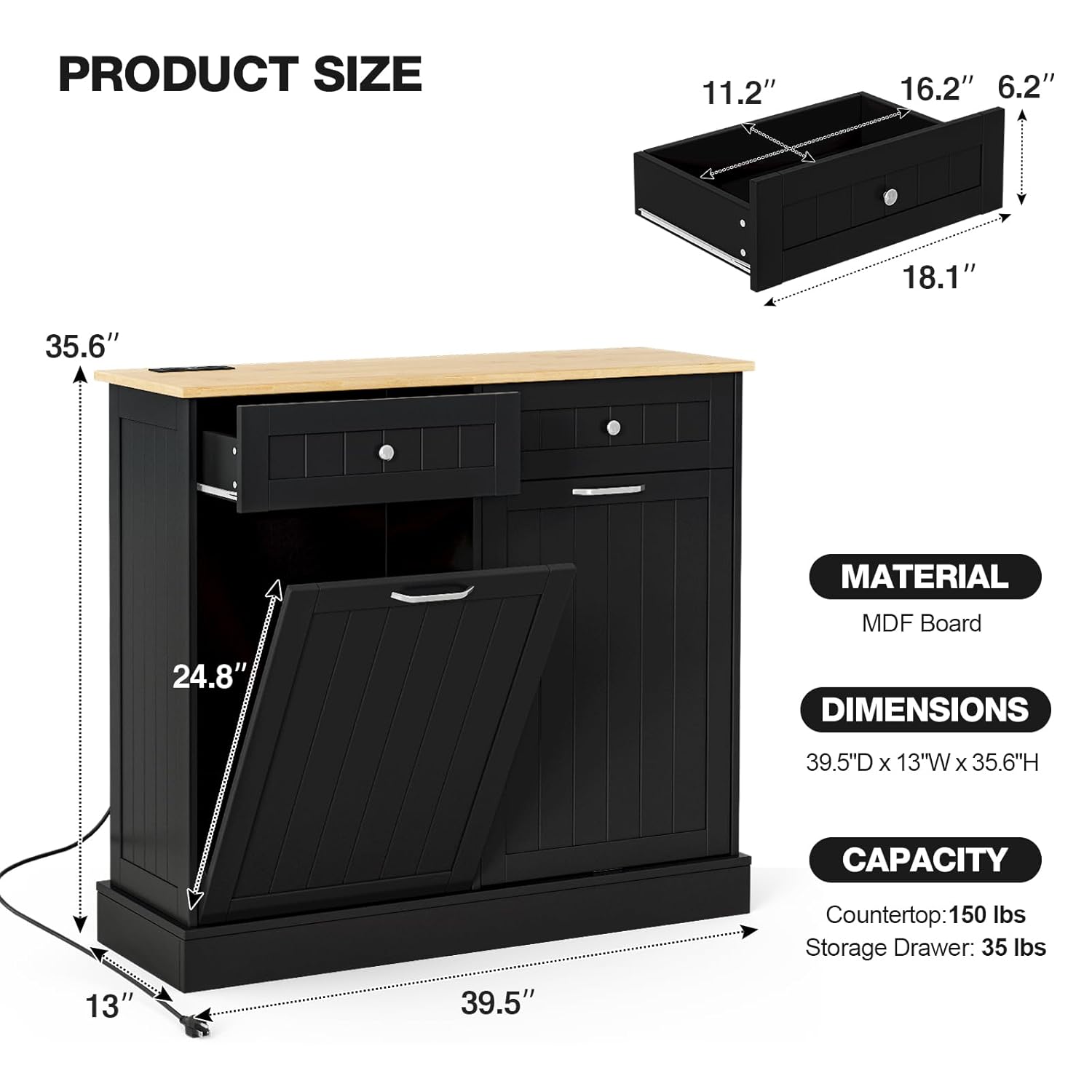 GAZHOME 20 Gallon Double Tilt Out Wooden Trash Cabinet with Charging Station, Upgrade Free Standing Recycling Cabinet with Outlet,Black