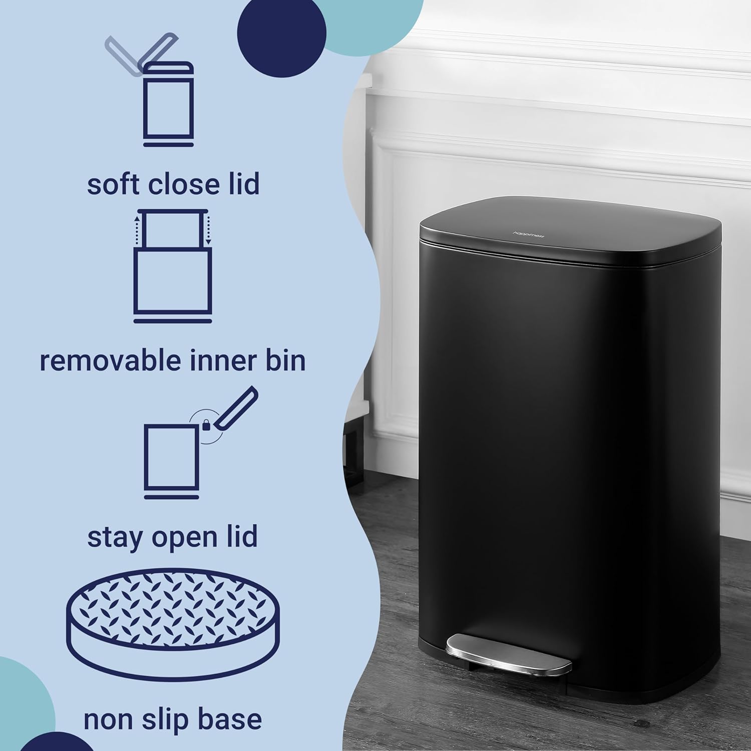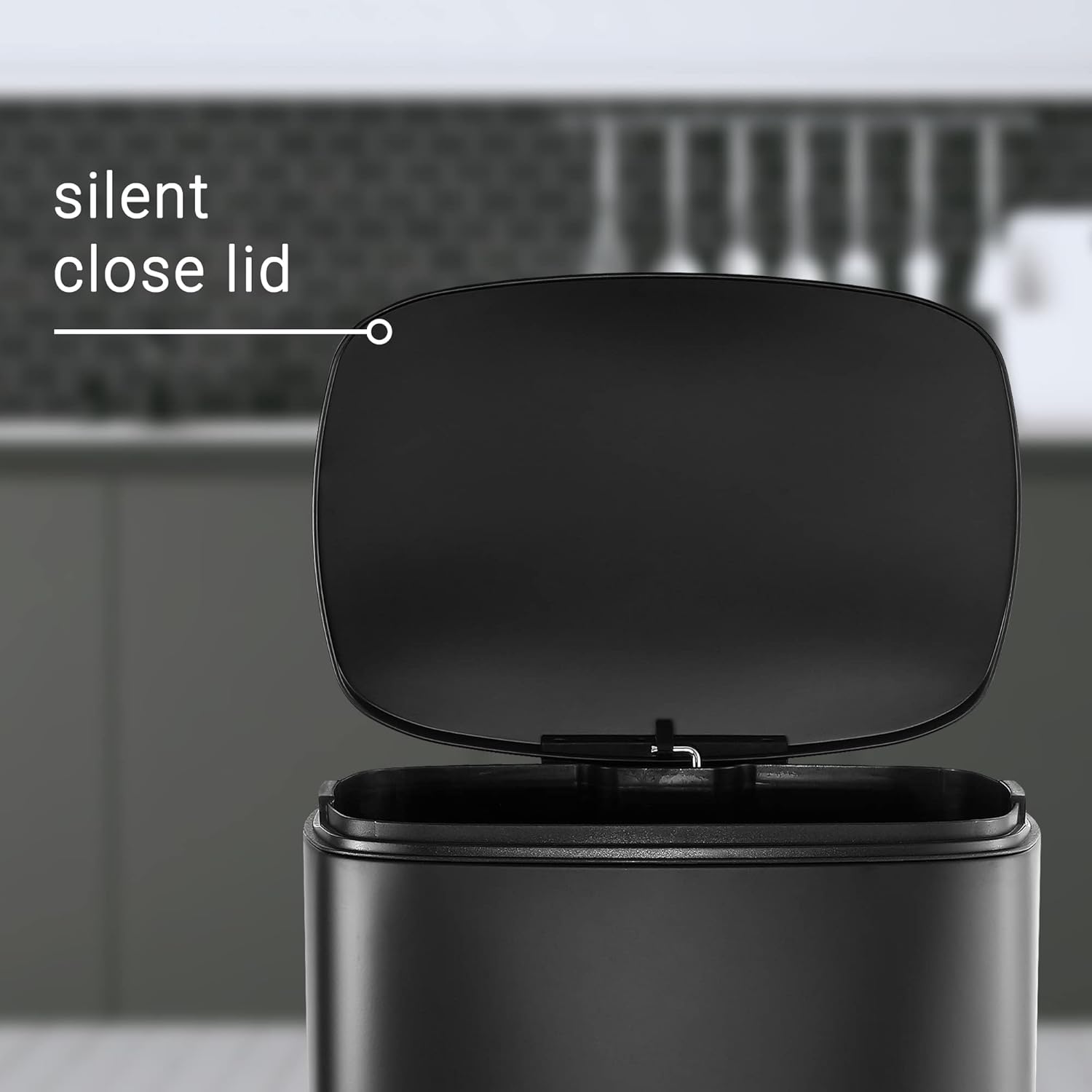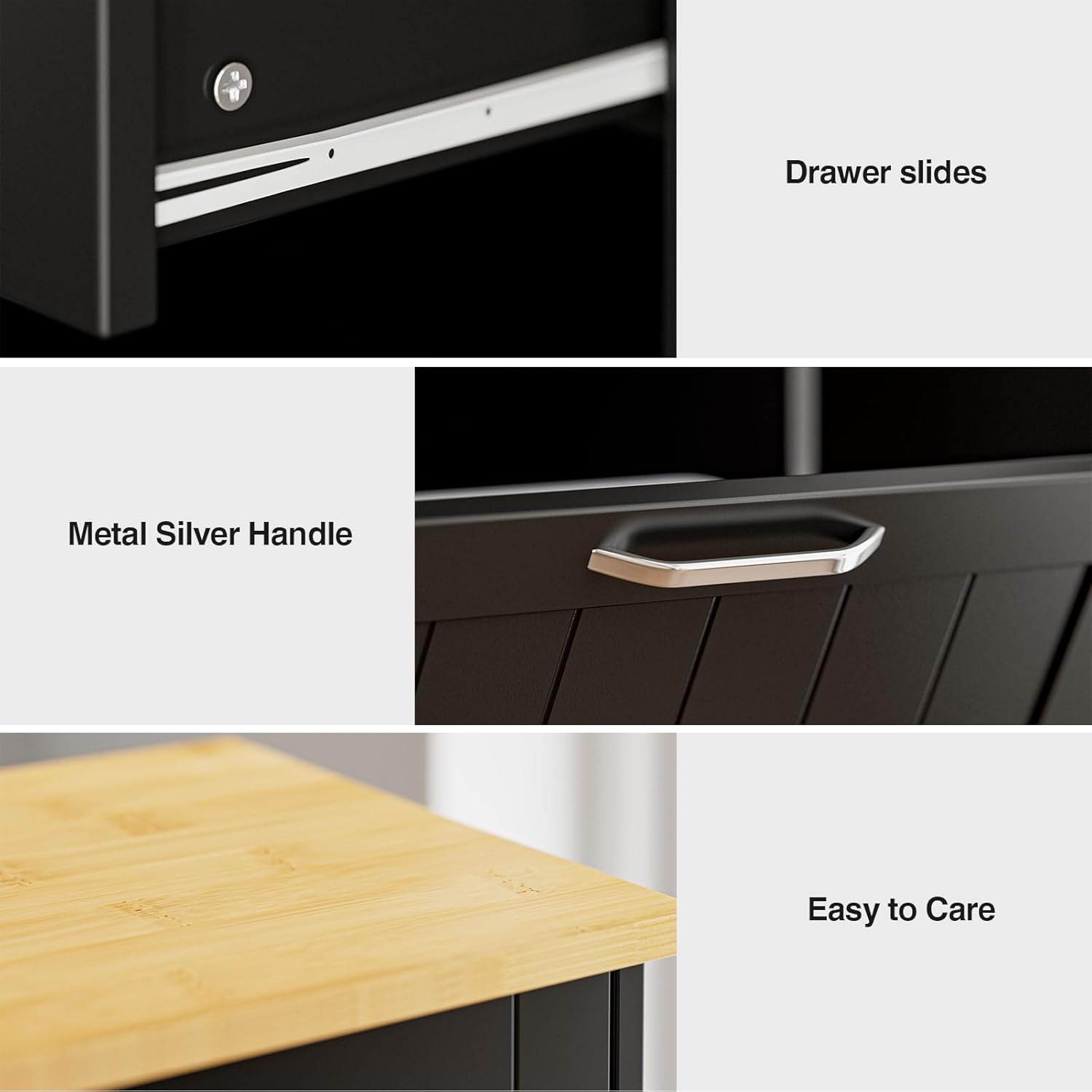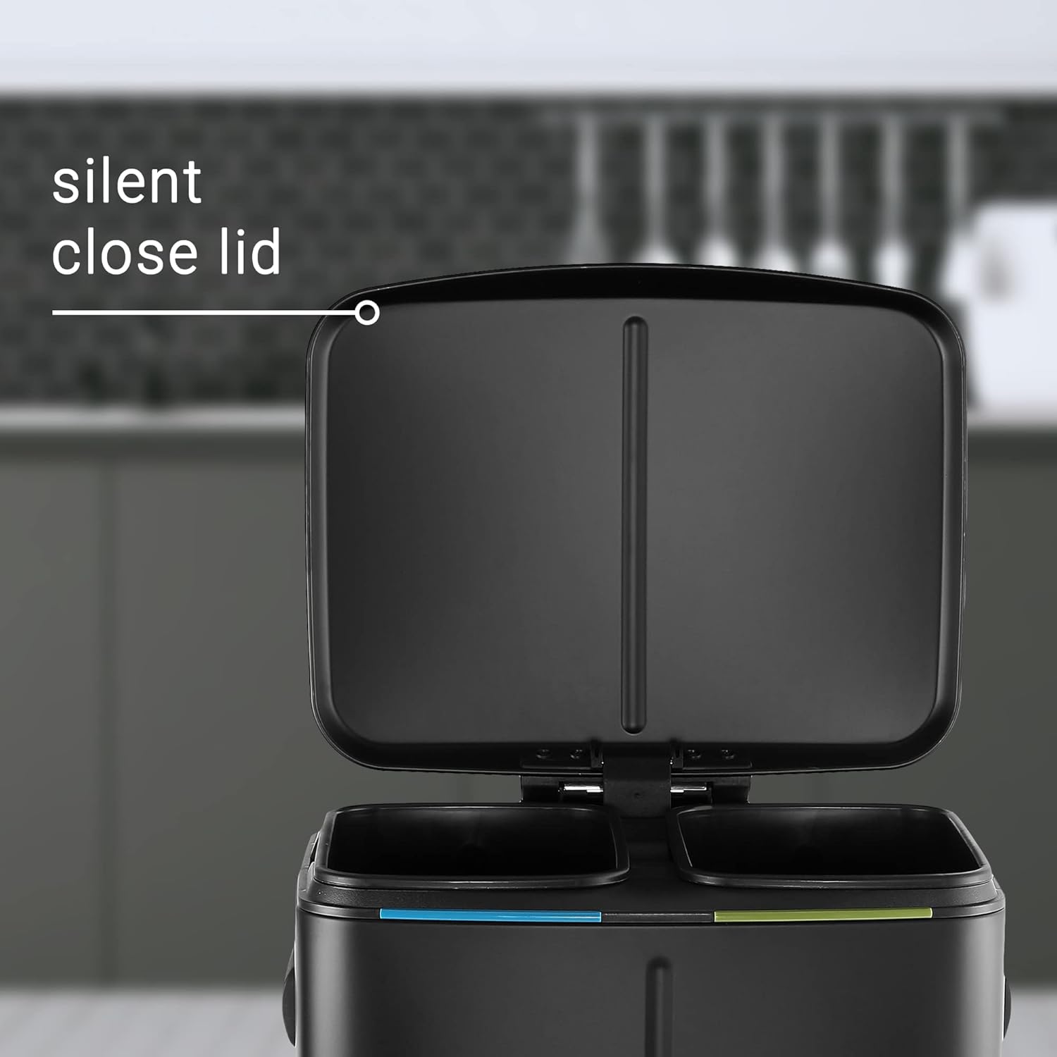 GAZHOME 20 Gallon Double Tilt Out Wooden Trash Cabinet with Charging Station, Upgrade Free Standing Recycling Cabinet with Outlet,Black