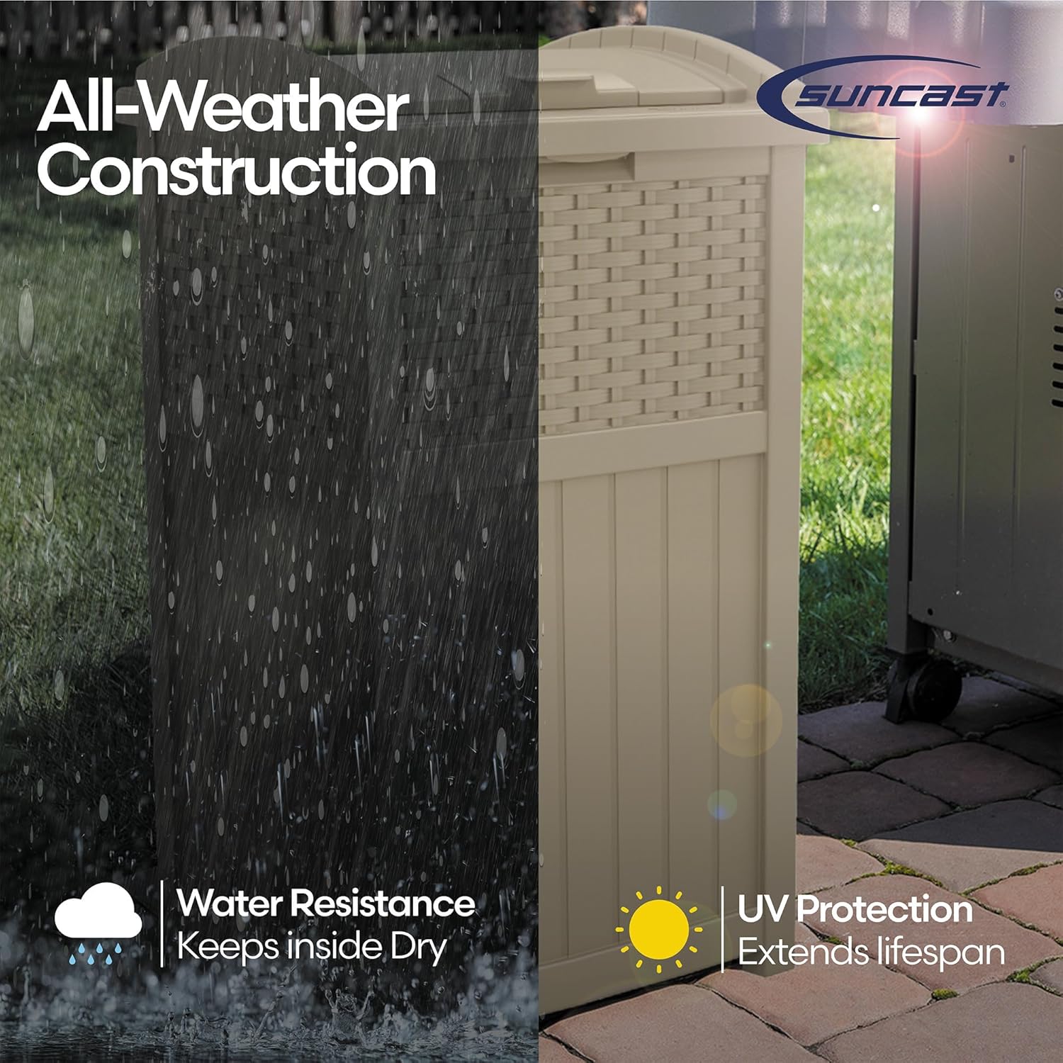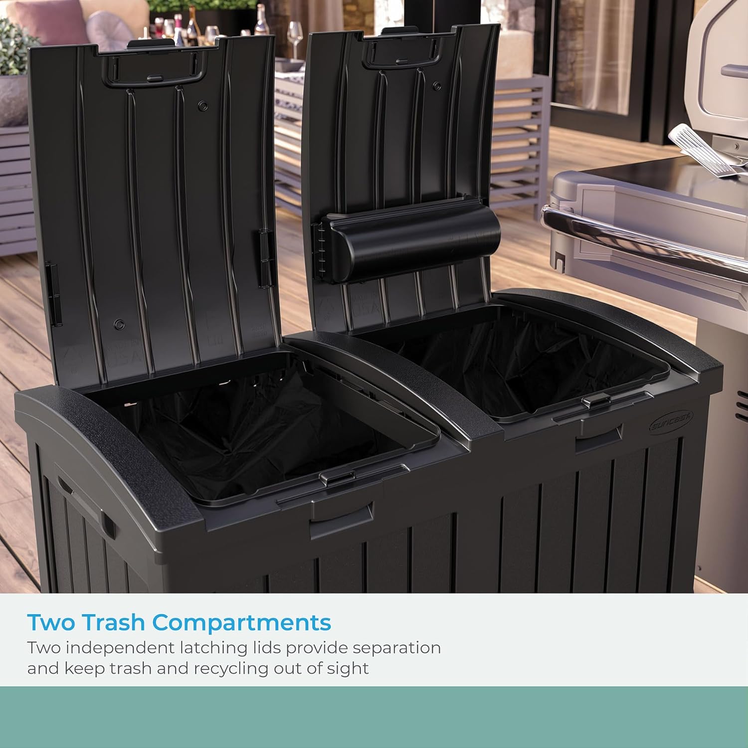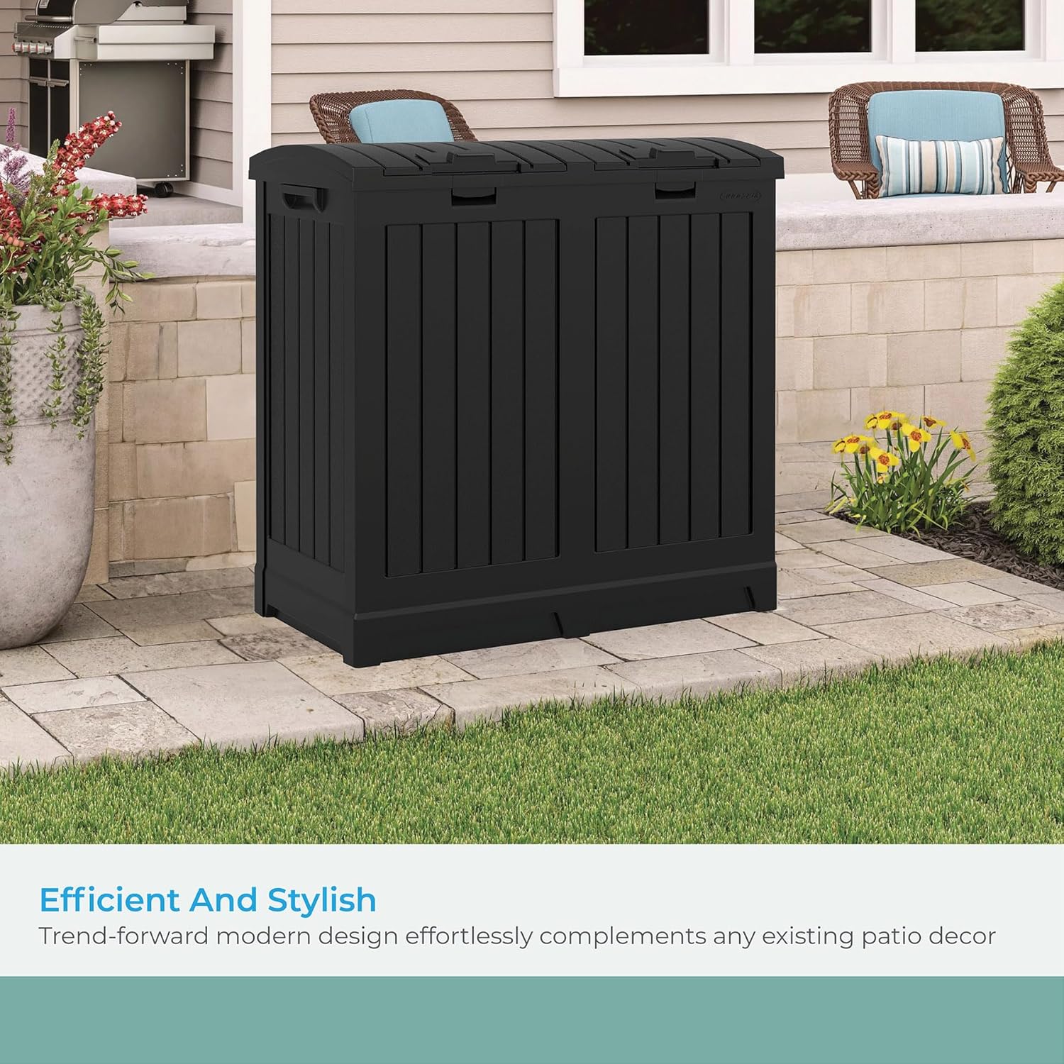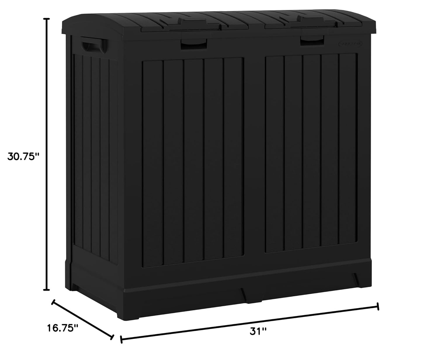 Suncast Dual Trash Hideaway Cabinet for Garbage and Recycle Bags, Discrete Outdoor Trash Cabinet with Concealed Trash Bag Holders, Holds Two 33-Gal. Bags, Made in the USA