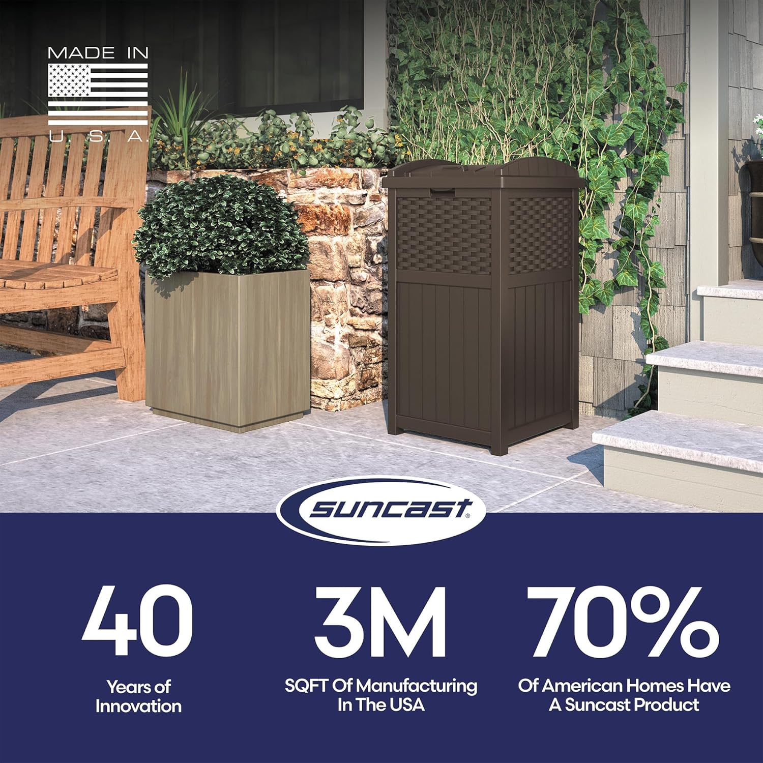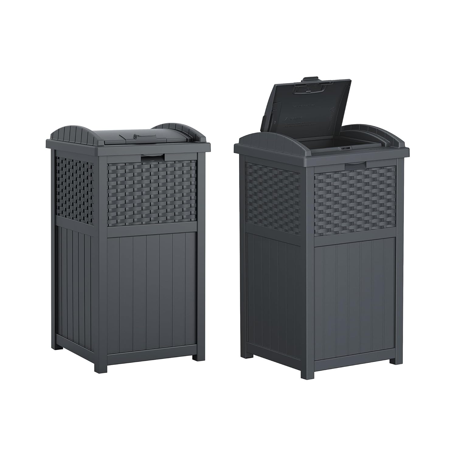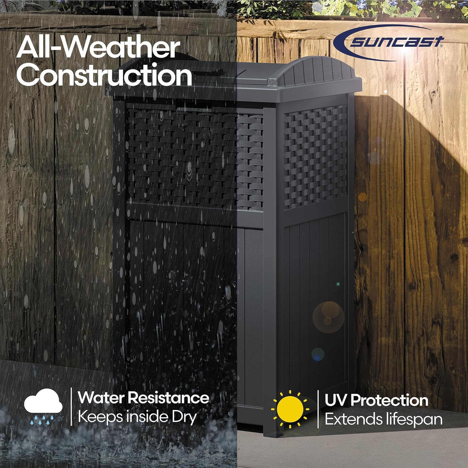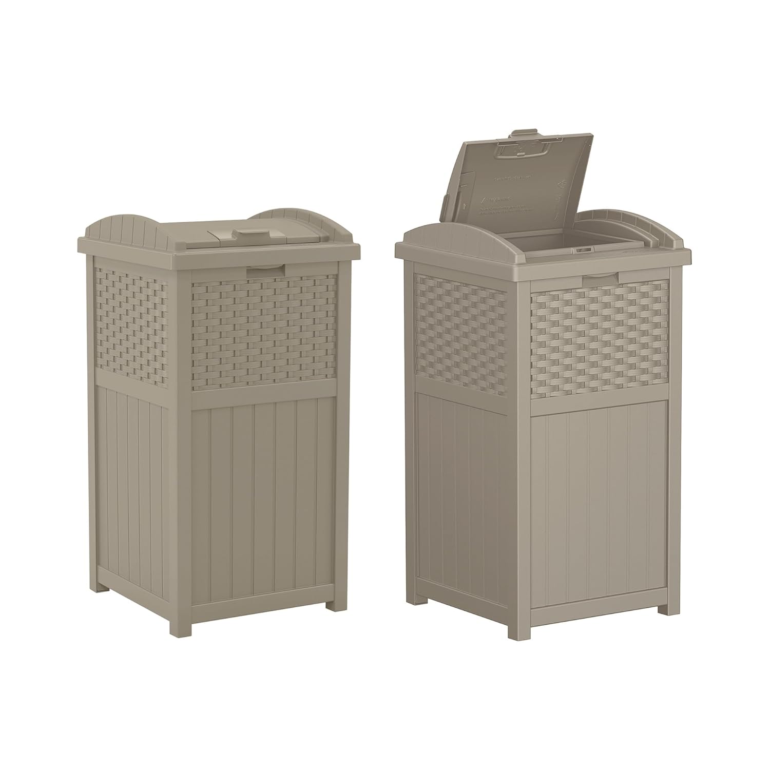 Suncast Dual Trash Hideaway Cabinet for Garbage and Recycle Bags, Discrete Outdoor Trash Cabinet with Concealed Trash Bag Holders, Holds Two 33-Gal. Bags, Made in the USA