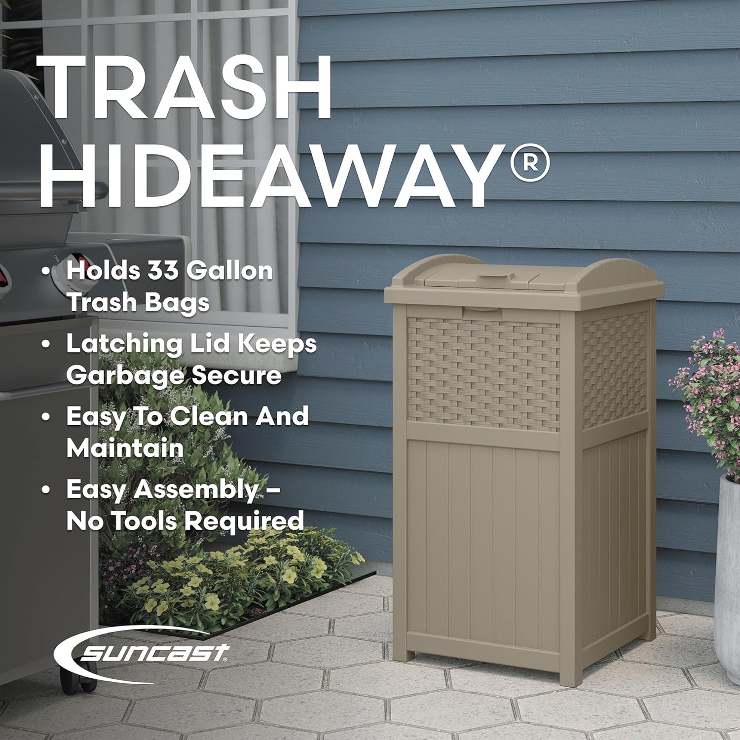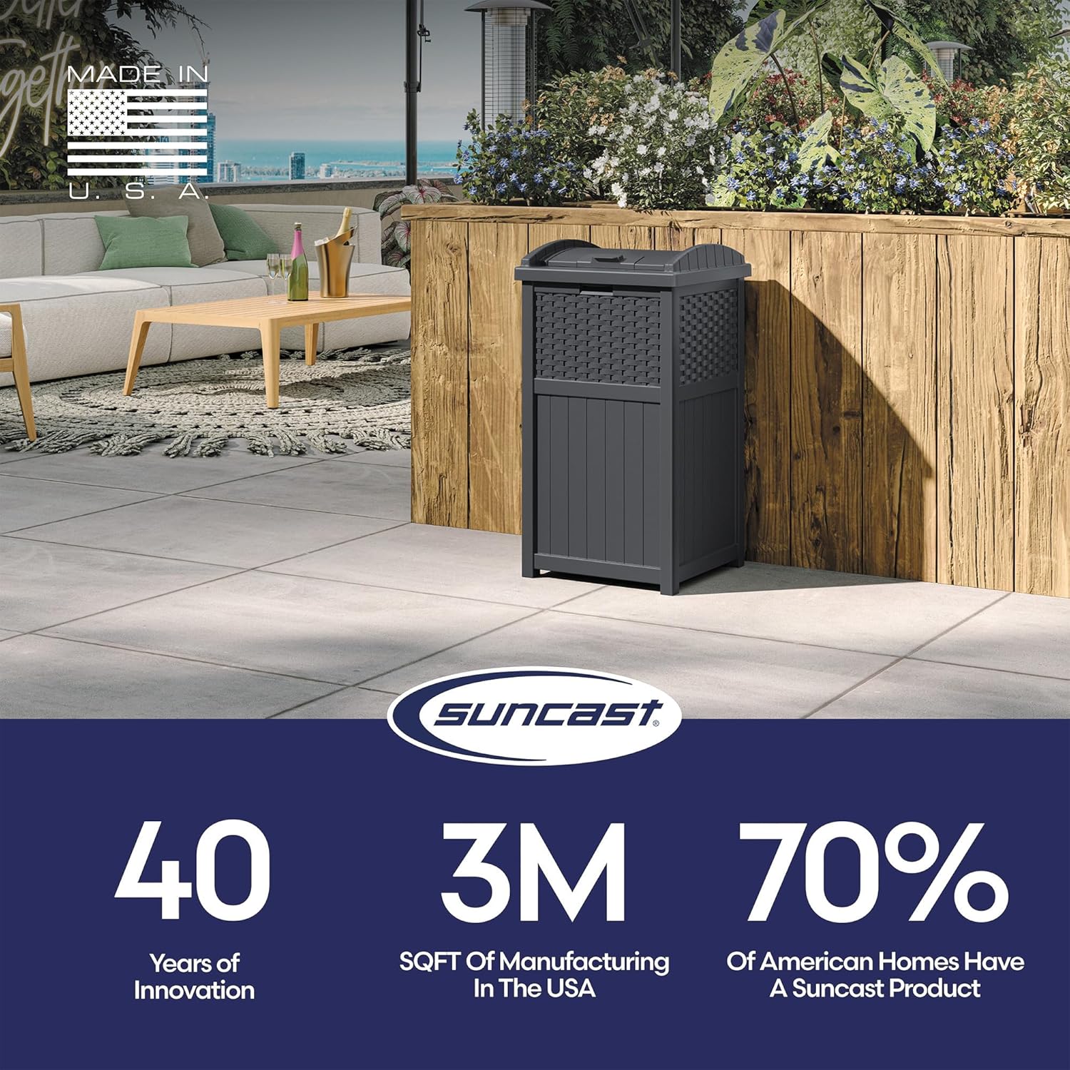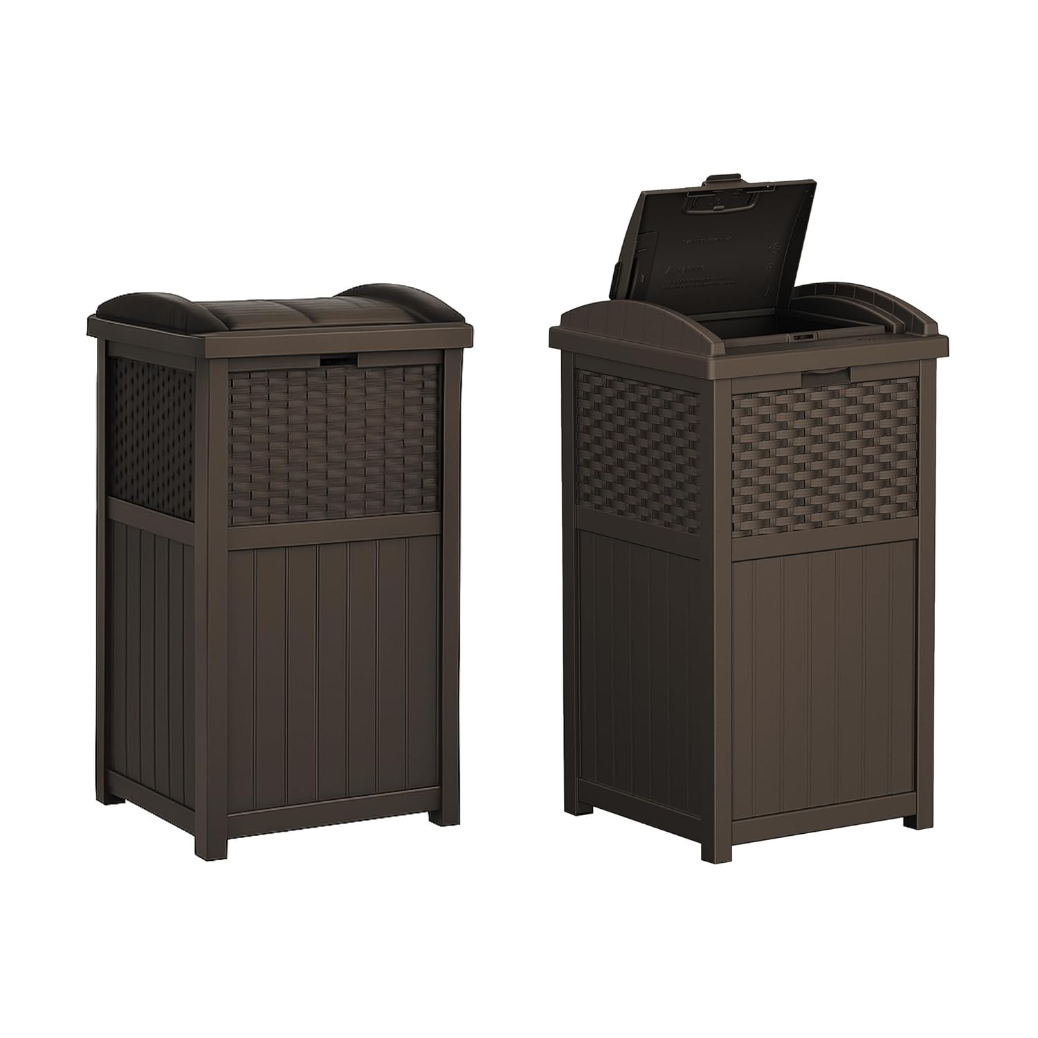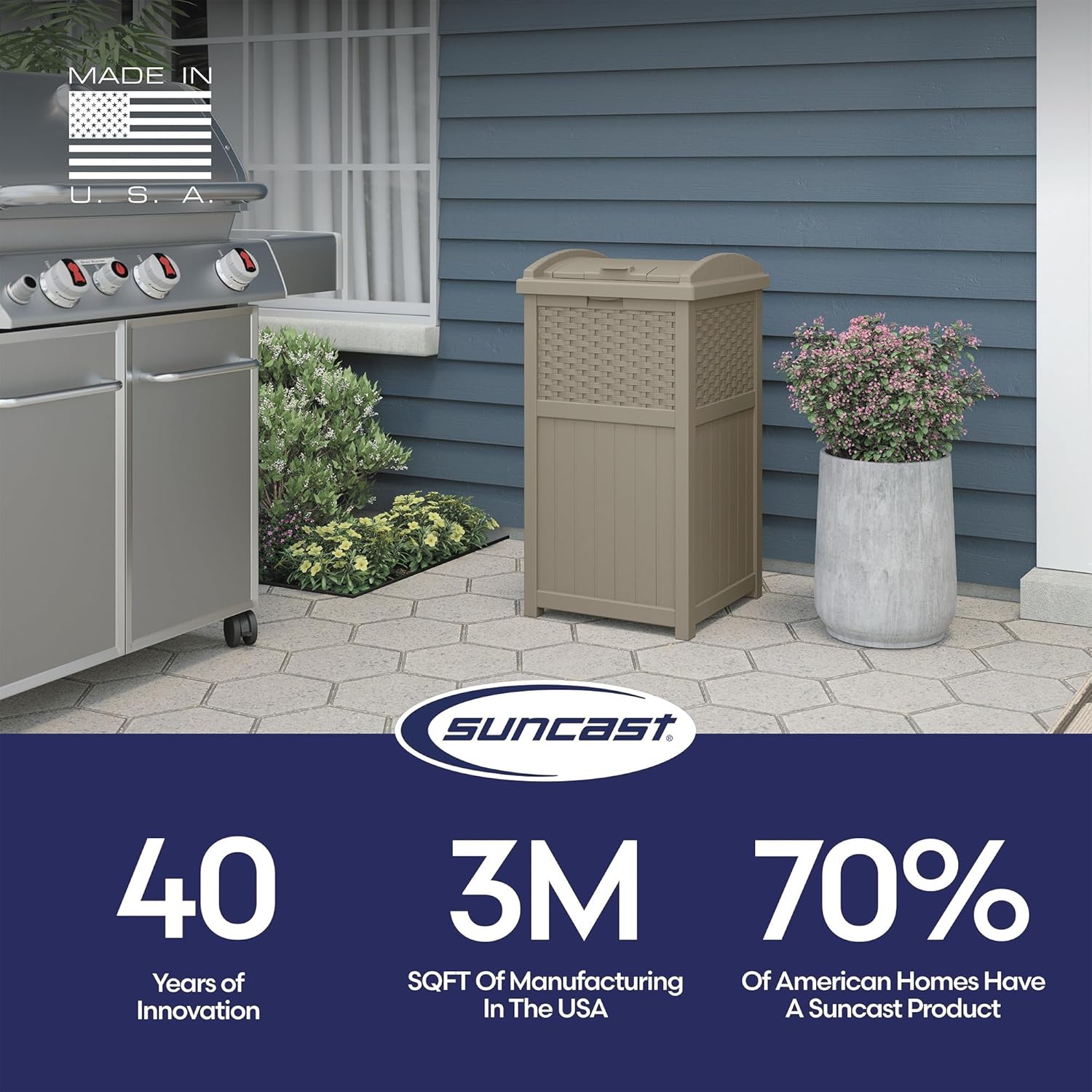 Suncast Dual Trash Hideaway Cabinet for Garbage and Recycle Bags, Discrete Outdoor Trash Cabinet with Concealed Trash Bag Holders, Holds Two 33-Gal. Bags, Made in the USA
