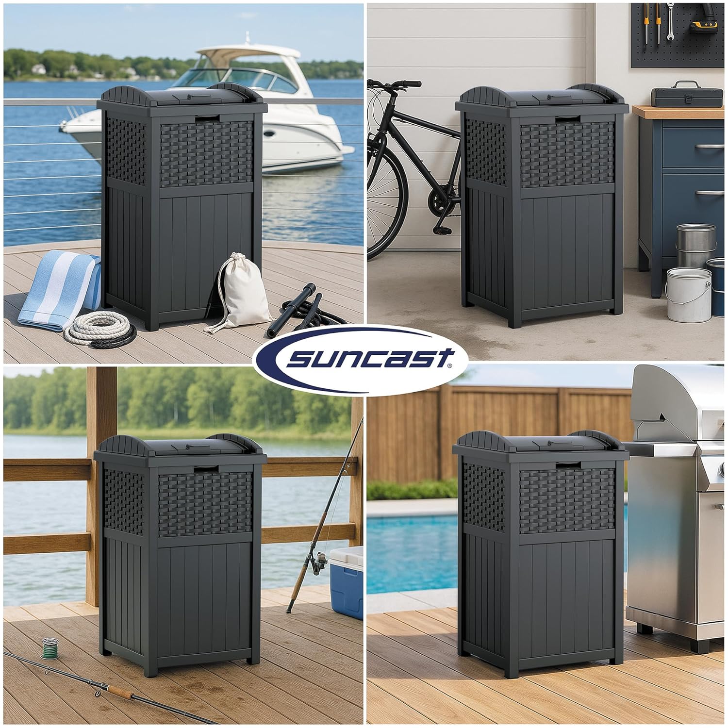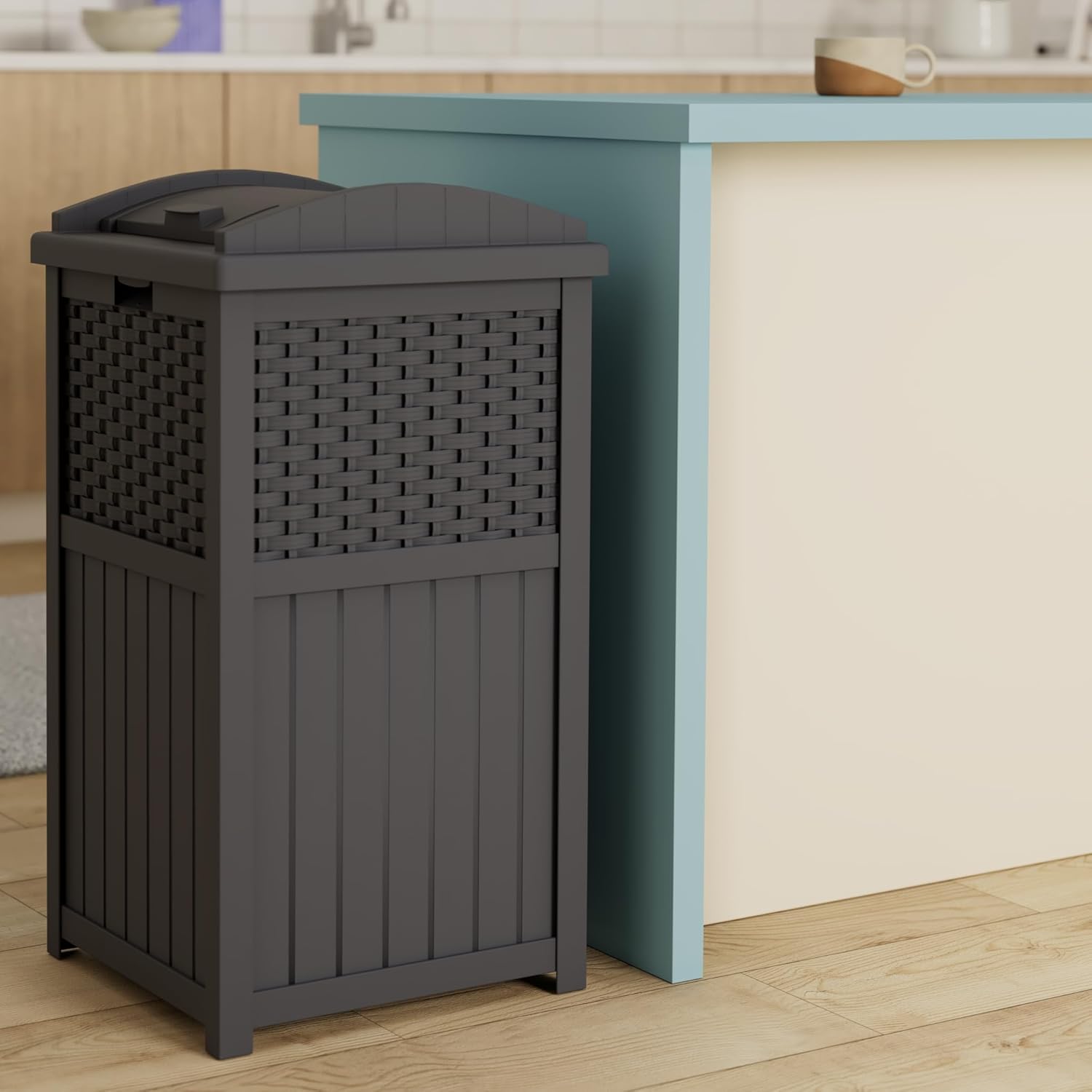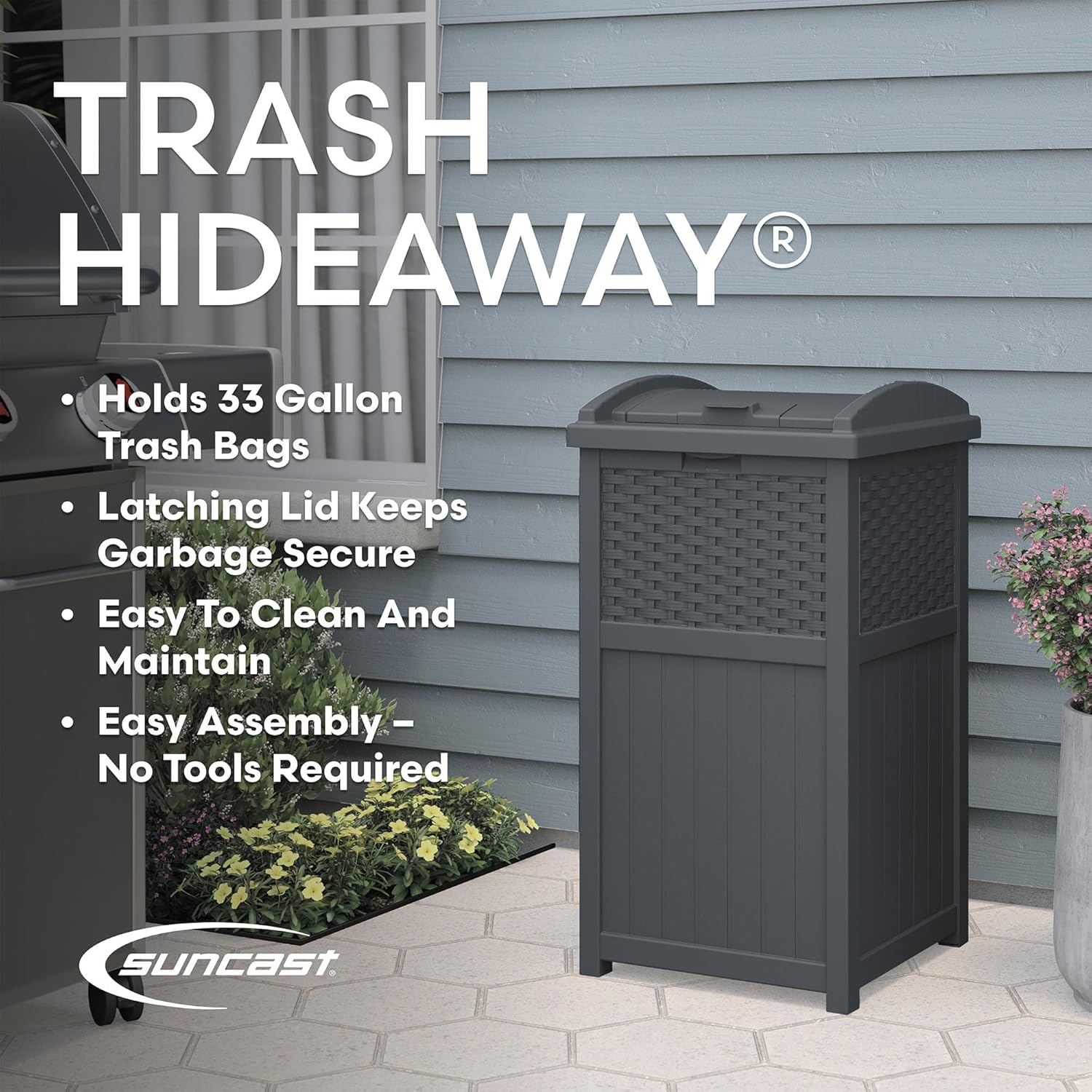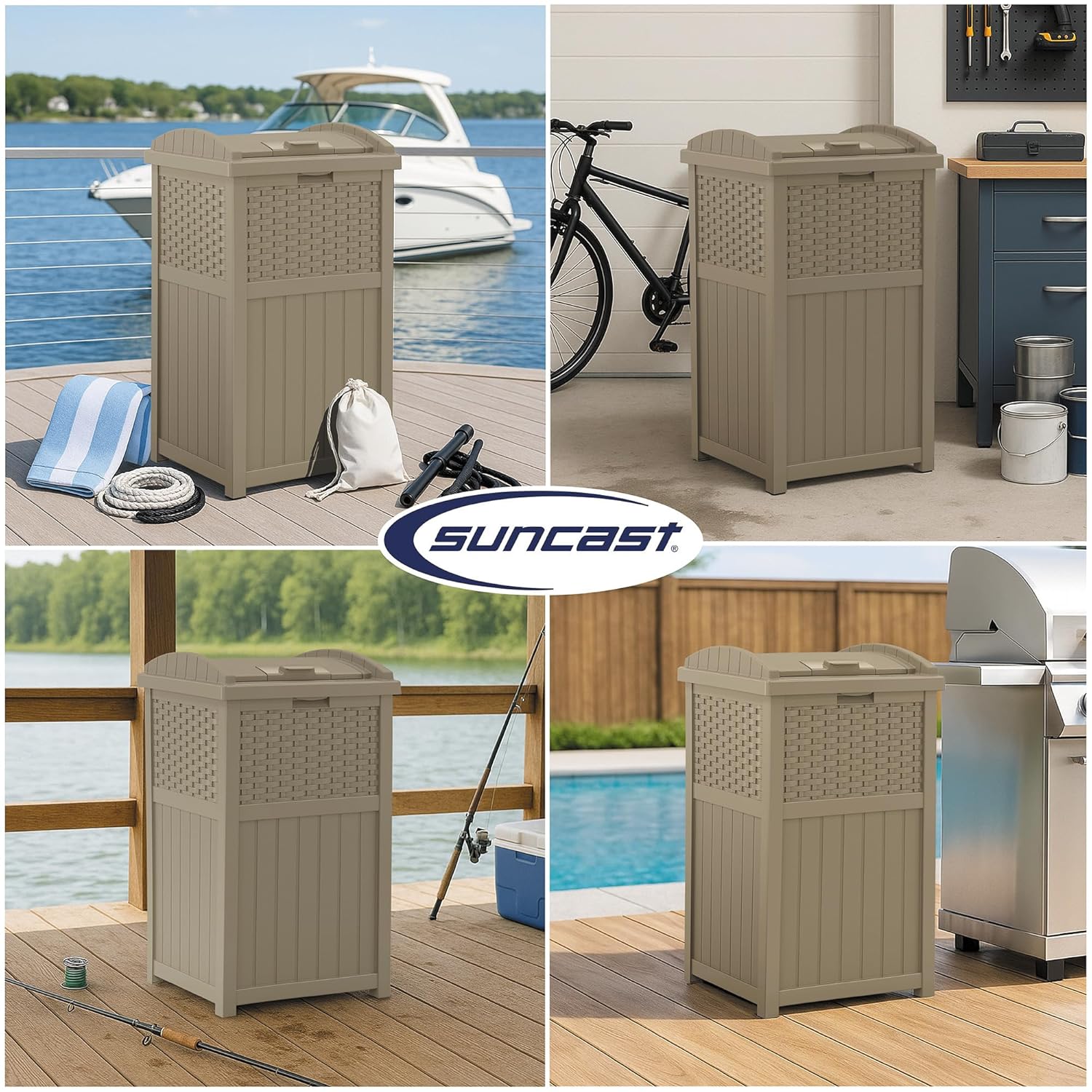 Suncast Dual Trash Hideaway Cabinet for Garbage and Recycle Bags, Discrete Outdoor Trash Cabinet with Concealed Trash Bag Holders, Holds Two 33-Gal. Bags, Made in the USA