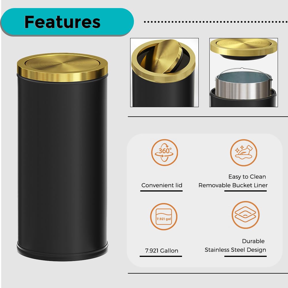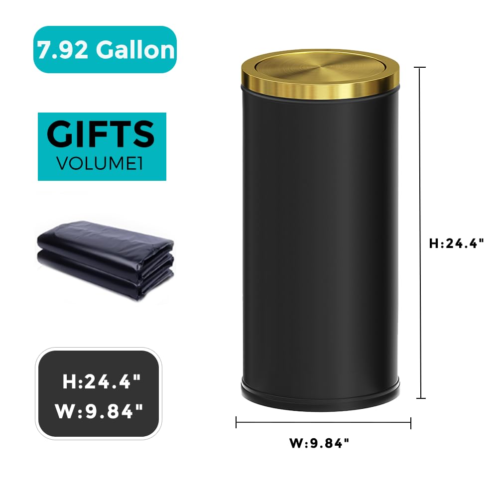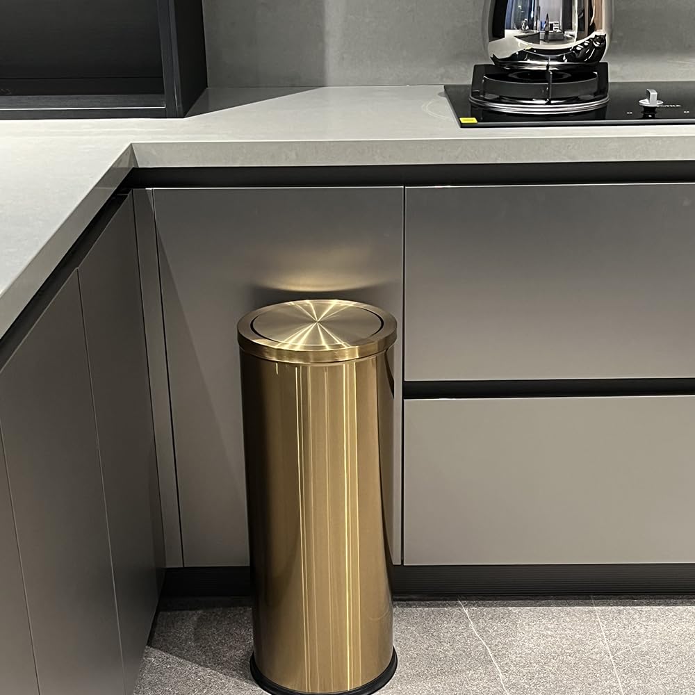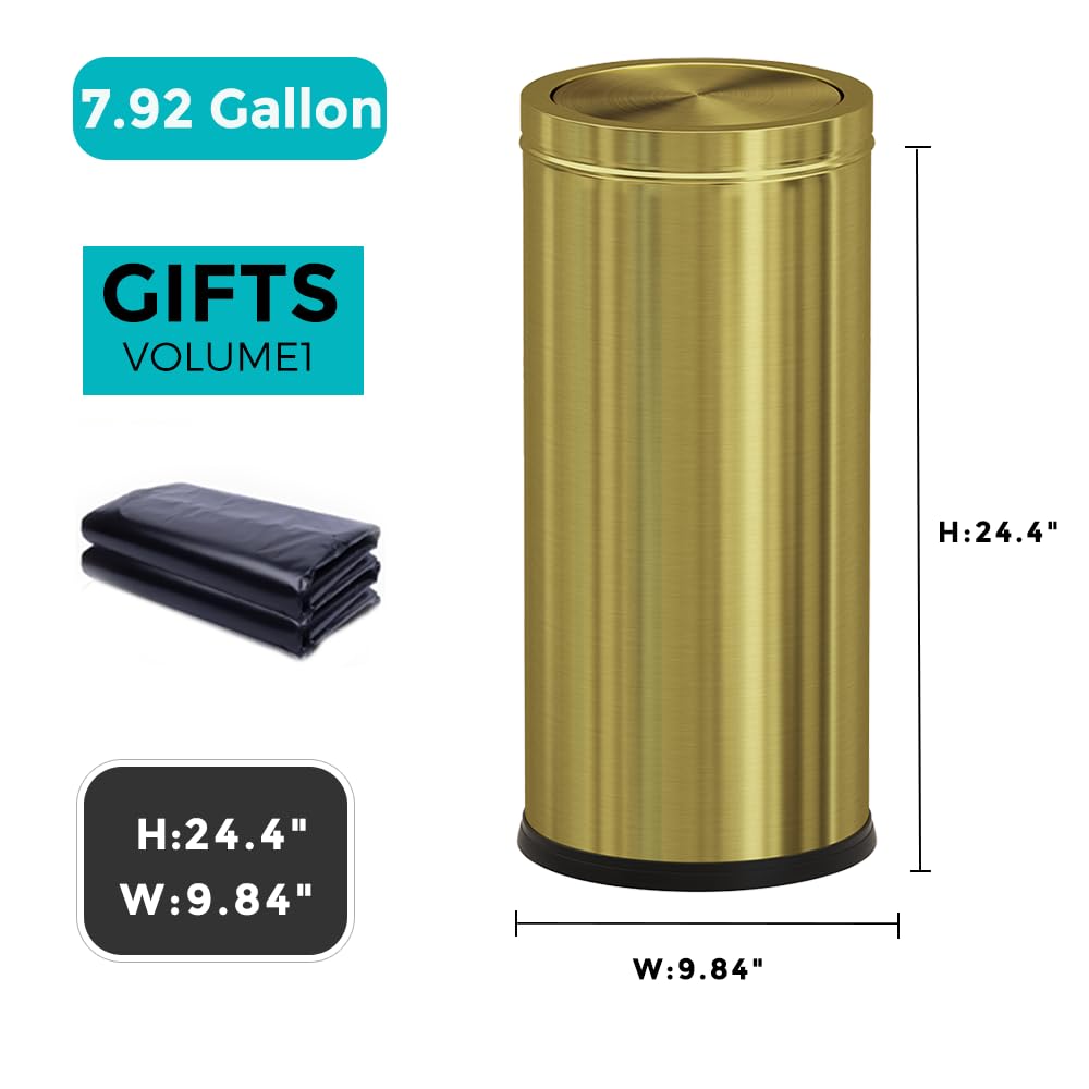 7.92 gallon/30L Kitchen Trash Can with Lid, Tall Slim, Elegant, Gold, Brushed Stainless Steel Garbage Can for Office, Hotel, Kitchen (30Lgold)