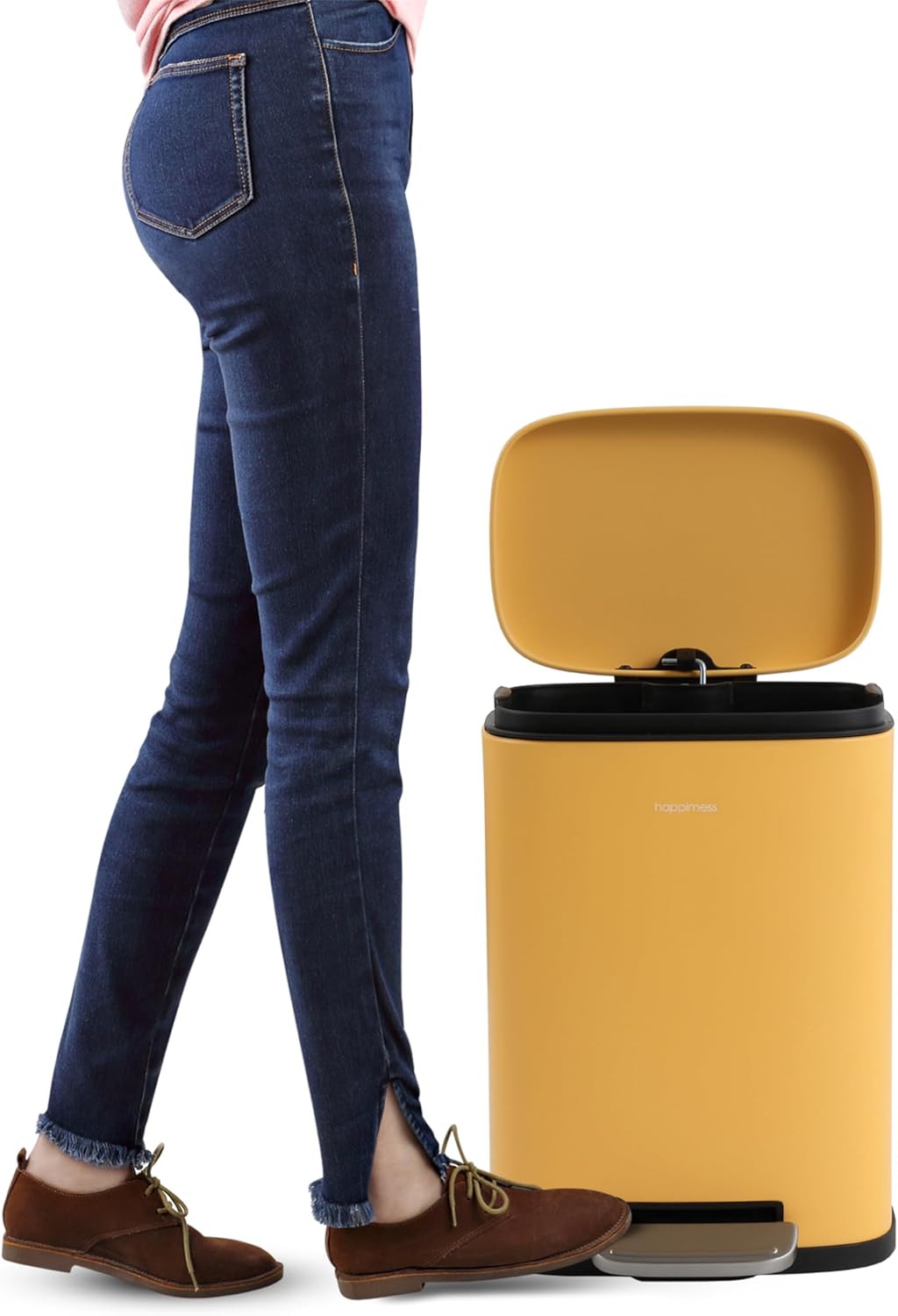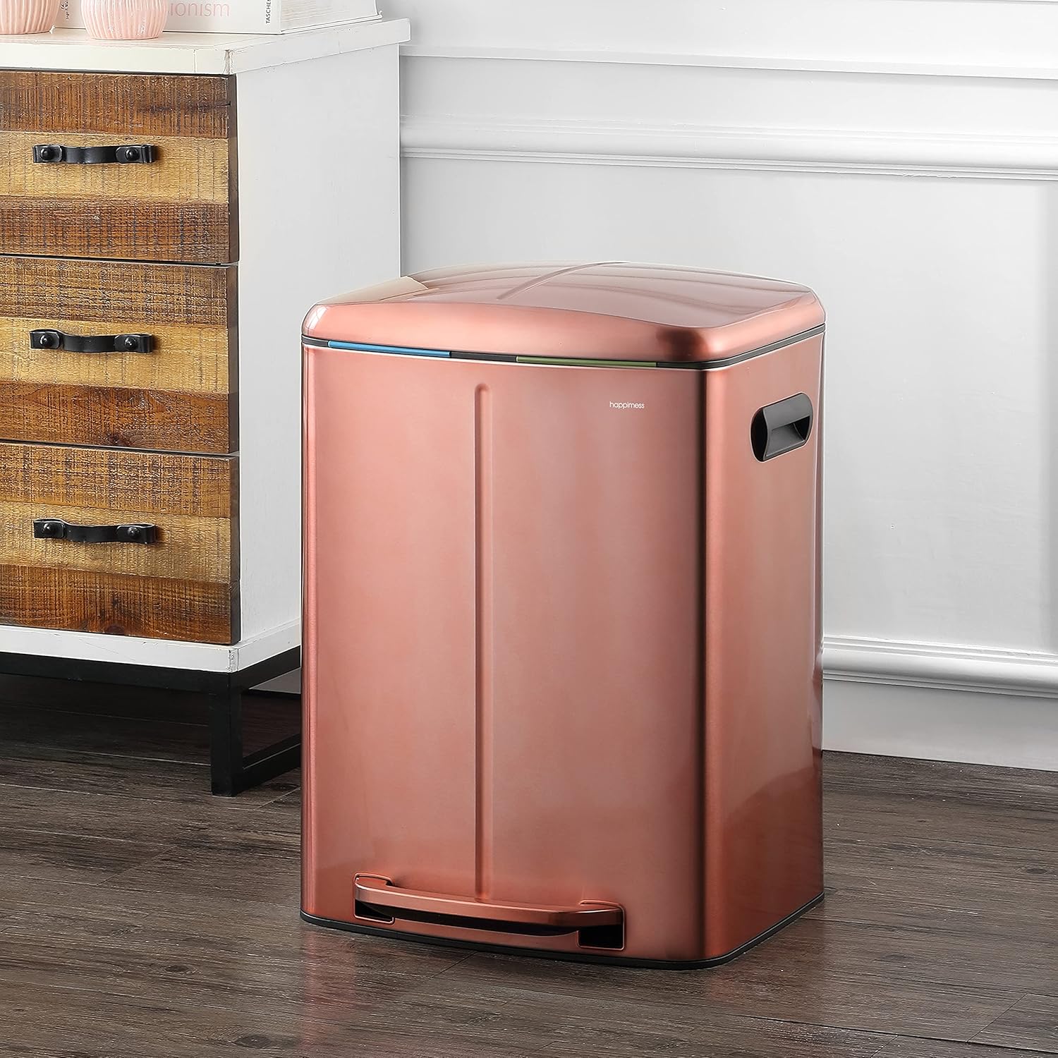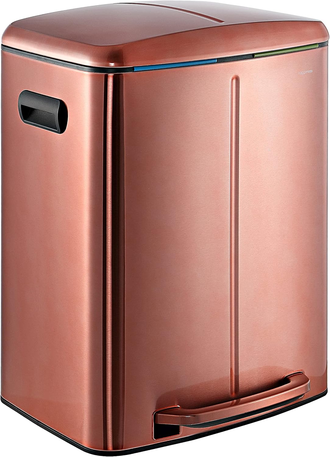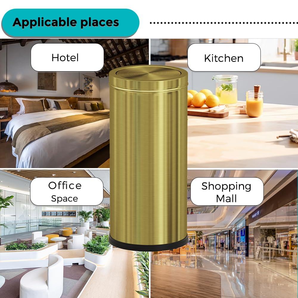 7.92 gallon/30L Kitchen Trash Can with Lid, Tall Slim, Elegant, Gold, Brushed Stainless Steel Garbage Can for Office, Hotel, Kitchen (30Lgold)