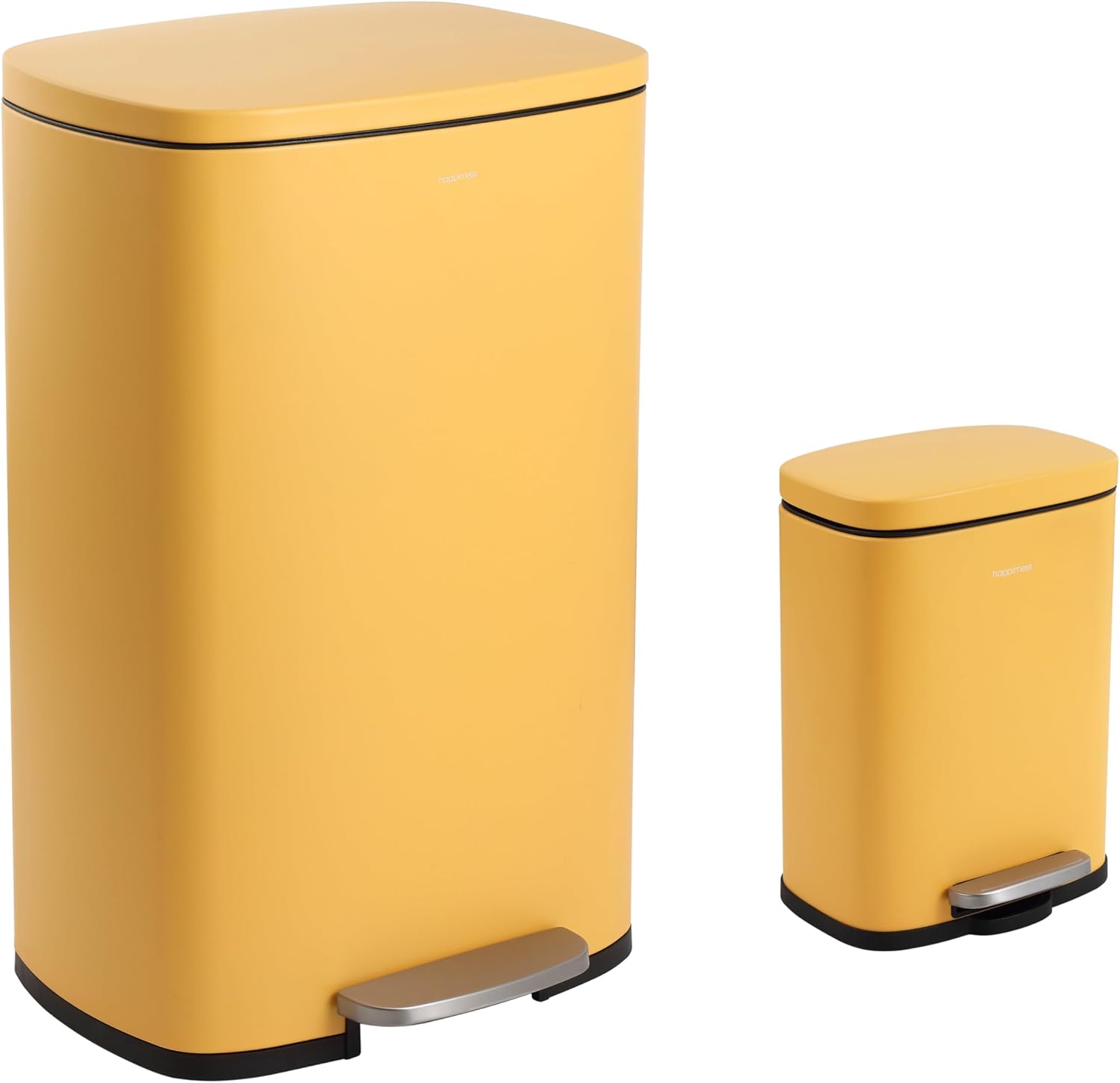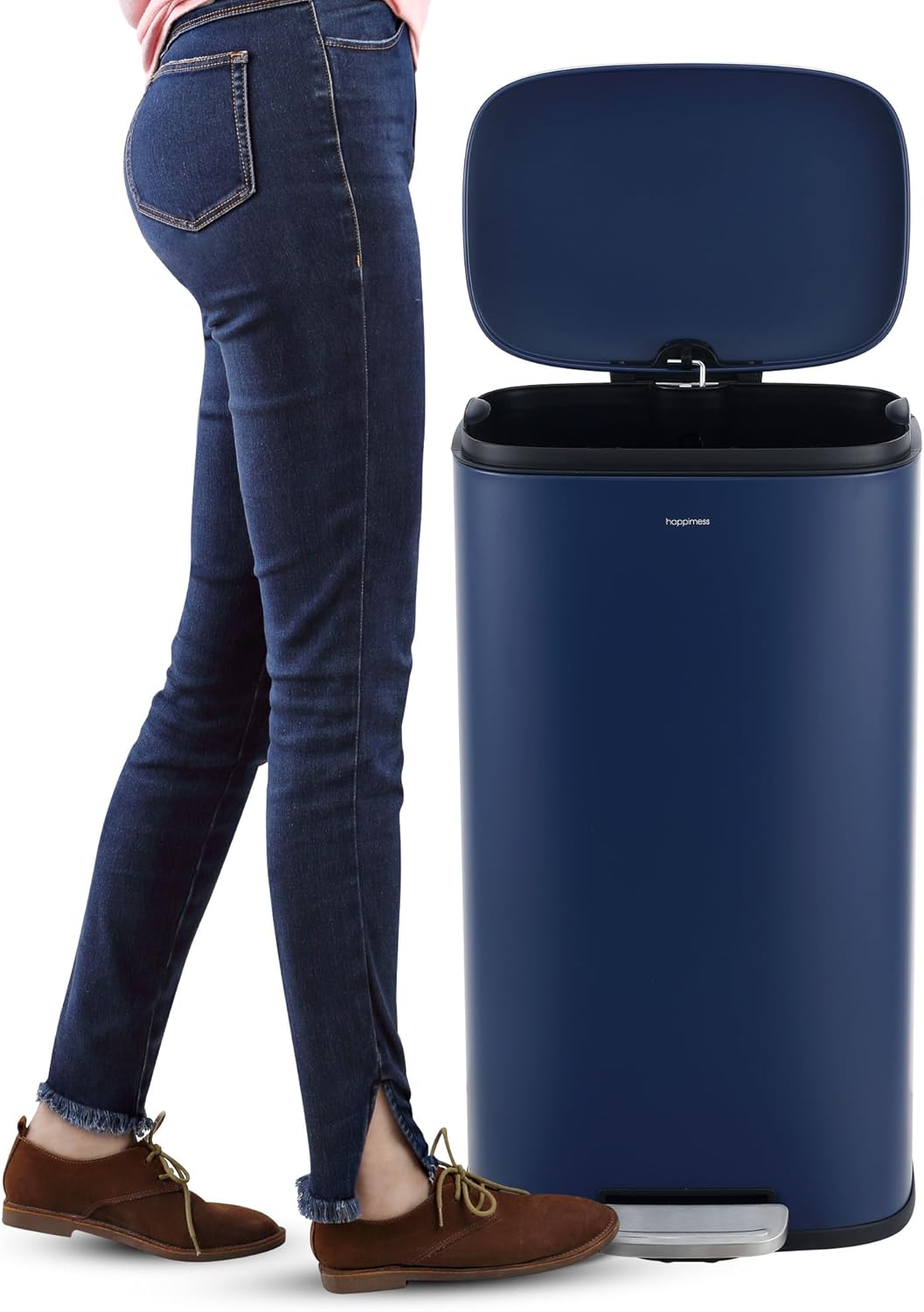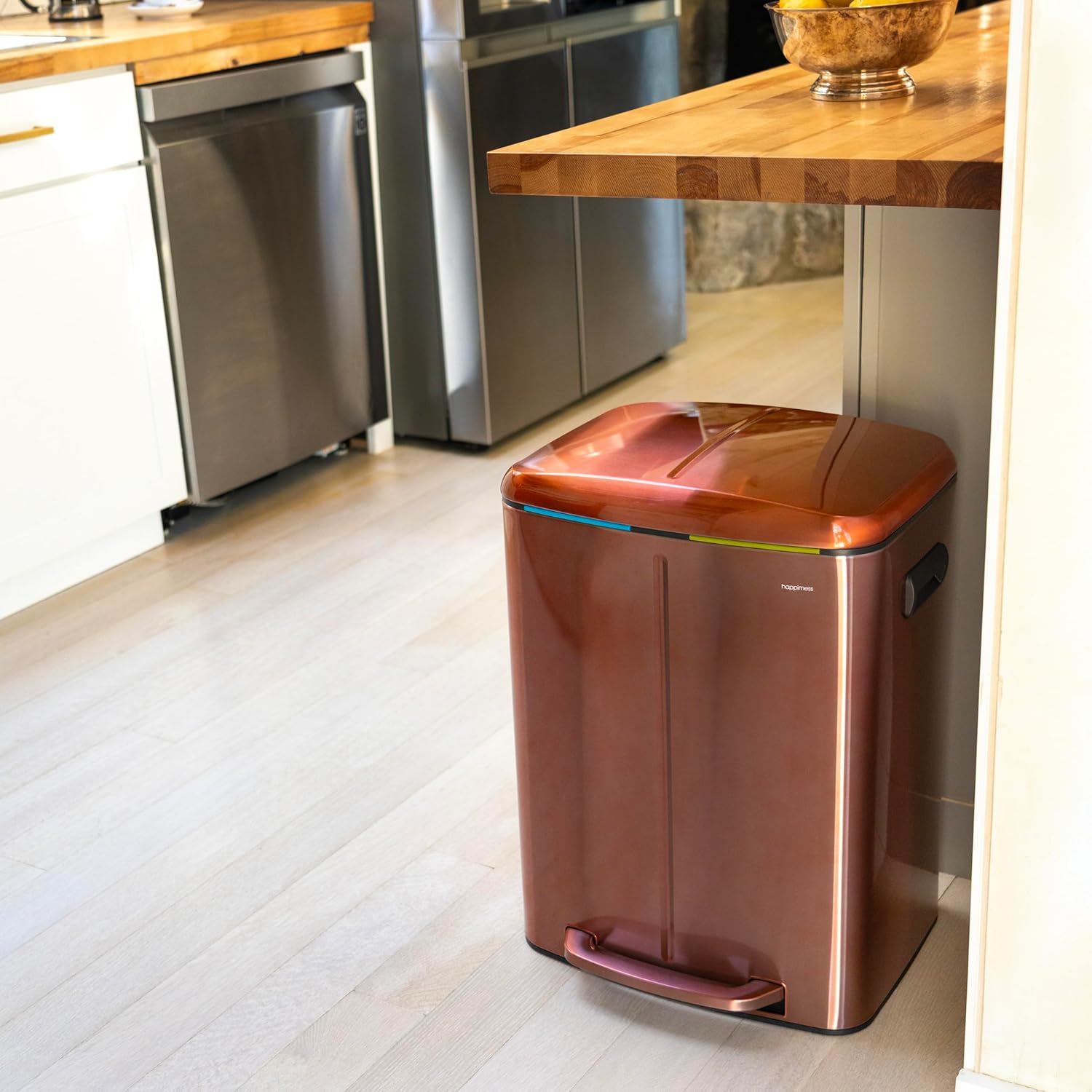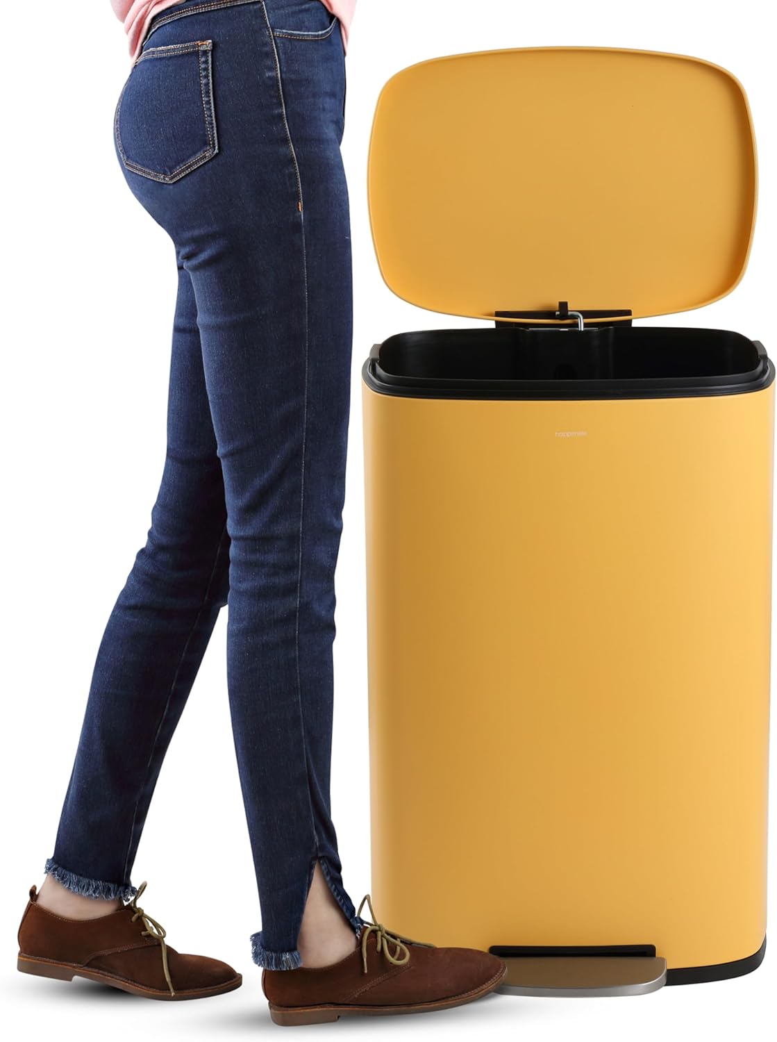 7.92 gallon/30L Kitchen Trash Can with Lid, Tall Slim, Elegant, Gold, Brushed Stainless Steel Garbage Can for Office, Hotel, Kitchen (30Lgold)