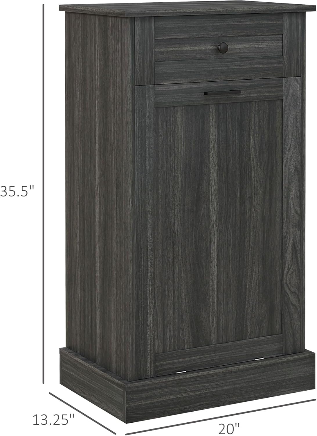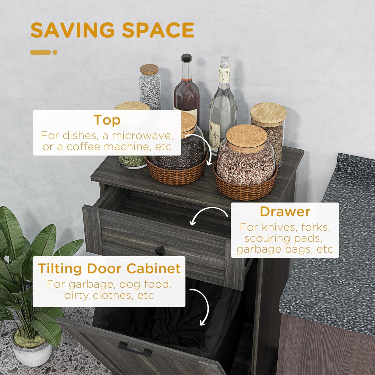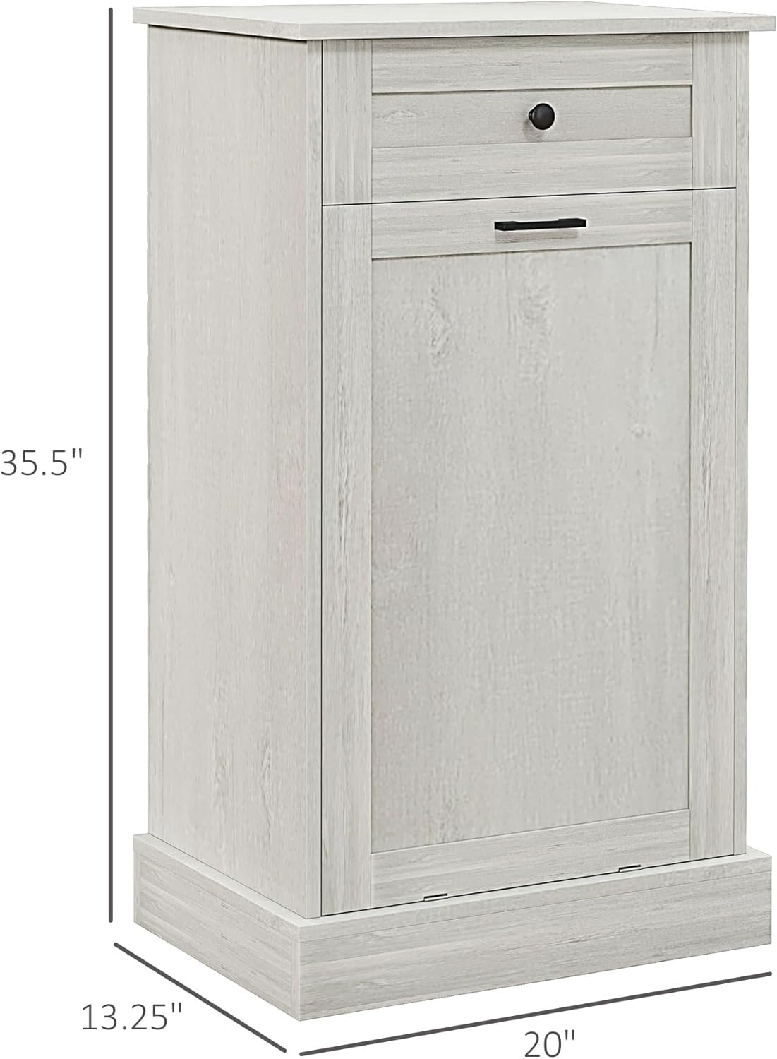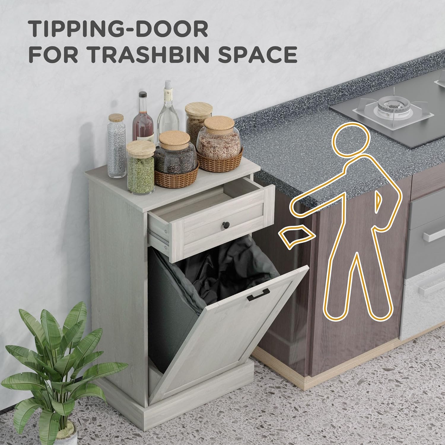 HOMCOM Kitchen Tilt Out Trash Bin Cabinet Free Standing Recycling Cabinet Trash Can Holder with Drawer, Light Gray