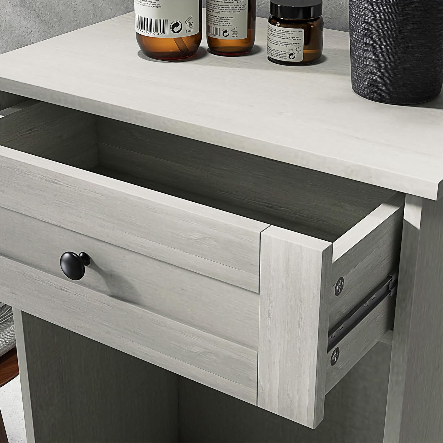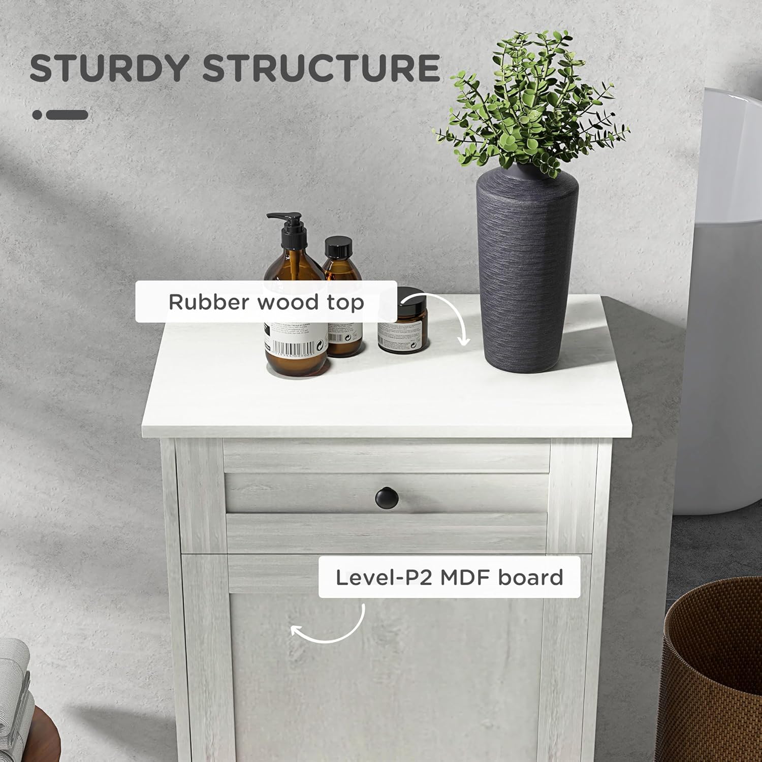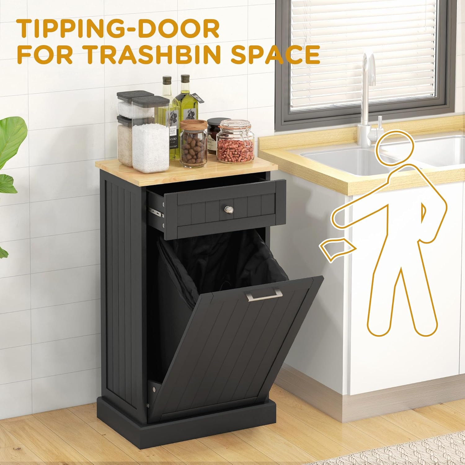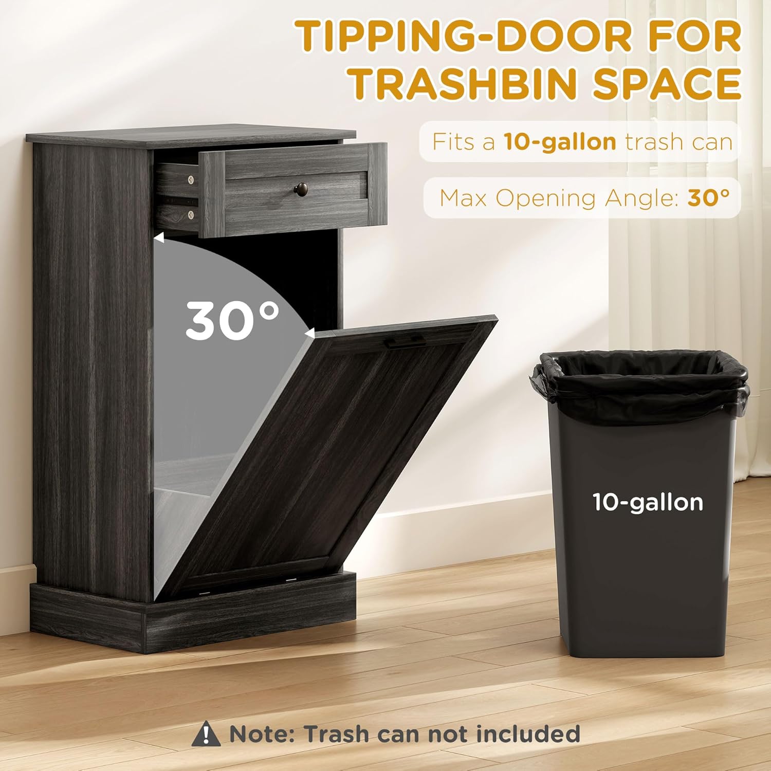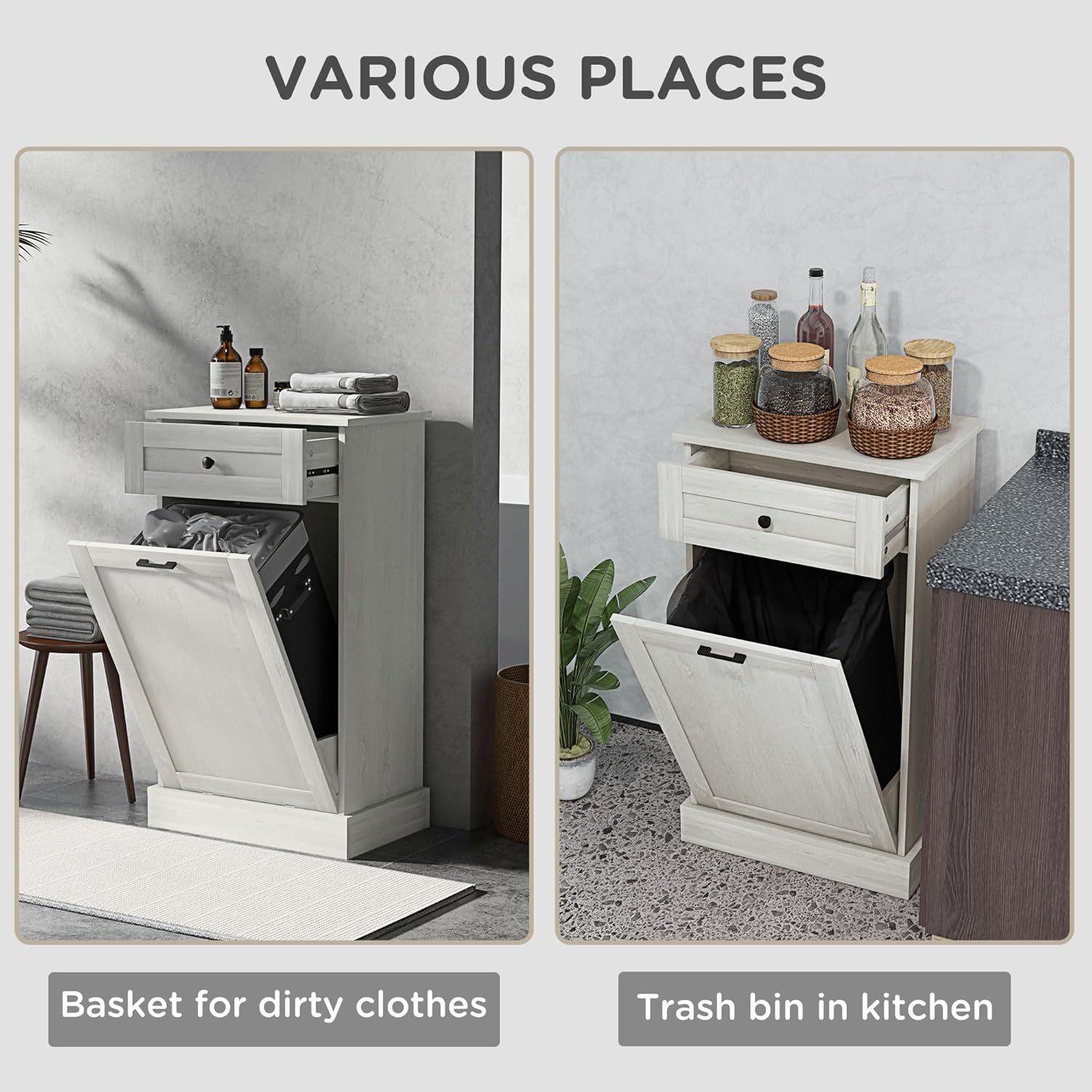 HOMCOM Kitchen Tilt Out Trash Bin Cabinet Free Standing Recycling Cabinet Trash Can Holder with Drawer, Light Gray