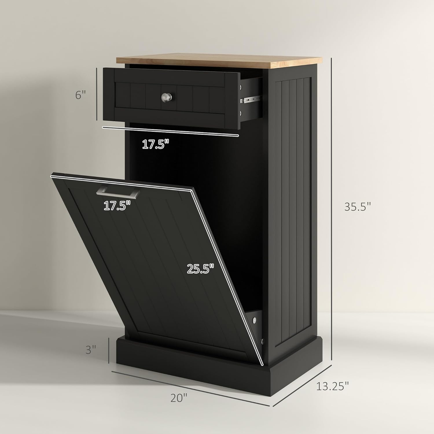HOMCOM Kitchen Tilt Out Trash Bin Cabinet Free Standing Recycling Cabinet Trash Can Holder with Drawer, White