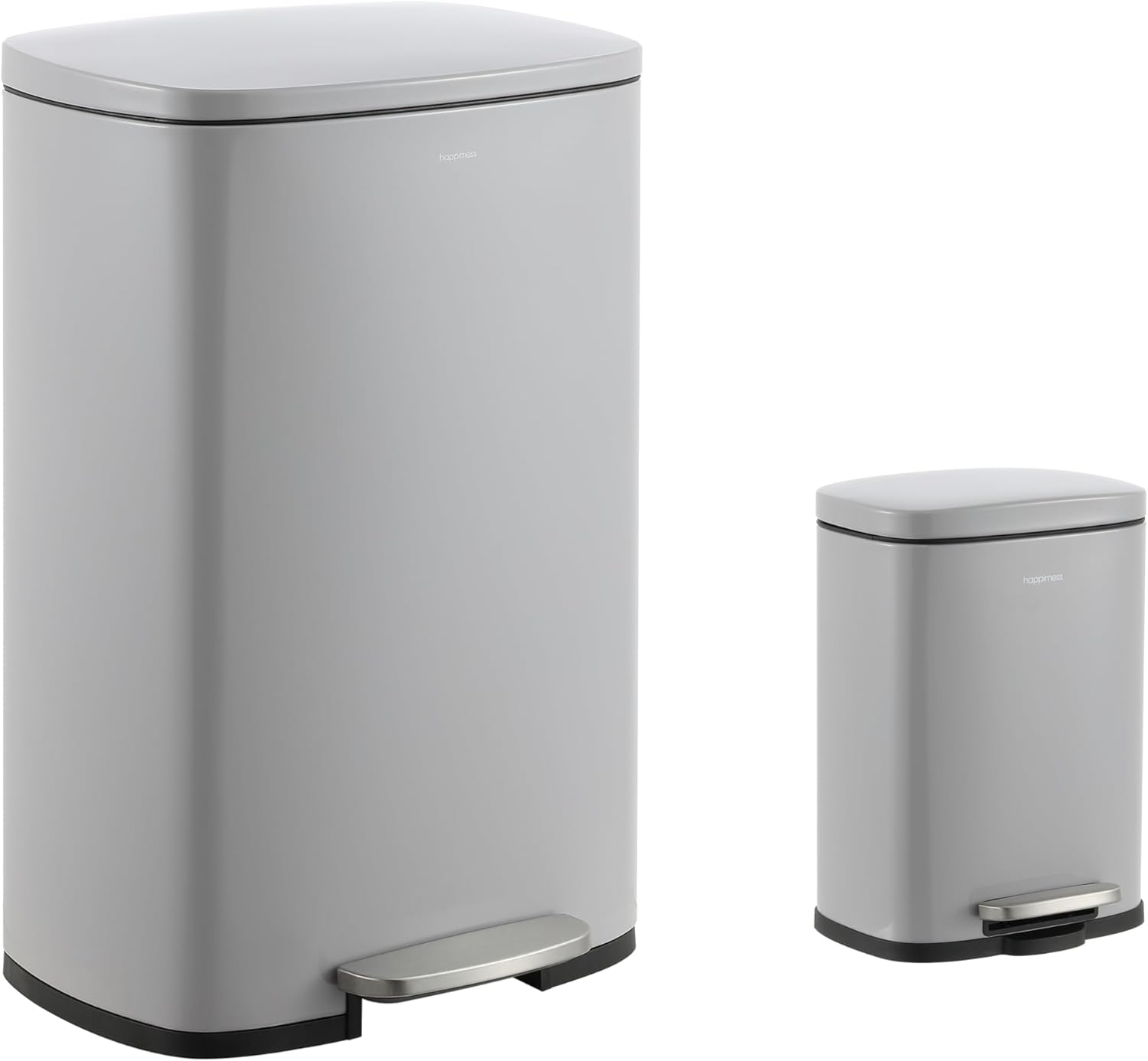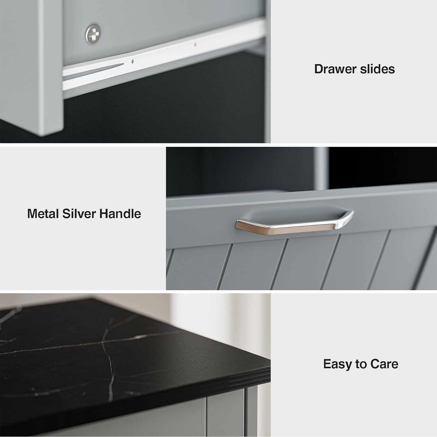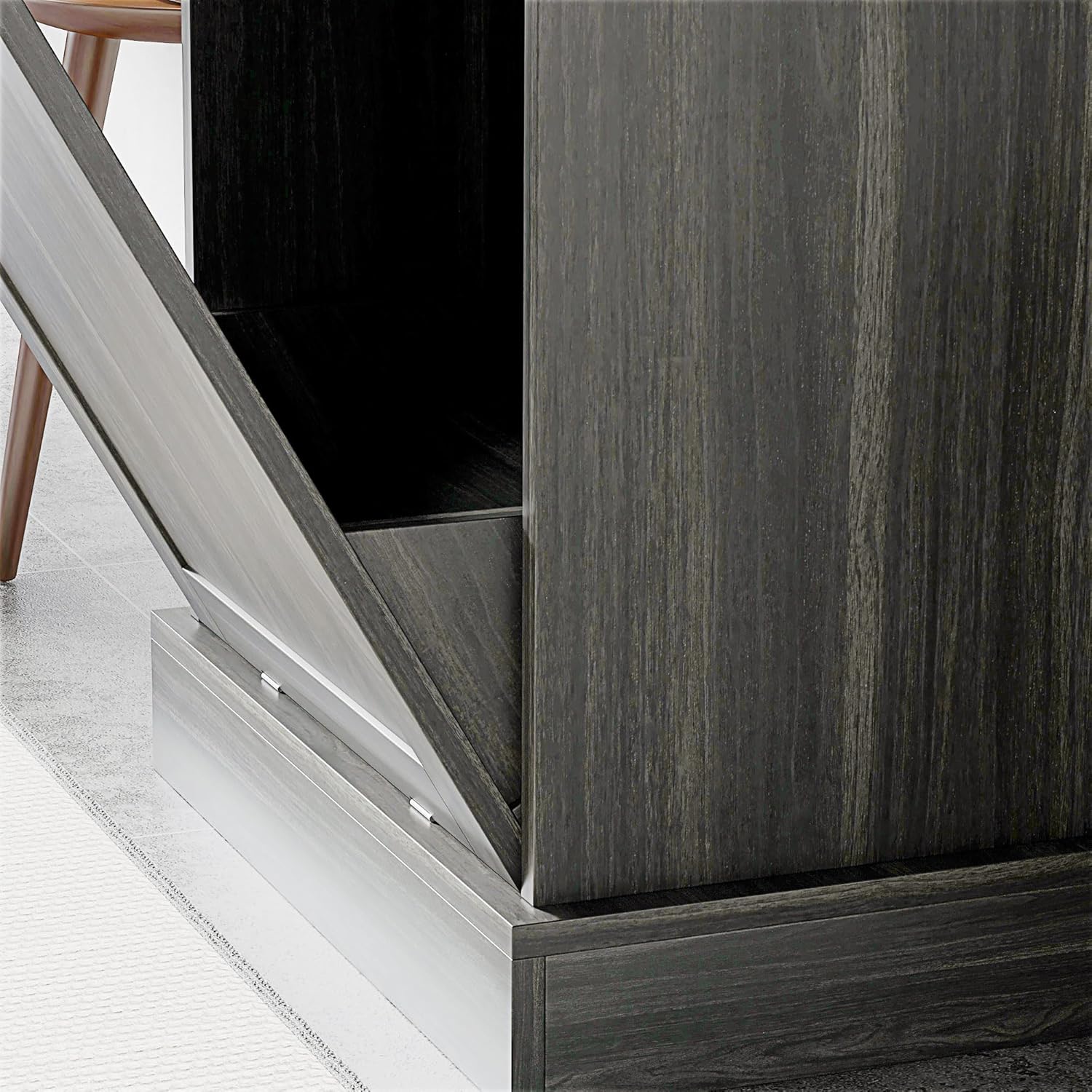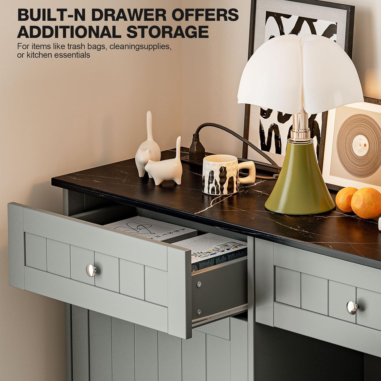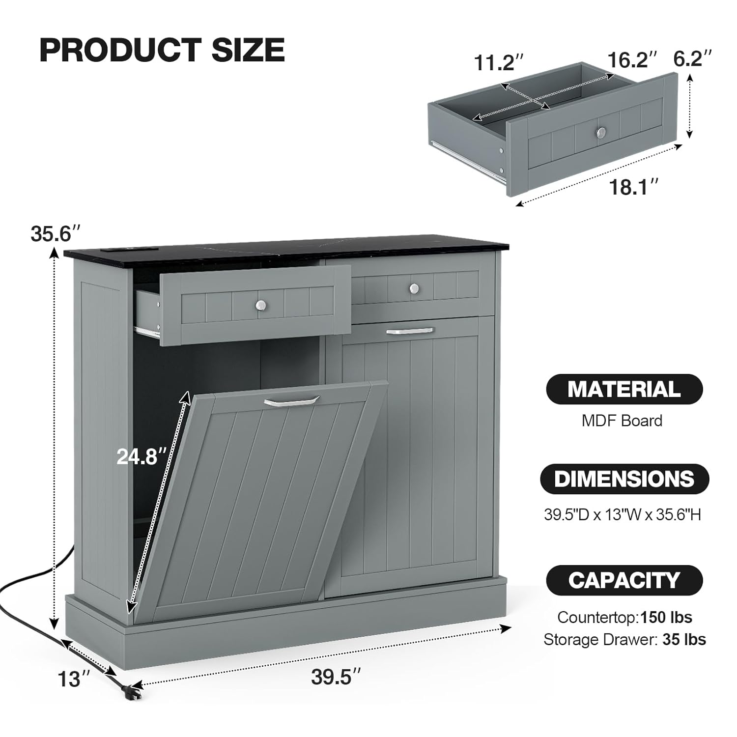 GAZHOME 20 Gallon Double Tilt Out Wooden Trash Cabinet with Charging Station, Upgrade Free Standing Recycling Cabinet with Outlet,Gray