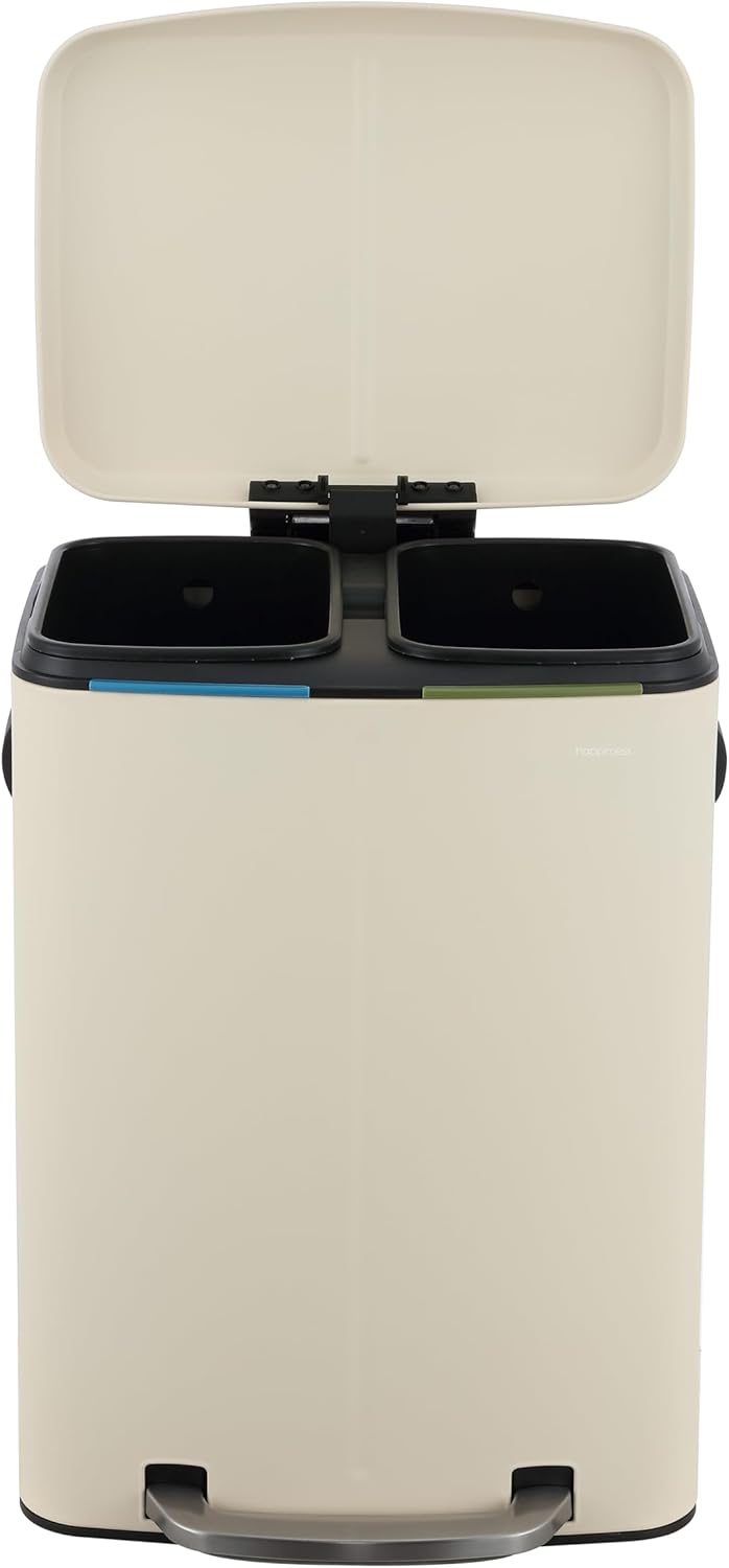 HOOBRO Double Tilt Out Trash Can Cabinet, 20 Gallon Kitchen Trash Bin Cabinet, Hidden Trash Storage with Open Compartments, Hidden Laundry Hamper, for Kitchen, Laundry, White and Natural WN04LJ01