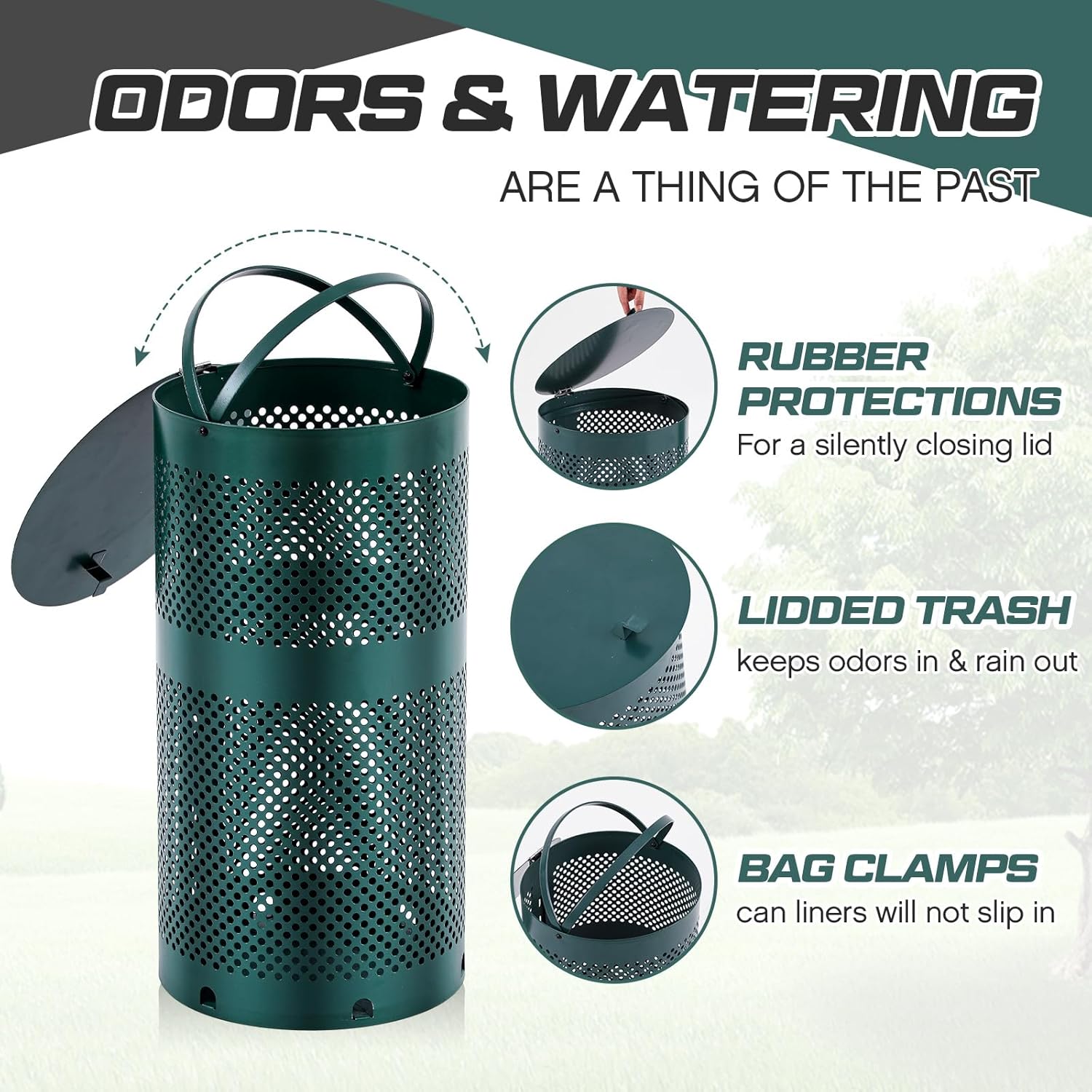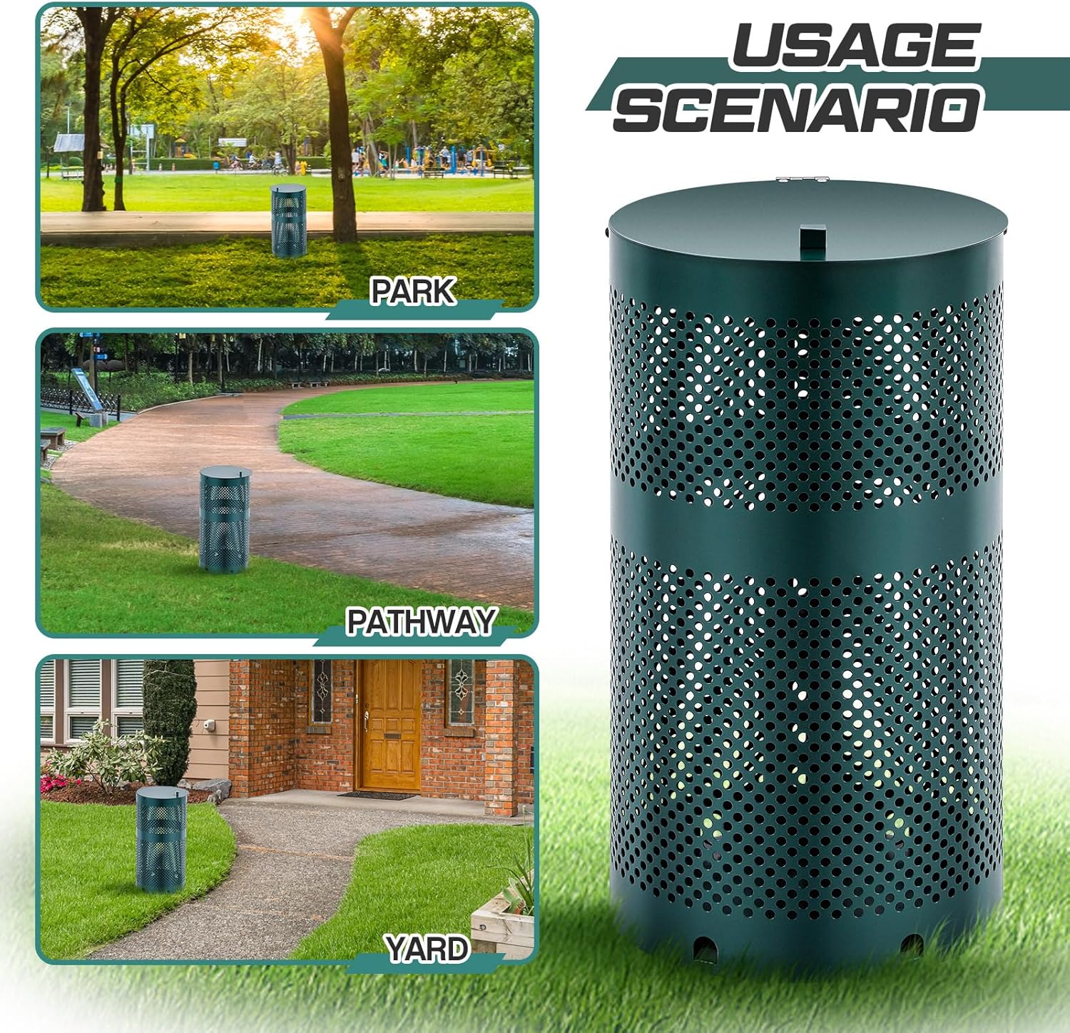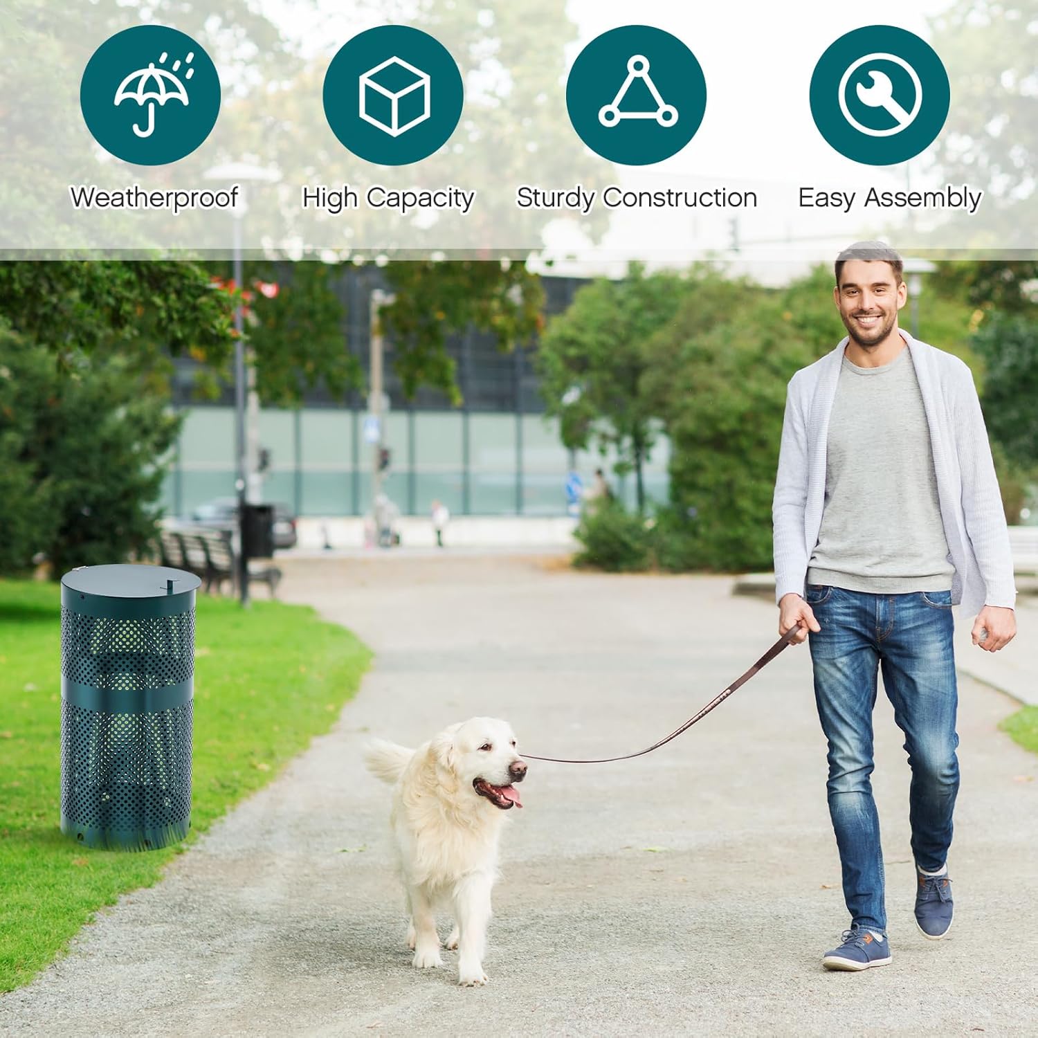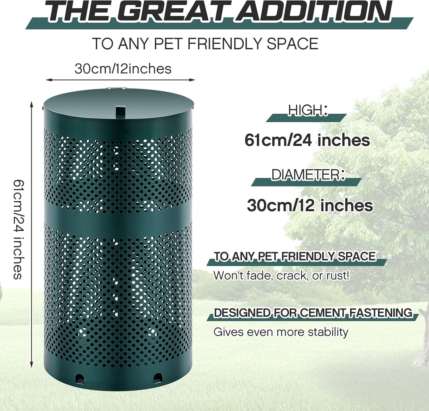 Round Outdoor 10 Gallon Capacity Trash Can with Lid for Dog Waste Station - Rust Free UV Powder Coated - Designed to Mount on Any Post or Wall(Green)