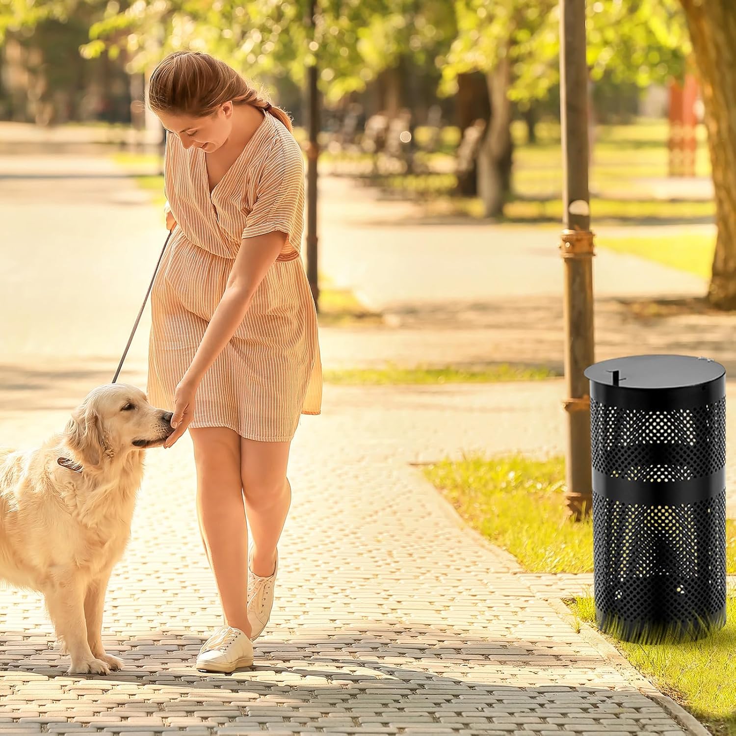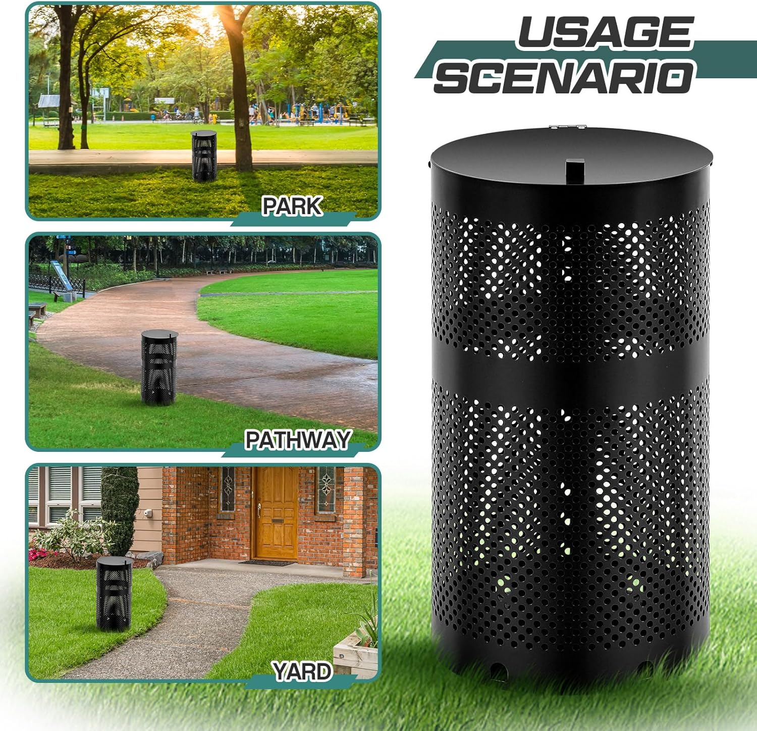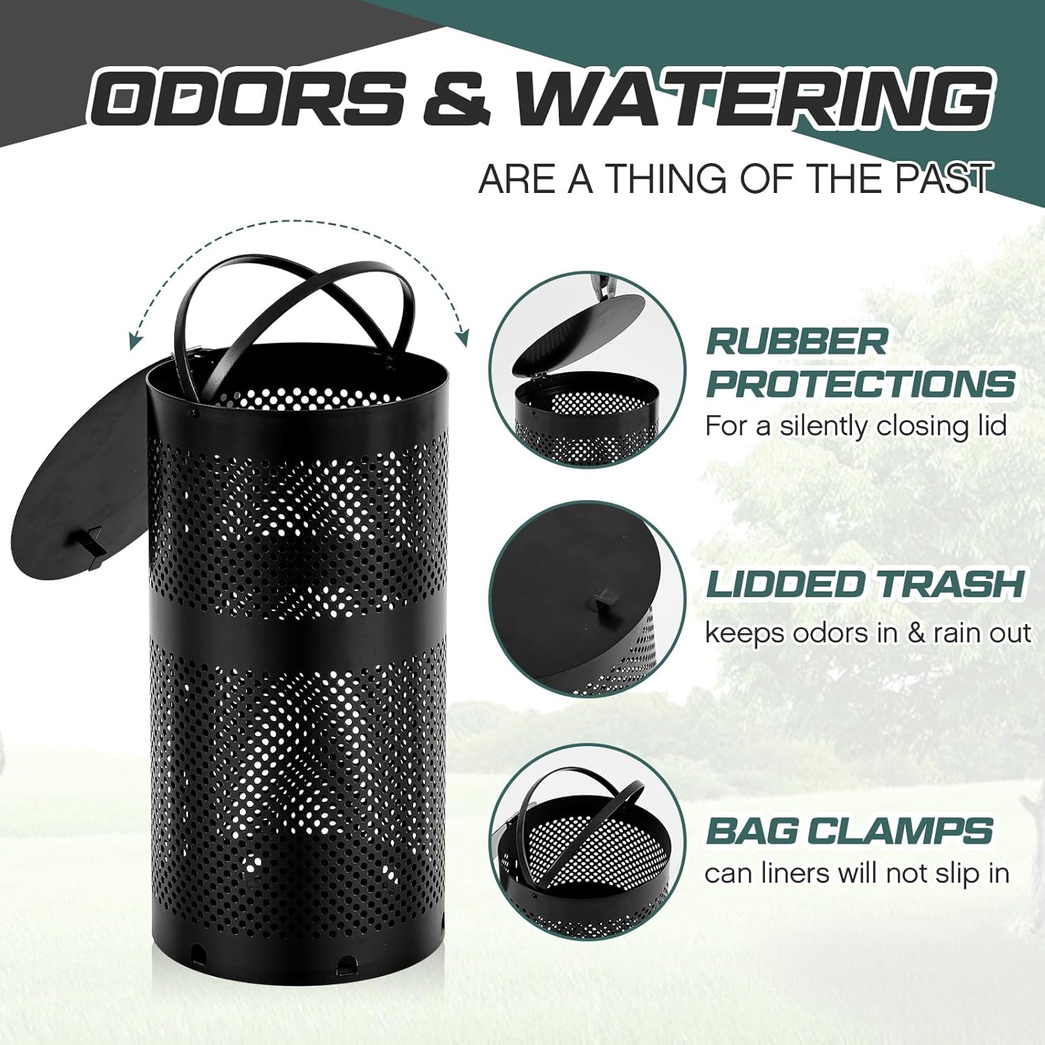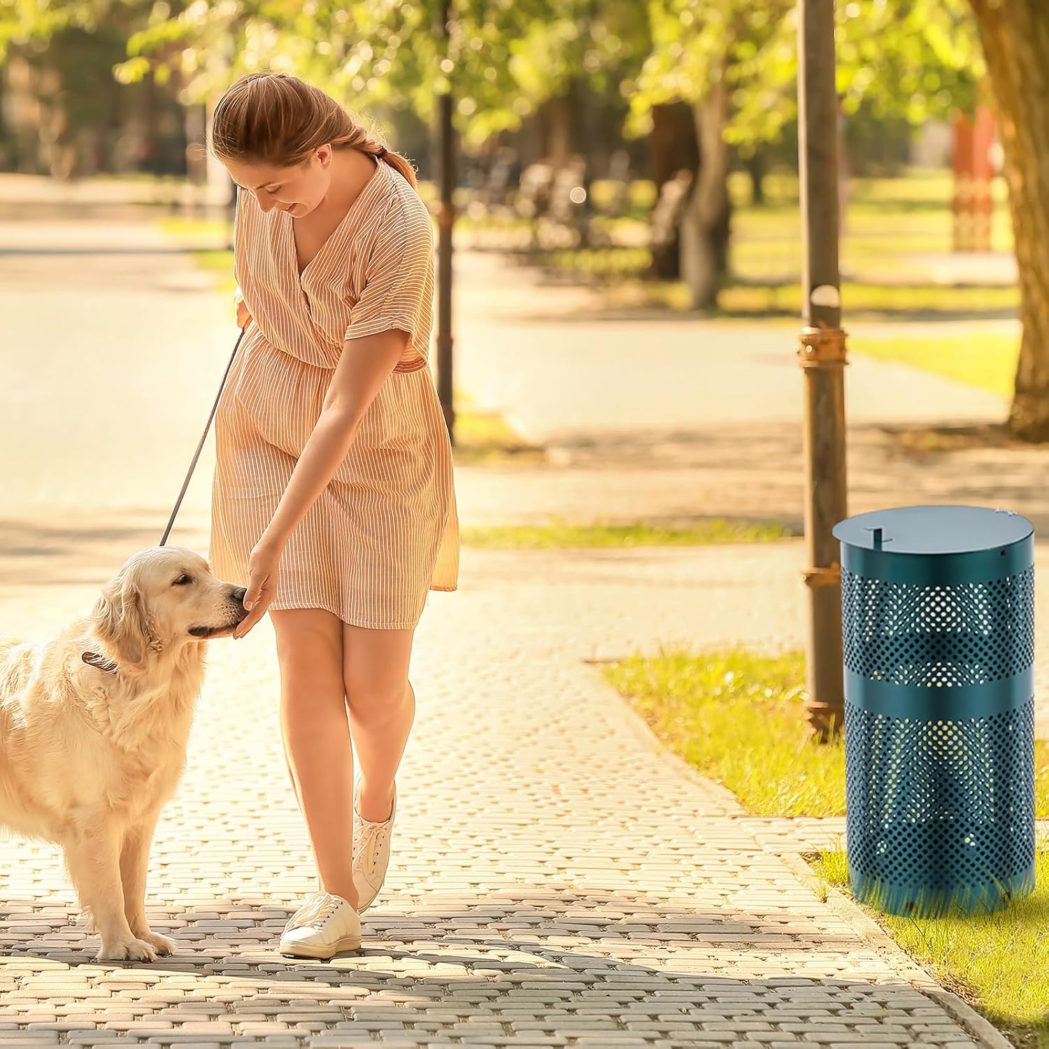 Round Outdoor 10 Gallon Capacity Trash Can with Lid for Dog Waste Station - Rust Free UV Powder Coated - Designed to Mount on Any Post or Wall(Green)
