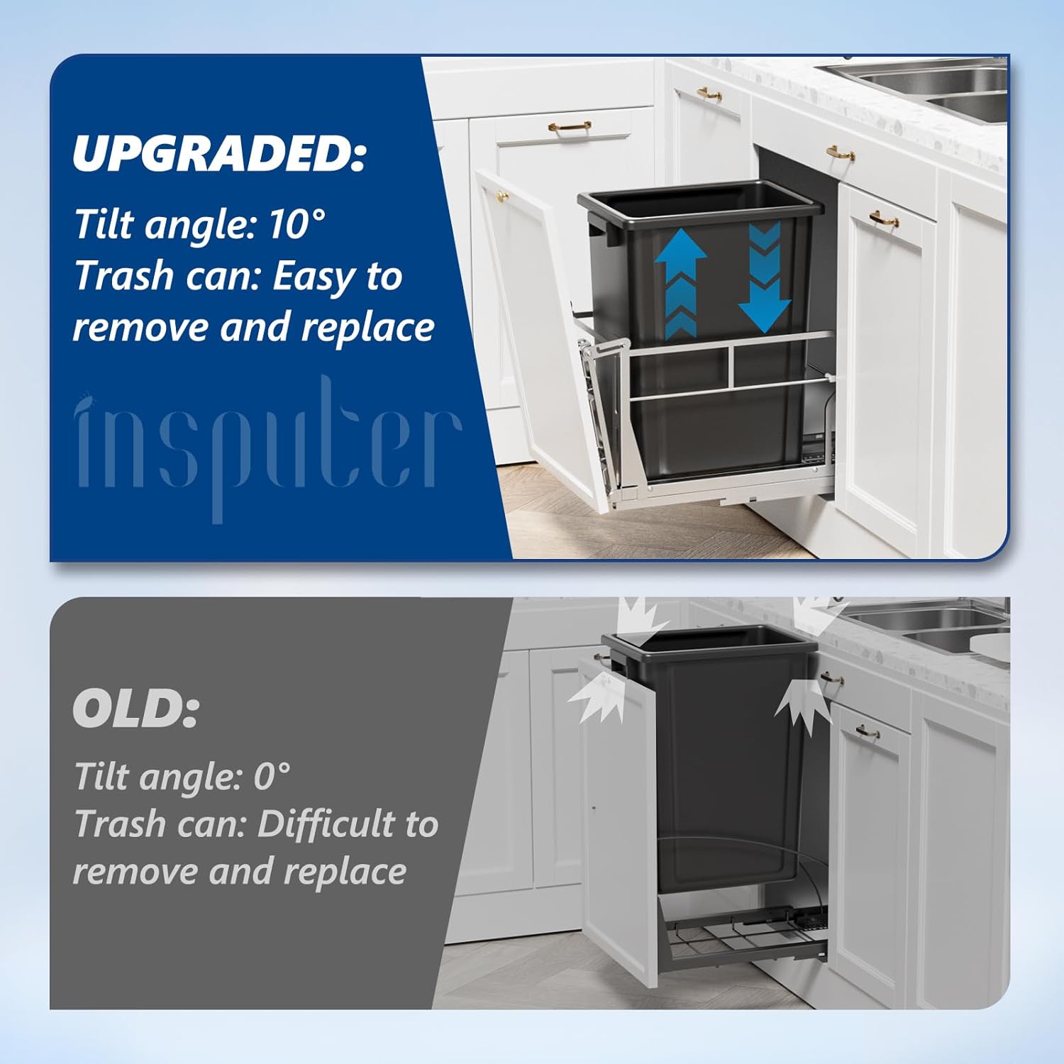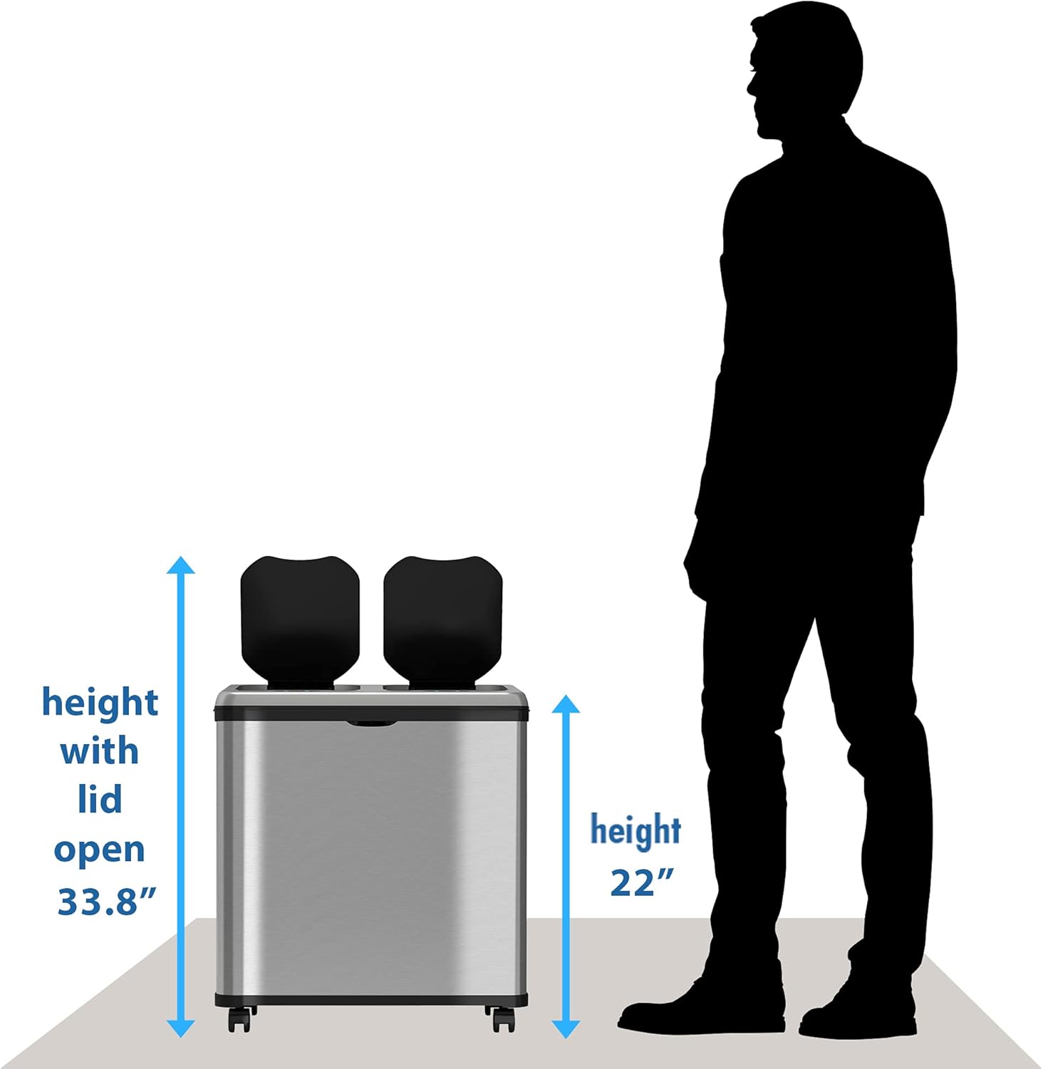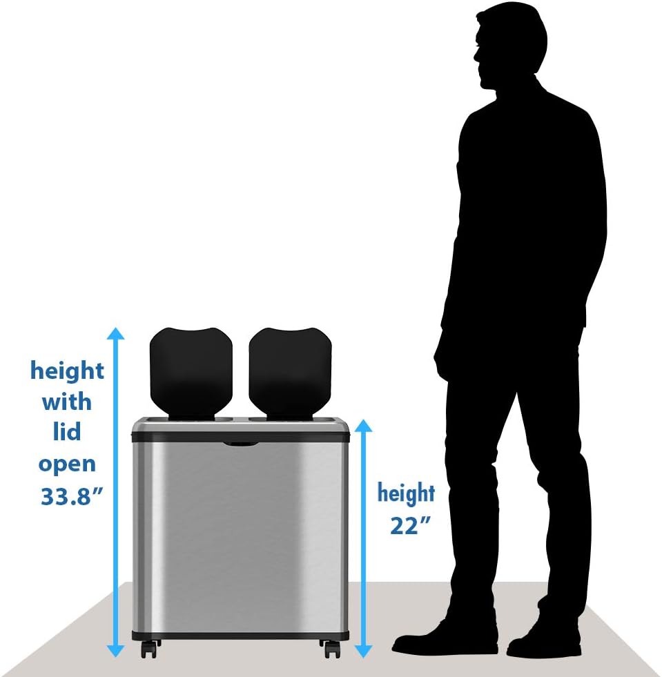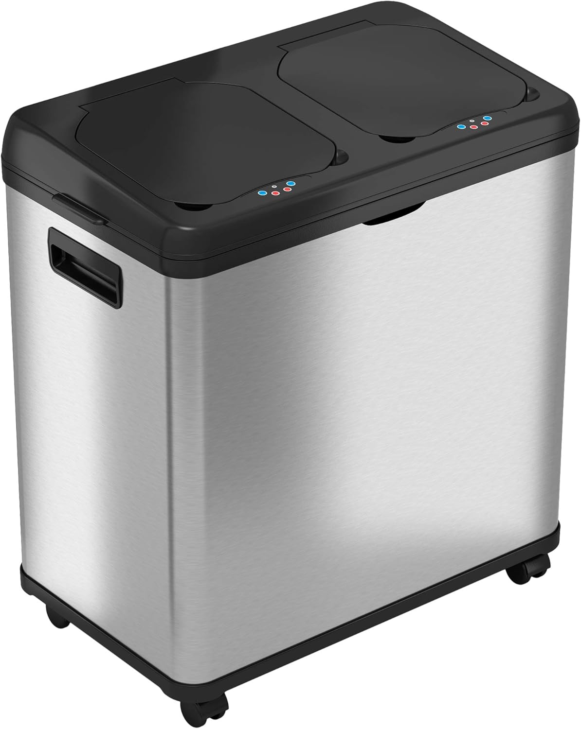 iTouchless 60 Liter / 16 Gallon Dual Compartment Kitchen Trash Can & Recycling Bin, Odor Filter, Soft-Close, Hands-Free Step Pedals, 2x 8-Gal Color-Coded Buckets, Smudge-Resistant Stainless Steel
