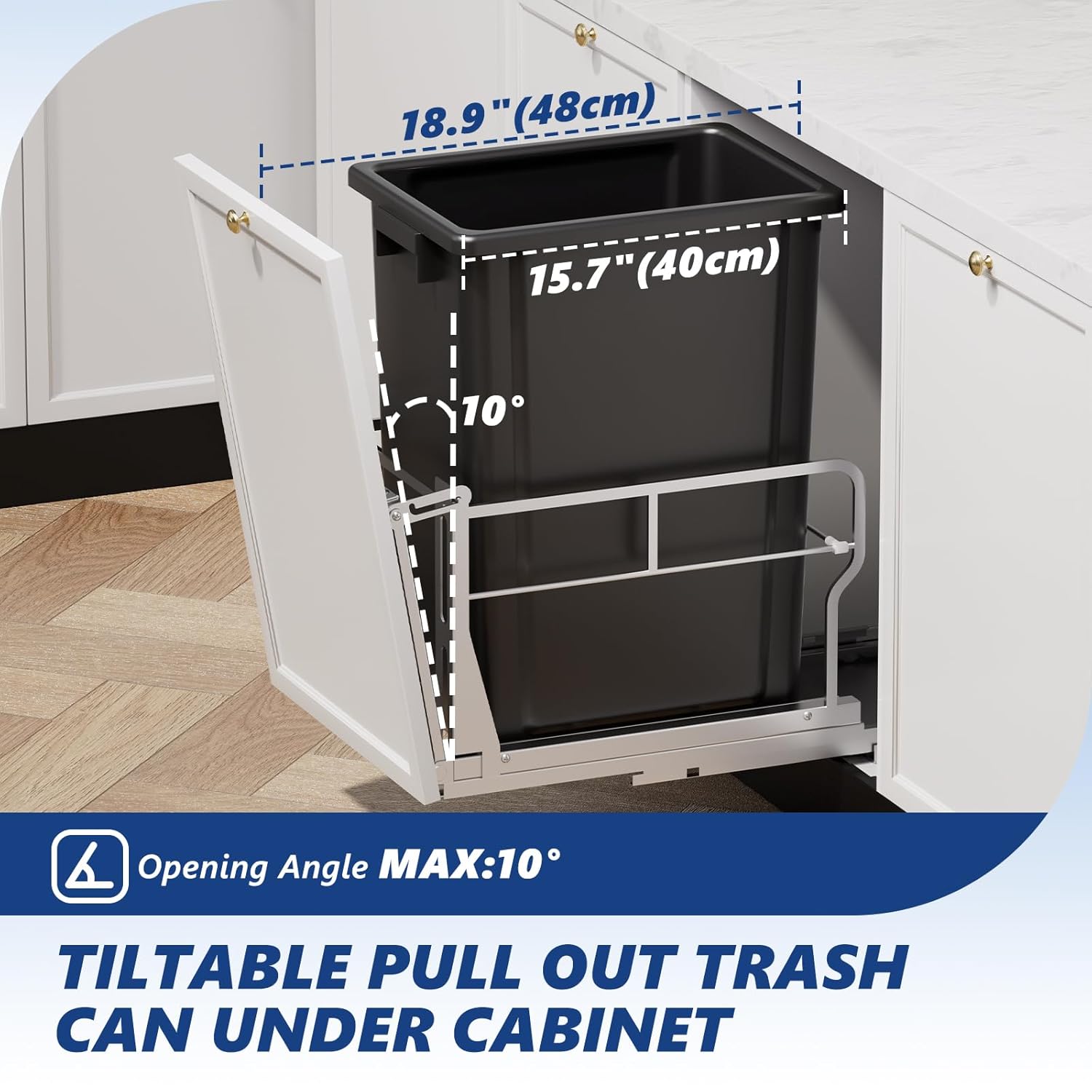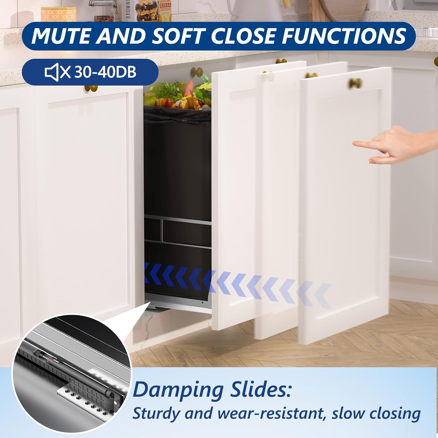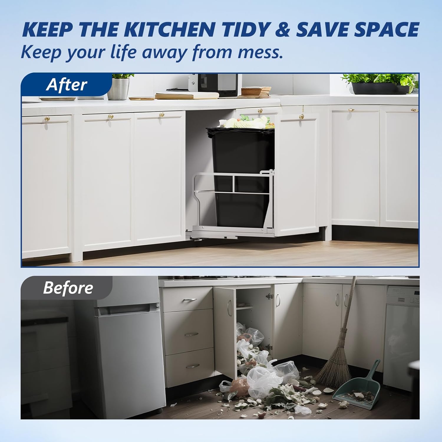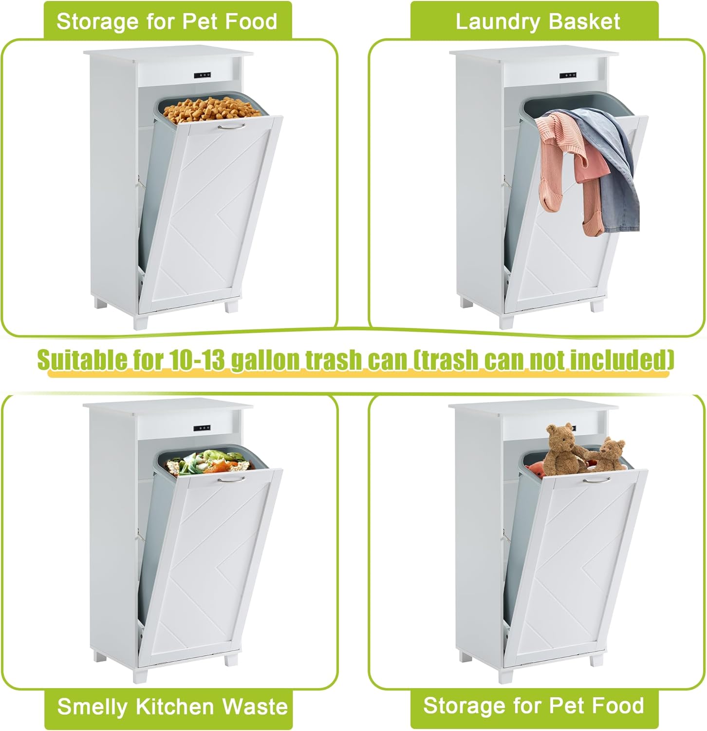VECELO Double Tilt Out Kitchen Trash Bin Cabinet Dog Proof Garbage Can with Wood Holder Free Standing Recycling, White